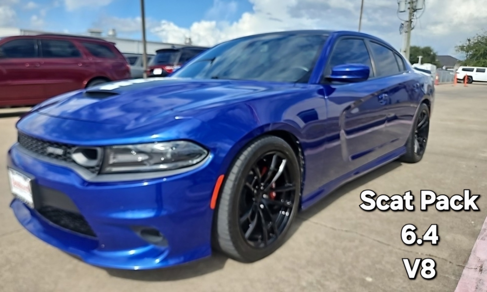 Indigo Blue 2019 Dodge Charger R/T Scat Pack RWD 8-Speed Automatic SRT HEMI 6.4L V8 MDS Black Artificial Leather.