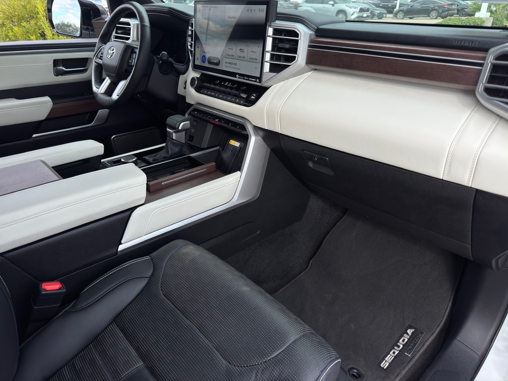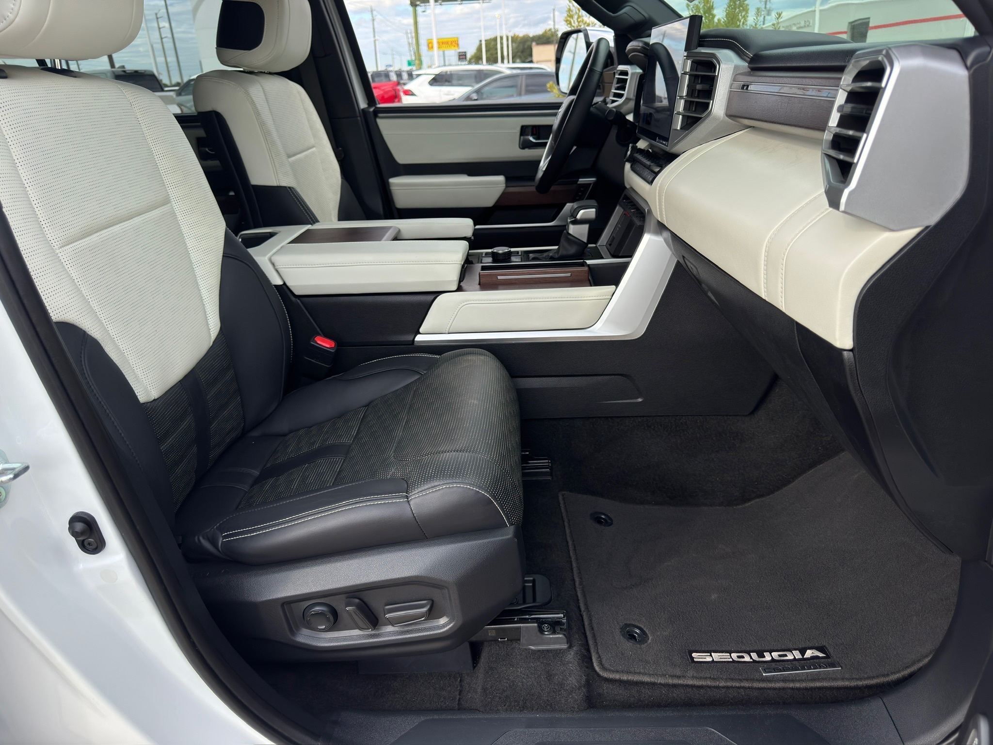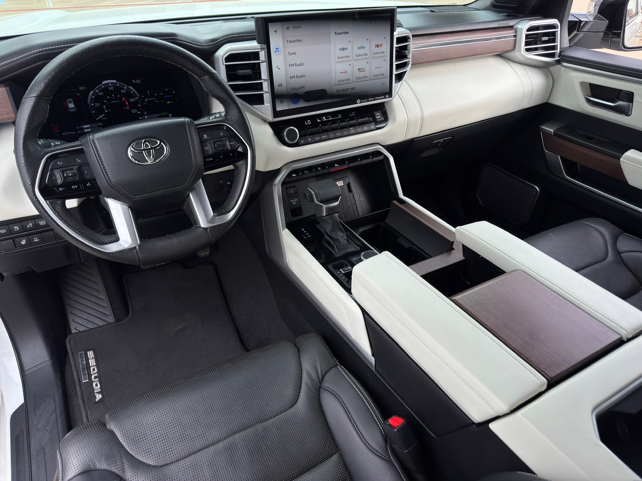 White 2023 Toyota Sequoia Capstone 4WD 10-Speed Automatic V6 Hybrid ***CLEAN AUTOCHECK***, **LEATHER**, **KEYLESS ENTRY**, **LOCAL TRADE**, **NON SMOKER**, **SUNROOF/MOONROOF**, **MP3 / IPOD COMPATIBILE**, **BACKUP CAMERA**, **TOW PACKAGE**, **NAVIGATION SYSTEM**, **Bluetooth**, **CLIMATE PACKAGE**, **SAFETY PACKAGE**, **SECURITY PACKAGE**, V6 Hybrid, 10-Speed Automatic, 4WD, ABS brakes, Active Cruise Control, Alloy wheels, Compass, Electronic Stability Control, Front dual zone A/C, Heated & Ven