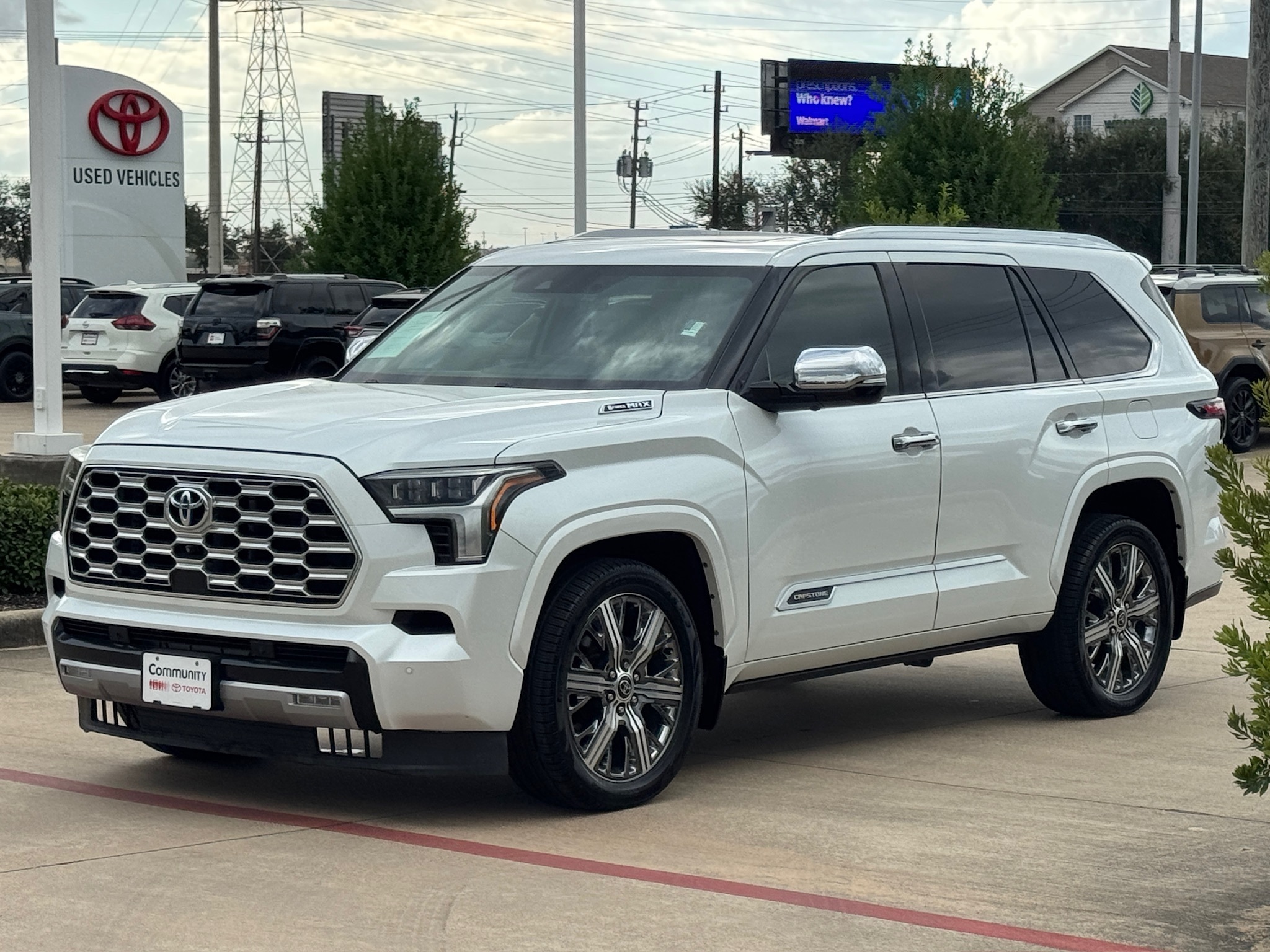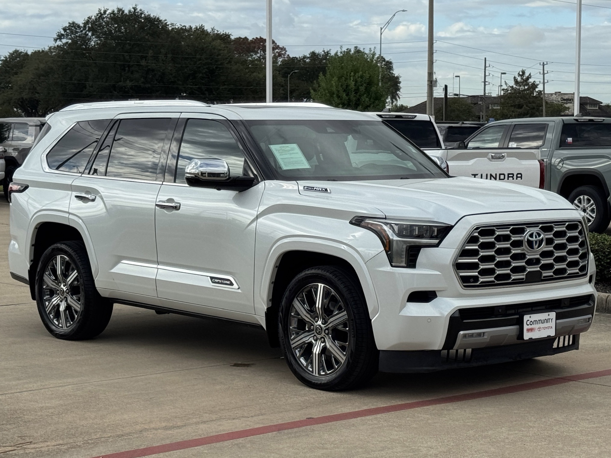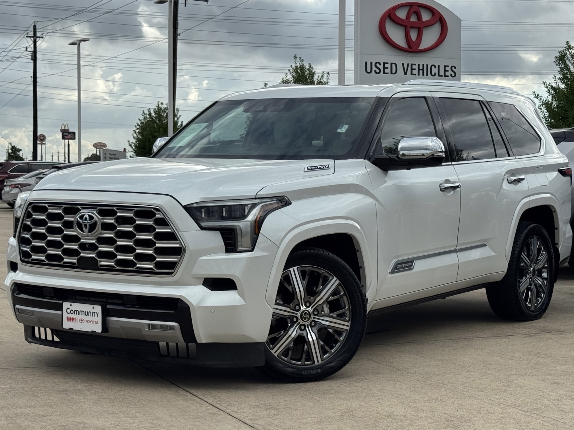 White 2023 Toyota Sequoia Capstone 4WD 10-Speed Automatic V6 Hybrid ***CLEAN AUTOCHECK***, **LEATHER**, **KEYLESS ENTRY**, **LOCAL TRADE**, **NON SMOKER**, **SUNROOF/MOONROOF**, **MP3 / IPOD COMPATIBILE**, **BACKUP CAMERA**, **TOW PACKAGE**, **NAVIGATION SYSTEM**, **Bluetooth**, **CLIMATE PACKAGE**, **SAFETY PACKAGE**, **SECURITY PACKAGE**, V6 Hybrid, 10-Speed Automatic, 4WD, ABS brakes, Active Cruise Control, Alloy wheels, Compass, Electronic Stability Control, Front dual zone A/C, Heated & Ven