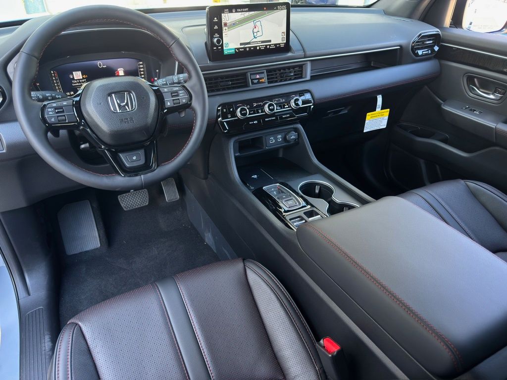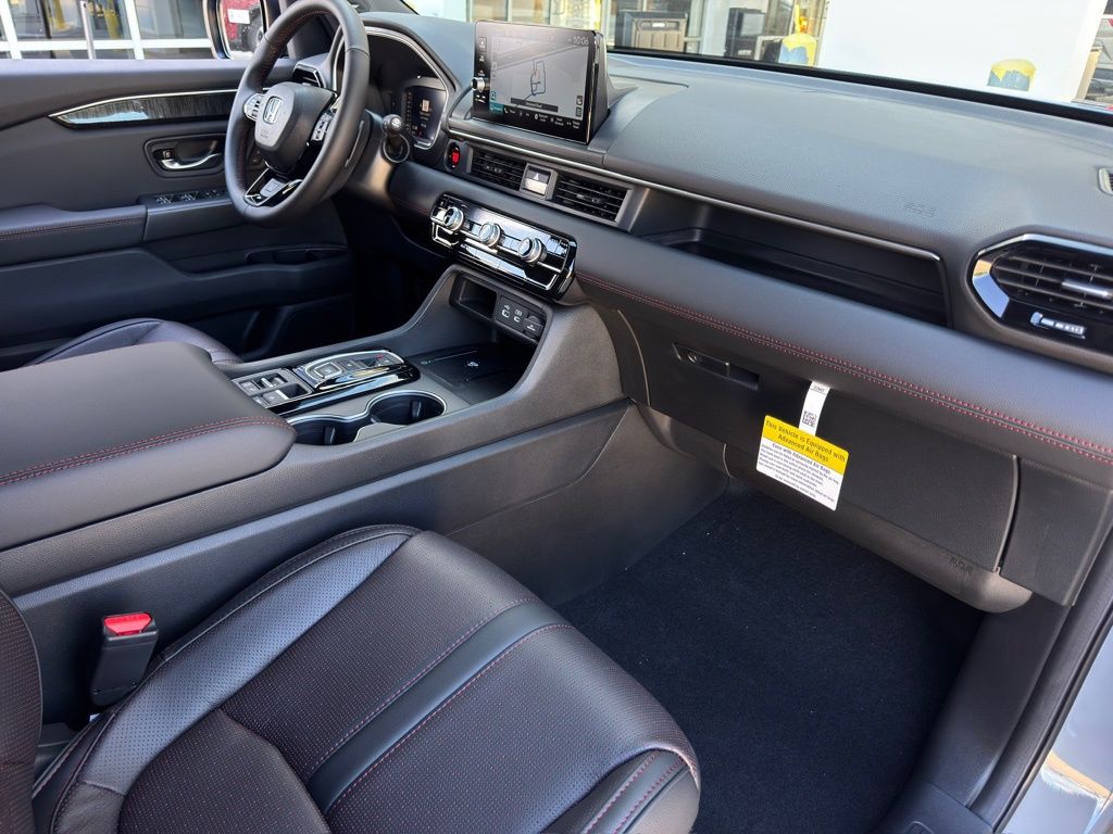iusXM, Apple CarPlay/Android Auto, Auto High-beam Headlights, Auto-dimming door mirrors, Auto-dimming Rear-View mirror, Automatic temperature control, Blind Spot Information (BSI) System warning, Bose Premium Sound System, Brake assist, Bumpers: body-color, Compass, Delay-off headlights, Driver door bin, Driver vanity mirror, Dual front impact airbags, Dual front side impact airbags, Electronic Stability Control, Emergency communication system: HondaLink, Exterior Parking Camera Rear, Four wheel independent suspension, Front anti-roll bar, Front Bucket Seats, Front Center Armrest, Front dual zone A/C, Front fog lights, Front reading lights, Fully automatic headlights, Garage door transmitter: HomeLink, Heads-Up Display, Heated & Ventilated Front Bucket Seats, Heated door mirrors, Heated front seats, Heated rear seats, Heated steering wheel, Honda Satellite-Linked Navigation System, HondaLink Subscription Services, Illuminated entry, Knee airbag, Lane departure: Lane Keeping Assist System (LKAS) active, Low tire pressure warning, Memory seat, Navigation system: Honda Satellite-Linked Navigation System, Occupant sensing airbag, Outside temperature display, Overhead airbag, Overhead console, Panic alarm, Passenger door bin, Passenger vanity mirror, Perforated Leather Seat Trim, Power door mirrors, Power driver seat, Power Liftgate, Power moonroof, Power passenger seat, Power steering, Power windows, Radio data system, Rain sensing wipers, Rear air conditioning, Rear anti-roll bar, Rear reading lights, Rear seat center armrest, Rear window defroster, Rear window wiper, Reclining 3rd row seat, Remote keyless entry, Security system, SiriusXM, Speed control, Speed-sensing steering, Speed-Sensitive Wipers, Split folding rear seat, Spoiler, Steering wheel mounted audio controls, Tachometer, Telescoping steering wheel, Tilt steering wheel, Traction control, Trip computer, Turn signal indicator mirrors, Variably intermittent wipers, Ventilated front seats, Wheels: 20" Gloss Black w/Black Lug Nuts, AWD.
