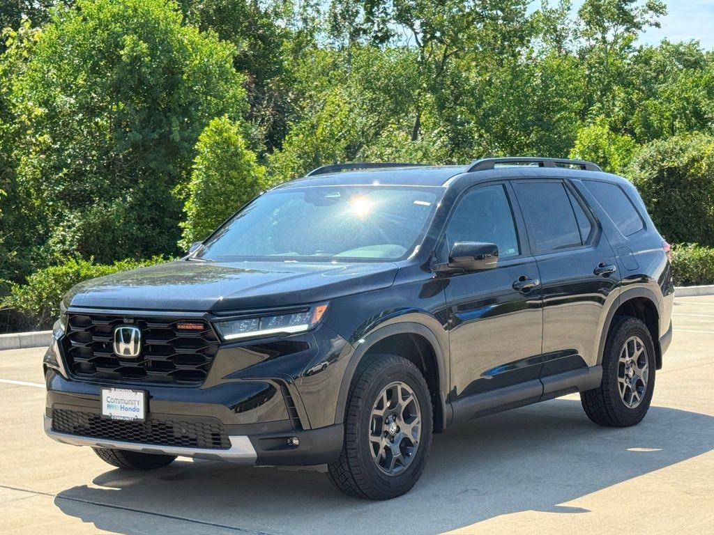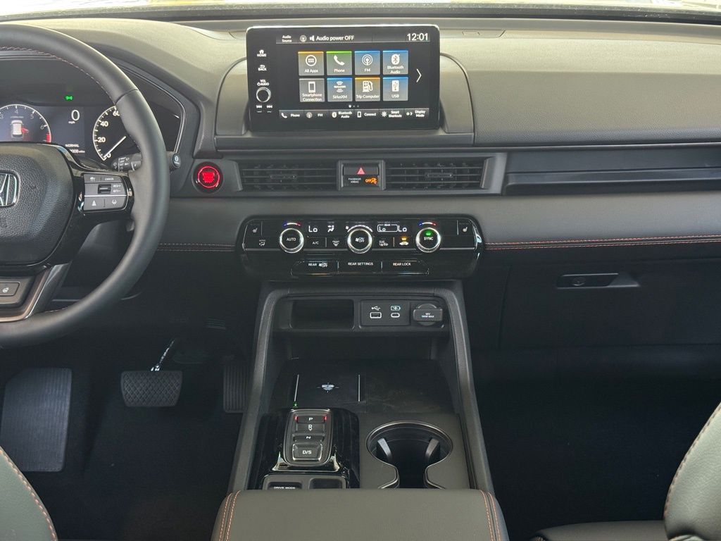 usXM, Apple CarPlay/Android Auto, Auto High-beam Headlights, Auto-dimming Rear-View mirror, Automatic temperature control, Blind Spot Information (BSI) System warning, Brake assist, Bumpers: body-color, Delay-off headlights, Driver door bin, Driver vanity mirror, Dual front impact airbags, Dual front side impact airbags, Durable Synthetic Leather Seat Trim, Electronic Stability Control, Emergency communication system: HondaLink Assist, Exterior Parking Camera Rear, Four wheel independent suspension, Front anti-roll bar, Front Bucket Seats, Front Center Armrest, Front dual zone A/C, Front fog lights, Front reading lights, Fully automatic headlights, Garage door transmitter: HomeLink, Heated door mirrors, Heated Front Bucket Seats, Heated front seats, Illuminated entry, Knee airbag, Lane departure: Lane Keeping Assist System (LKAS) active, Low tire pressure warning, Memory seat, Occupant sensing airbag, Outside temperature display, Overhead airbag, Overhead console, Panic alarm, Passenger door bin, Passenger vanity mirror, Power door mirrors, Power driver seat, Power Liftgate, Power moonroof, Power passenger seat, Power steering, Power windows, Radio data system, Radio: 245-Watt Audio System, Rear air conditioning, Rear anti-roll bar, Rear reading lights, Rear window defroster, Rear window wiper, Reclining 3rd row seat, Remote keyless entry, Security system, SiriusXM, Speed control, Speed-sensing steering, Speed-Sensitive Wipers, Split folding rear seat, Spoiler, Steering wheel mounted audio controls, Tachometer, Telescoping steering wheel, Tilt steering wheel, Traction control, Trip computer, Turn signal indicator mirrors, Variably intermittent wipers, Wheels: 18" Shark Gray w/Black Lug Nuts, AWD.