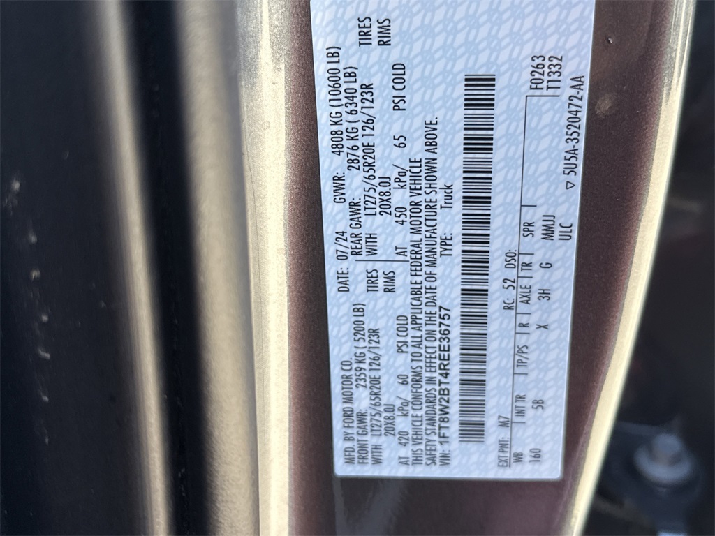 (SiriusXM Radio w/360L and SYNC 4 w/Enhanced Voice Recognition), Order Code 608A, Sport Appearance Package (Black Tow Hooks, Body-Color Front & Rear Bumpers, Chrome Exhaust Tip, Dark Painted Grille, Platform Running Boards, Sport 4x4 Box Side Decal, and Wheels: 20" Dark Carbonized Gray Painted Aluminum), 4WD, 4-Wheel Disc Brakes, 8 Speakers, ABS brakes, Adjustable pedals, Air Conditioning, Alloy wheels, AM/FM radio: SiriusXM with 360L, Auto High-beam Headlights, Auto tilt-away steering wheel, Auto-dimming Rear-View mirror, Automatic temperature control, Brake assist, Bumpers: chrome, Compass, Delay-off headlights, Driver door bin, Driver vanity mirror, Dual 68 AH/65 AGM Batteries, Dual front impact airbags, Dual front side impact airbags, Electronic Stability Control, Emergency communication system: SYNC 4 911 Assist, Engine Block Heater, Exterior Parking Camera Rear, Flow-Through Console, Front anti-roll bar, Front Bucket Seats, Front Center Armrest, Front dual zone A/C, Front fog lights, Front Leather-Trimmed 40/Console/40 Seats, Front License Plate Bracket, Front reading lights, Fully automatic headlights, Garage door transmitter, Heated door mirrors, Heated front seats, Heated rear seats, Heated steering wheel, Illuminated entry, Leather steering wheel, Low tire pressure warning, Memory seat, Navigation system: Connected Navigation (includes complimentary 1-year trial), Outside temperature display, Overhead airbag, Overhead console, Panic alarm, Passenger door bin, Passenger vanity mirror, Pedal memory, Power door mirrors, Power driver seat, Power passenger seat, Power steering, Power windows, Radio: B&O Sound System by Bang & Olufsen, Rain sensing wipers, Rear reading lights, Rear seat center armrest, Rear step bumper, Rear window defroster, Remote keyless entry, Security system, Speed control, Split folding rear seat, Steering wheel memory, Steering wheel mounted audio controls, Tachometer, Telescoping steering wheel, Tilt steering wheel, Traction control, Trip computer, Turn signal indicator mirrors, Variably intermittent wipers, Ventilated front seats, and Wheels: 18" Bright Machined & Carbonized Gray Alum.