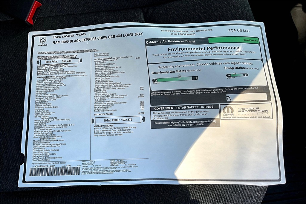 Bright White Clearcoat 2026 Ram 2500 Tradesman 4WD 8-Speed Automatic 6.7L I6