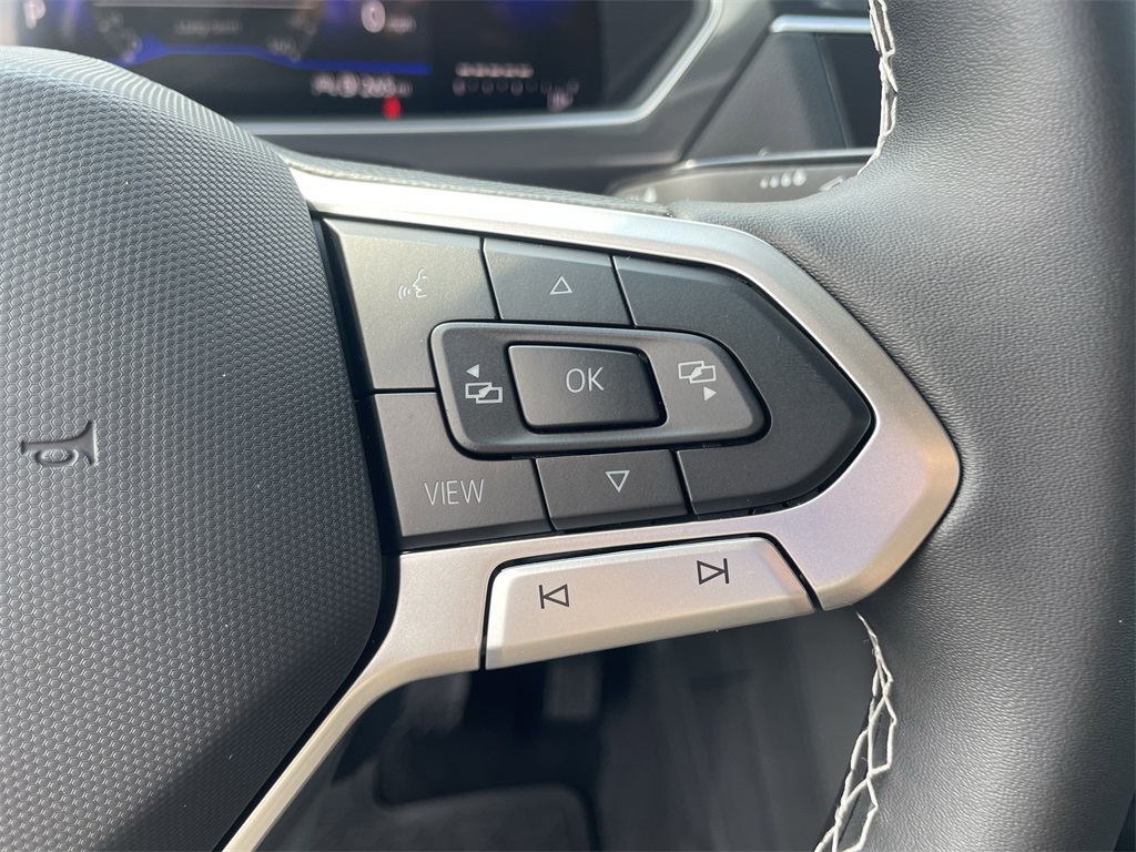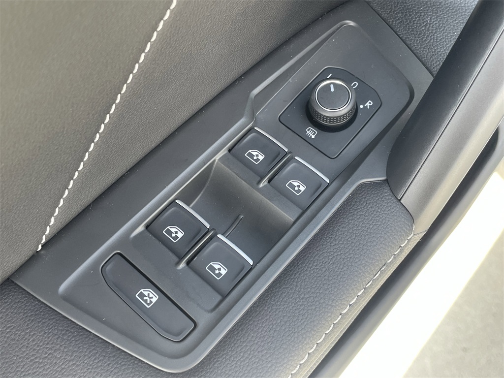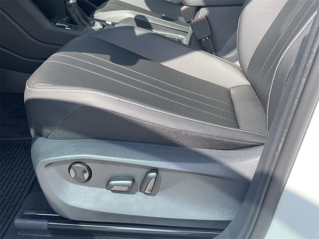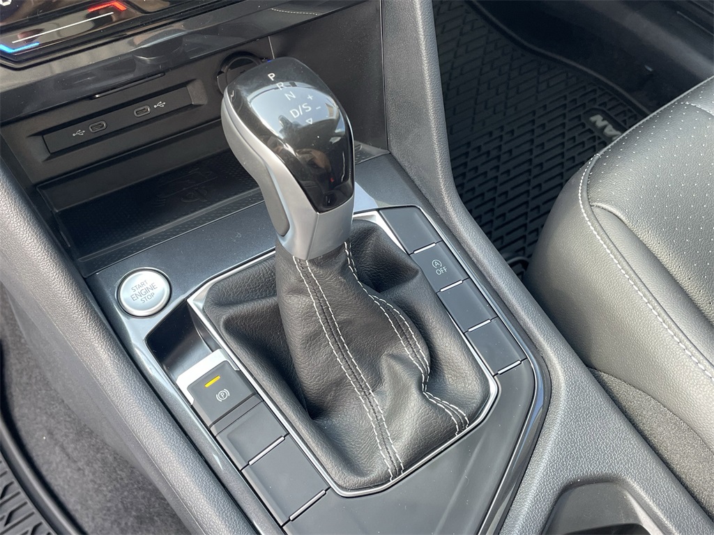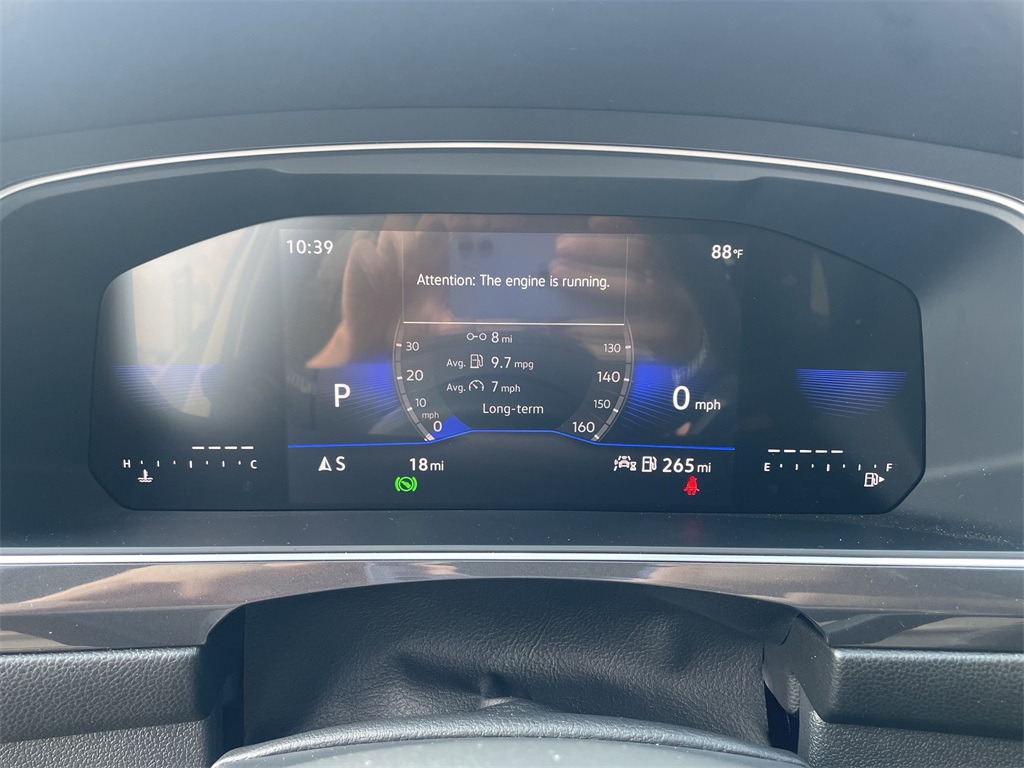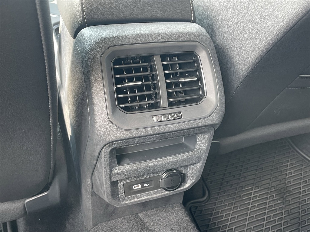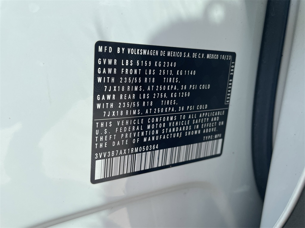 umpers: body-color, Compass, Delay-off headlights, Driver door bin, Driver vanity mirror, Dual front impact airbags, Dual front side impact airbags, Electronic Stability Control, Emergency communication system: VW Car-Net Safe & Secure 5-year, Exterior Parking Camera Rear, Four wheel independent suspension, Front anti-roll bar, Front Bucket Seats, Front Center Armrest, Front dual zone A/C, Front reading lights, Fully automatic headlights, Heated door mirrors, Heated Front Seats, Heated front seats, Illuminated entry, Leather Shift Knob, Low tire pressure warning, Occupant sensing airbag, Outside temperature display, Overhead airbag, Overhead console, Panic alarm, Passenger door bin, Passenger vanity mirror, Perforated V-Tex Leatherette Seating Surfaces, Power door mirrors, Power driver seat, Power Liftgate, Power steering, Power windows, Radio data system, Radio: MIB3 Composition Media AM/FM/HD, Rain sensing wipers, Rear anti-roll bar, Rear reading lights, Rear seat center armrest, Rear window defroster, Rear window wiper, Remote keyless entry, Security system, Speed control, Speed-sensing steering, Split folding rear seat, Spoiler, Steering wheel mounted audio controls, Tachometer, Telescoping steering wheel, Tilt steering wheel, Traction control, Trip computer, Turn signal indicator mirrors, Variably intermittent wipers, and Wheels: 18" Dark Graphite Painted 10-Spoke Alloy.