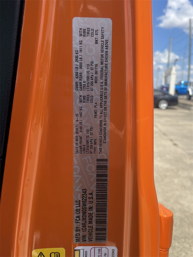 Front Axle, Corning Gorilla Glass, Dana M210 Wide HD Tube Front Axle, Dana M220 Wide Rear Axle, Daytime Running Lamps LED Accents, Deep Tint Sunscreen Windows, E-Locker Rear Axle, Enhanced Adaptive Cruise Control, Front LED Fog Lamps, Full Speed Forward Collision Warning Plus, Injection Molded Black Rear Bumper, LED Premium Reflector Headlamps, Mold In Color Bumper w/Gloss Black, Molded in Color Rubicon Highline Flare, MOPAR All-Weather Floor Mats, Off-Road Plus Mode, Power Heated Mirrors, Premium Wrapped Steering Wheel, Security Alarm, Sun Visors w/Illuminated Vanity Mirrors, Wheels: 17" x 7.5" Painted Black, Willy's Suspension, and Willys Hood Decal), Xtreme 35" Tire Package (35" Tire Suspension, Anti-Lock 4-Wheel Disc Perf Brakes, MOPAR Hinge-Gate Reinforcement, Wheel Flare Extensions, and Wheels: 17" x 8" Machined w/Black Pockets), 110 MPH Vehicle Max Speed Calibration, 4-Wheel Disc Brakes, 8 Speakers, ABS brakes, Air Conditioning, AM/FM radio: SiriusXM, Apple CarPlay/Android Auto, Aux Battery, Brake assist, Cloth Low-Back Bucket Seats, Compass, Delay-off headlights, Driver door bin, Driver vanity mirror, Dual front impact airbags, Dual front side impact airbags, Electronic Stability Control, Front anti-roll bar, Front Bucket Seats, Front Center Armrest w/Storage, Front fog lights, Front reading lights, Illuminated entry, Integrated roll-over protection, Low tire pressure warning, Non-Lock Fuel Cap w/o Discriminator, Normal Duty Suspension, Occupant sensing airbag, Outside temperature display, Overhead airbag, Panic alarm, ParkView Rear Back-Up Camera, Passenger door bin, Passenger vanity mirror, Power steering, Power Top Quarter Window Storage Bag, Power windows, Radio data system, Radio: Uconnect 5 w/12.3" Display, Rear anti-roll bar, Rear reading lights, Rear Window Defroster, Rear Window Wiper/Washer, Remote keyless entry, Removable Rear Quarter Windows, Sky 1-Touch Power Top, Speed control, Split folding rear seat, Steering wheel mounted audio controls, Stop-Start Dual Battery System, Tachometer, Telescoping steering wheel, Tilt steering wheel, Traction control, Trip computer, Variably intermittent wipers, and Wheels: 17" x 7.5" Black Steel Styled. 2025 Jeep Wrangler Willys 4D Sport Utility Joose 20/22 City/Highway MPG Price includes: $1000 - 2025 Central BC Retail Bonus Cash . Exp. 01/20/2026 $1500 - 2025 National Bonus Cash . Exp. 02/02/2026 $2500 - 2025 National Retail Bonus Cash . Exp. 02/02/2026 $500 - 2025 National 2025 Military Bonus Cash. Exp. 01/04/2027
