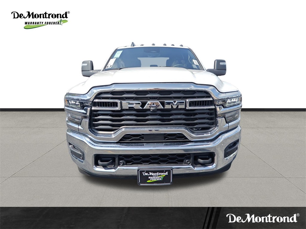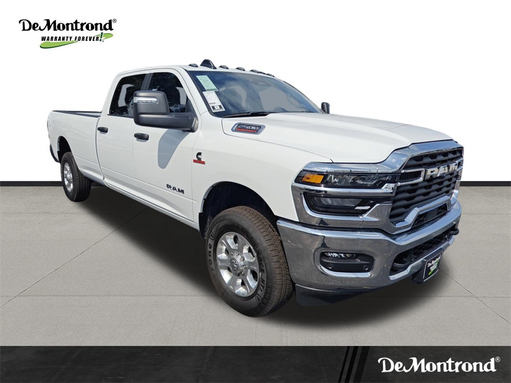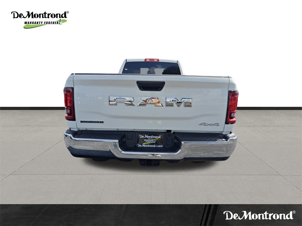 ual Glove Boxes, Exterior Mirrors Courtesy Lamps, Exterior Mirrors w/Heating Element, Exterior Mirrors w/Supplemental Signals, Foam Bottle Insert (Door Trim Panel), Folding Flat Load Floor Storage, Footwell Courtesy Lamp, Forward & Reverse Utility Lights, Front Armrest w/Cupholders, Front Center Seat Cushion Storage, Front Seat Back Map Pockets, Glove Box Lamp, Locking Lower Glove Box, Luxury Steering Wheel, Manual Adjust 4-Way Front Passenger Seat, Mirror Running Lights, Power 2-Way Driver Lumbar Adjust, Power Adjust 8-Way Driver Seat, Power Adjust Mirrors, Power Adjustable Convex Aux Mirrors, Power Heated Folding Telescopic Mirrors, Power Telescoping Mirrors, Premium Cloth 40/20/40 Bench Seat, Rear 60/40 Folding Seat, Rear Dome w/On/Off Switch Lamp, Remote USB Port - Charge Only, Steering Wheel Mounted Audio Controls, and Storage Tray), Quick Order Package 24Z Big Horn, 4-Wheel Disc Brakes, 4G LTE Wi-Fi Hot Spot, 6 Speakers, ABS brakes, Air Conditioning, Alloy wheels, AM/FM radio: SiriusXM, Apple CarPlay, Apple CarPlay/Android Auto, Brake assist, Bumpers: chrome, Clearance Lamps, Cloth 40/20/40 Bench Seat, Compass, Connectivity - US/Canada, Delay-off headlights, Driver door bin, Dual front impact airbags, Dual front side impact airbags, Electronic Stability Control, Front anti-roll bar, Front Center Armrest w/Storage, Front fog lights, Front License Plate Bracket, Front reading lights, Fully automatic headlights, Global Telematics Box Module (TBM), Google Android Auto, GPS Antenna Input, Heated door mirrors, Illuminated entry, Integrated Voice Command w/Bluetooth, Low tire pressure warning, Manual Adjust 4-Way Driver Seat, MOPAR Front & Rear Rubber Floor Mats, Occupant sensing airbag, Outside temperature display, Overhead airbag, Overhead console, Panic alarm, ParkView Rear Back-Up Camera, Passenger door bin, Passenger vanity mirror, Power door mirrors, Power steering, Power windows, Radio data system, Radio: Uconnect 5 w/8.4" Display, Rear anti-roll bar, Rear Folding Seat, Rear seat center armrest, Rear step bumper, Rear window defroster, Remote keyless entry, Remote Start System, Security system, Selectable Tire Fill Alert, SiriusXM Radio Service, Speed control, Tachometer, Tilt steering wheel, Traction control, Trip computer, Turn signal indicator mirrors, Variably intermittent wipers, Vinyl 2nd Row Seat, Voltmeter, and Wheels: 18" x 8.0" Polished Aluminum. 2025 Ram 2500 Big Horn 4D Crew Cab Bright White Clearcoat Price includes: $2000 - 2025 National Bonus Cash . Exp. 11/03/2025 $500 - 2025 National 2025 Military Bonus Cash. Exp. 01/05/2026