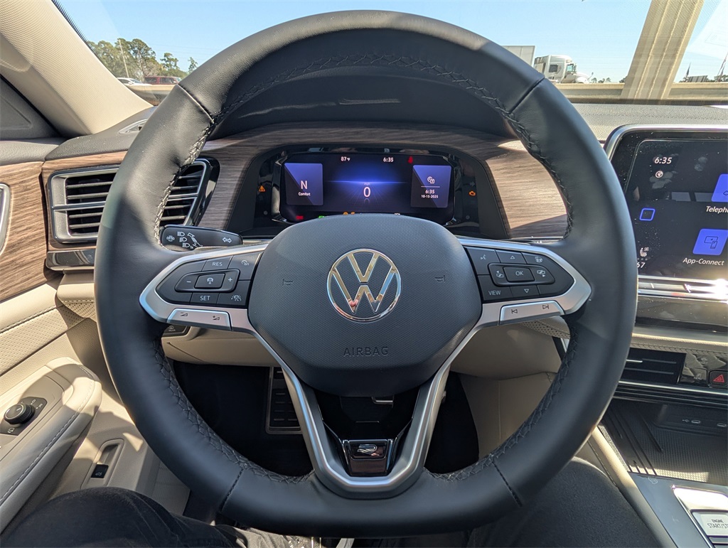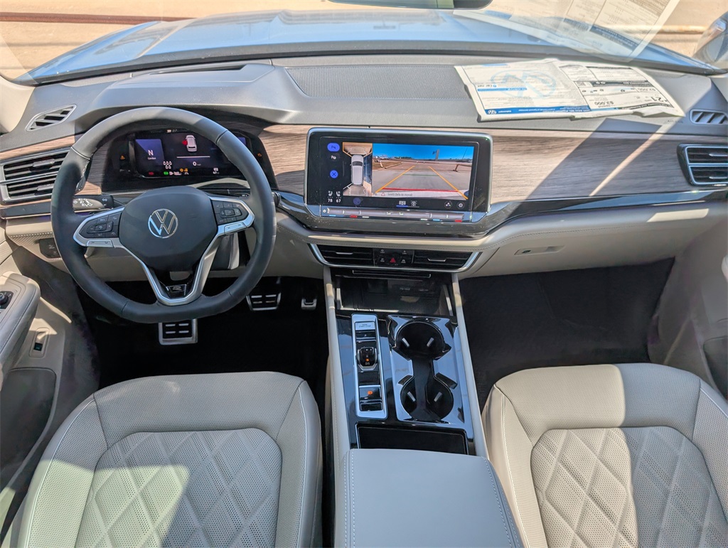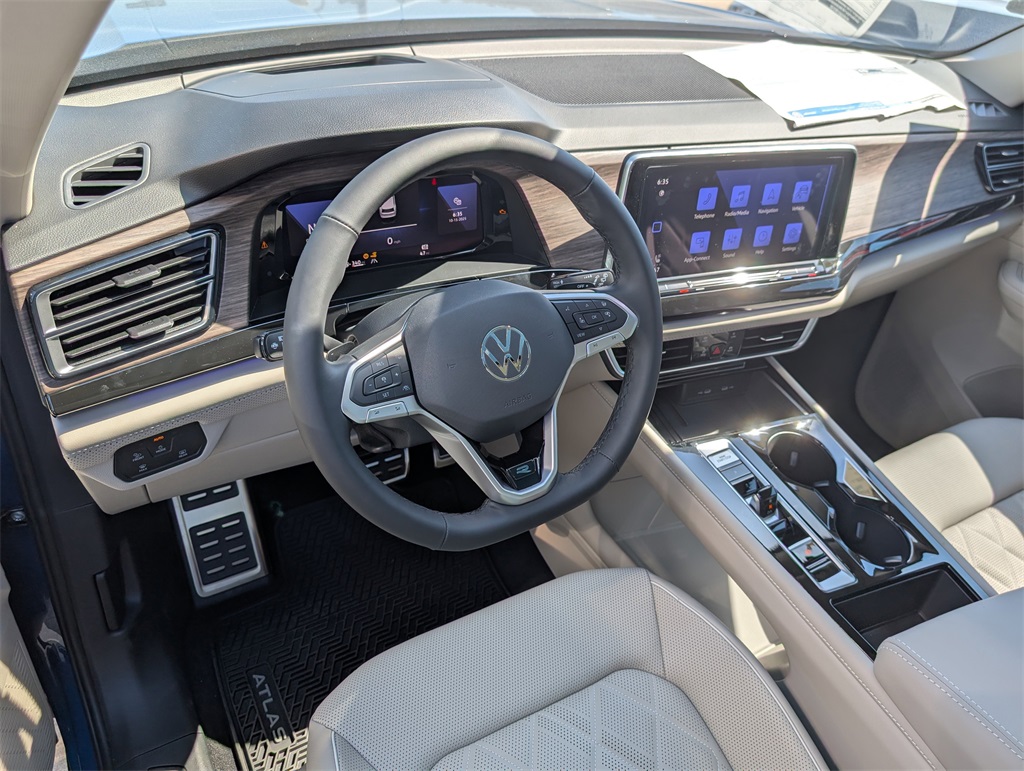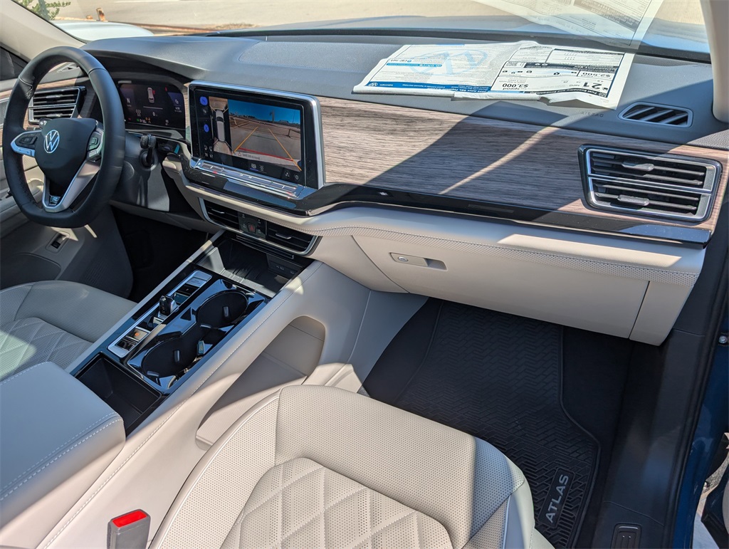 umpers: body-color, Compass, Delay-off headlights, Driver door bin, Driver vanity mirror, Dual front impact airbags, Dual front side impact airbags, Electronic Stability Control, Emergency communication system: VW Car-Net Safe & Secure 5-year, Exterior Parking Camera Rear, Four wheel independent suspension, Four-wheel Independent Suspension, Front anti-roll bar, Front Bucket Seats, Front Center Armrest, Front dual zone A/C, Front fog lights, Front reading lights, Fully automatic headlights, harman/kardon® Speakers, Heads-Up Display, Heated & Actively Ventilated Front Bucket Seats, Heated door mirrors, Heated front seats, Heated rear seats, Heated steering wheel, Illuminated entry, Leather steering wheel, Low tire pressure warning, Memory seat, Navigation System, Occupant sensing airbag, Outside temperature display, Overhead airbag, Overhead console, Panic alarm, Passenger door bin, Passenger vanity mirror, Perforated Vienna Leather Seating Surfaces, Power door mirrors, Power driver seat, Power Liftgate, Power moonroof: Panoramic, Power passenger seat, Power steering, Power windows, Radio data system, Radio: MIB3 Discover Media w/Navigation, Rain sensing wipers, Rear air conditioning, Rear anti-roll bar, Rear audio controls, Rear reading lights, Rear seat center armrest, Rear window defroster, Rear window wiper, Remote keyless entry, Security system, Speed control, Speed-sensing steering, Split folding rear seat, Spoiler, Sport steering wheel, Steering wheel mounted audio controls, Tachometer, Telescoping steering wheel, Tilt steering wheel, Traction control, Trip computer, Turn signal indicator mirrors, Variably intermittent wipers, Ventilated front seats, and Wheels: 21" 2-Tone Machined Alloy. 2025 Volkswagen Atlas 2.0T SEL Premium R-Line 4D Sport Utility Blue 18/25 City/Highway MPG Price includes: $3500 - Retail Customer Bonus. Exp. 11/03/2025