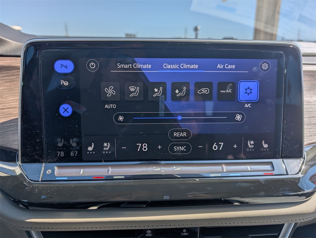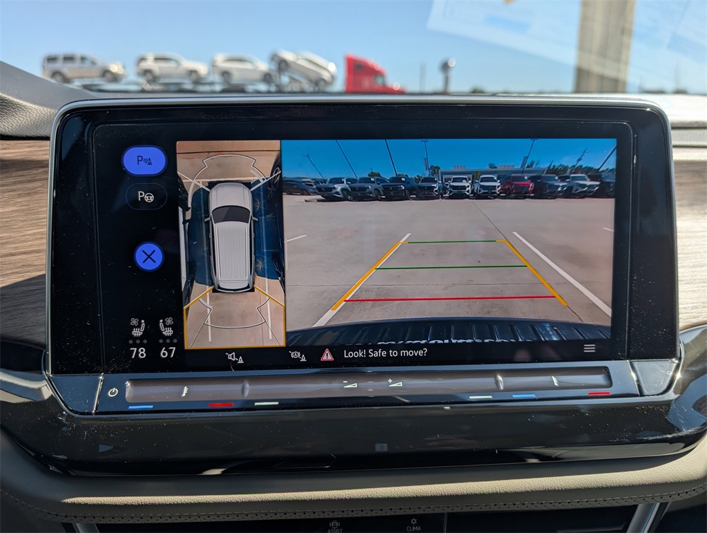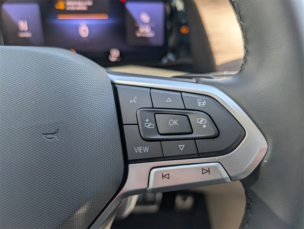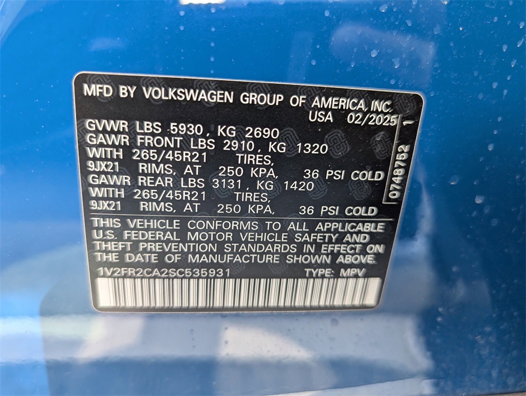 umpers: body-color, Compass, Delay-off headlights, Driver door bin, Driver vanity mirror, Dual front impact airbags, Dual front side impact airbags, Electronic Stability Control, Emergency communication system: VW Car-Net Safe & Secure 5-year, Exterior Parking Camera Rear, Four wheel independent suspension, Four-wheel Independent Suspension, Front anti-roll bar, Front Bucket Seats, Front Center Armrest, Front dual zone A/C, Front fog lights, Front reading lights, Fully automatic headlights, harman/kardon® Speakers, Heads-Up Display, Heated & Actively Ventilated Front Bucket Seats, Heated door mirrors, Heated front seats, Heated rear seats, Heated steering wheel, Illuminated entry, Leather steering wheel, Low tire pressure warning, Memory seat, Navigation System, Occupant sensing airbag, Outside temperature display, Overhead airbag, Overhead console, Panic alarm, Passenger door bin, Passenger vanity mirror, Perforated Vienna Leather Seating Surfaces, Power door mirrors, Power driver seat, Power Liftgate, Power moonroof: Panoramic, Power passenger seat, Power steering, Power windows, Radio data system, Radio: MIB3 Discover Media w/Navigation, Rain sensing wipers, Rear air conditioning, Rear anti-roll bar, Rear audio controls, Rear reading lights, Rear seat center armrest, Rear window defroster, Rear window wiper, Remote keyless entry, Security system, Speed control, Speed-sensing steering, Split folding rear seat, Spoiler, Sport steering wheel, Steering wheel mounted audio controls, Tachometer, Telescoping steering wheel, Tilt steering wheel, Traction control, Trip computer, Turn signal indicator mirrors, Variably intermittent wipers, Ventilated front seats, and Wheels: 21" 2-Tone Machined Alloy. 2025 Volkswagen Atlas 2.0T SEL Premium R-Line 4D Sport Utility Blue 18/25 City/Highway MPG Price includes: $3500 - Retail Customer Bonus. Exp. 11/03/2025