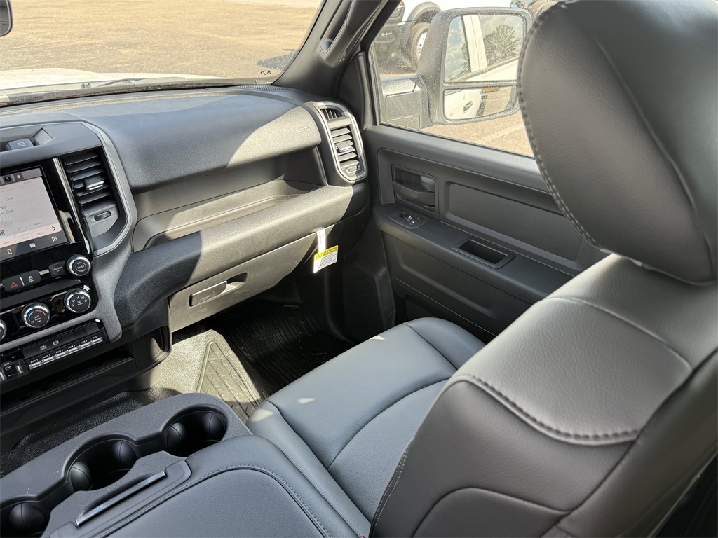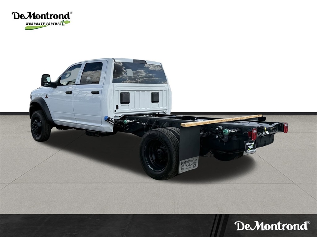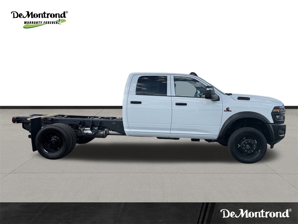 irrors Courtesy Lamps, Exterior Mirrors w/Heating Element, Exterior Mirrors w/Supplemental Signals, Manual Folding Exterior Mirrors, Manual Telescoping Mirrors, Mirror Running Lights, Power Adjust Mirrors, Power-Adjustable Convex Aux Mirrors, and Rear Window Defroster), 4-Wheel Disc Brakes, 4.44 Axle Ratio, 40/20/40 Split Bench Seat, 4G LTE Wi-Fi Hot Spot, 52 & 22 Gallon Dual Fuel Tanks, 6 Speakers, ABS brakes, Air Conditioning, AM/FM radio: SiriusXM, Apple CarPlay, Apple CarPlay/Android Auto, Compass, Connectivity - US/Canada, Delay-off headlights, Driver door bin, Dual front impact airbags, Dual rear wheels, Electronic Stability Control, Emergency communication system: RAM Connect, For Details, Visit DriveUconnect.com, Front anti-roll bar, Front Armrest w/Cupholders, Front Center Armrest w/Storage, Front fog lights, Front License Plate Bracket, Front reading lights, Fully automatic headlights, Global Telematics Box Module (TBM), Google Android Auto, GPS Antenna Input, Heavy Duty Front Suspension Group, Integrated Voice Command w/Bluetooth, Manual Adjust 4-Way Driver Seat, Manual Adjust 4-Way Front Passenger Seat, Manufacturer's Statement of Origin, Occupant sensing airbag, Outside temperature display, Overhead console, Panic alarm, Passenger door bin, Passenger vanity mirror, Power steering, Power Take-Off Right/Left, Power windows, Radio data system, Radio: Uconnect 5 w/8.4" Display, Rear anti-roll bar, Rear Folding Seat, Rear reading lights, Remote keyless entry, Remote USB Port - Charge Only, Speed control, Tachometer, Temperature & Compass Gauge, Tilt steering wheel, Traction control, Variably intermittent wipers, Voltmeter, and Wheels: 19.5" x 6.0" Black Painted SteeL. 2026 Ram 5500HD Tradesman 4D Crew Cab Bright White Clearcoat