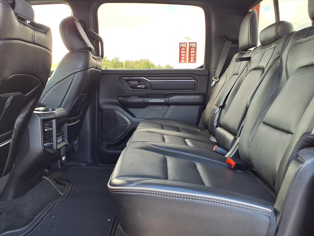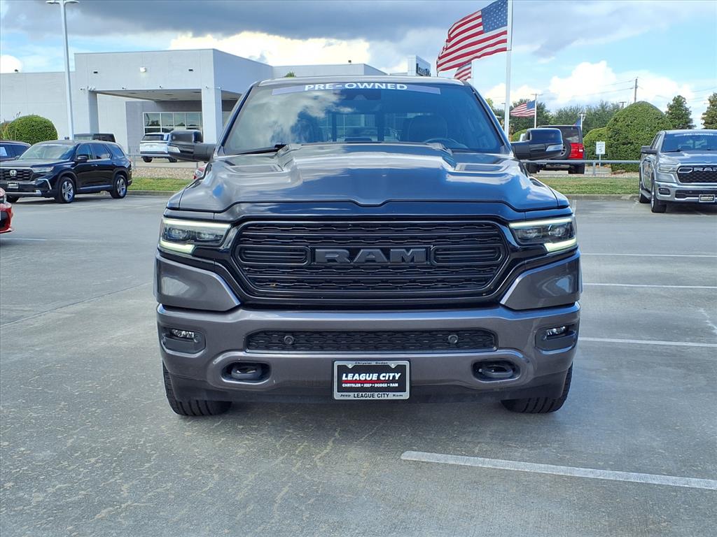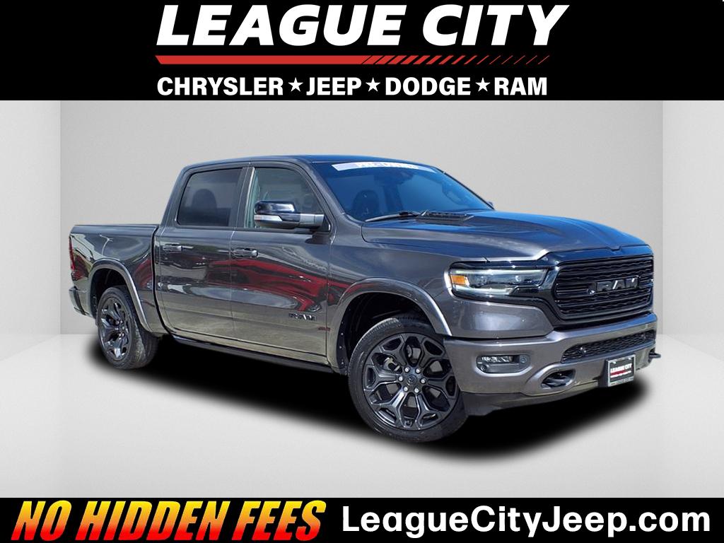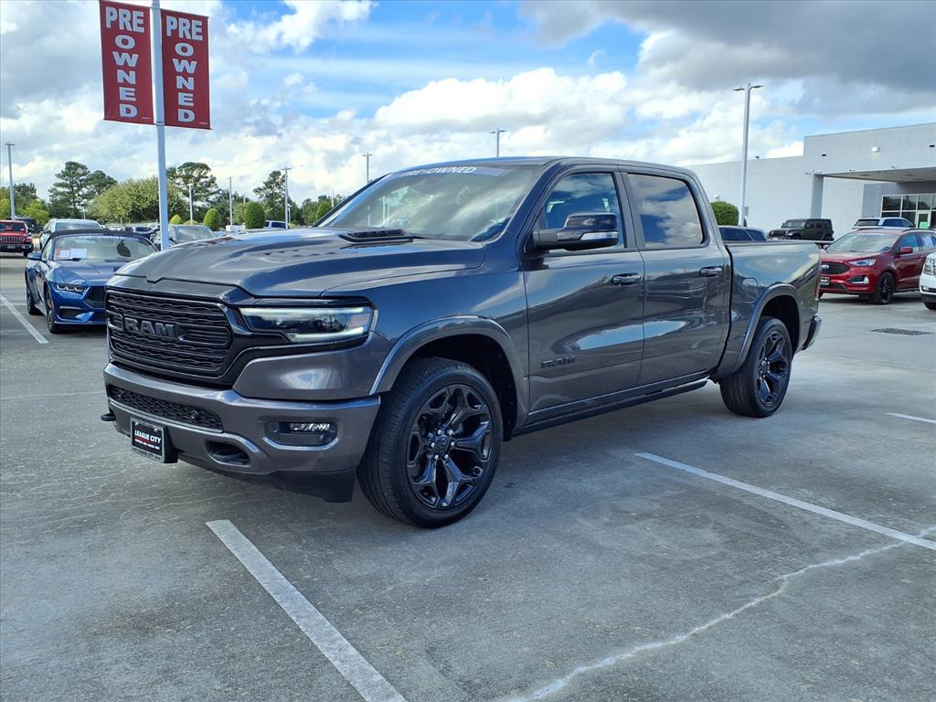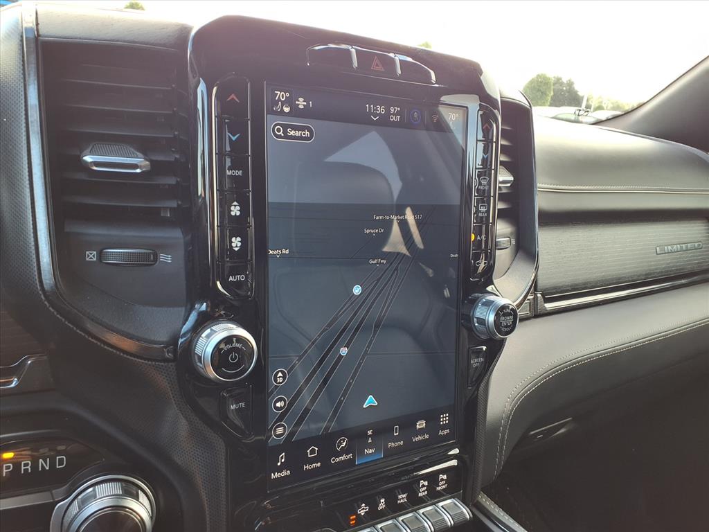 This 2022 RAM Crew Cab 1500 Limited is a state-of-the-art motorcar that has been meticulously maintained. With 77,076 miles on the odometer, this four-wheel drive vehicle has a 5.7 liter 8 cylinder engine with sequential port fuel injection and a granite crystal metallic clearcoat exterior. It has a black interior and a fuel economy of 15 mpg in the city and 22 mpg on the highway. Safety features include blind spot sensor, hill start assist, and navigation with voice recognition and touch screen