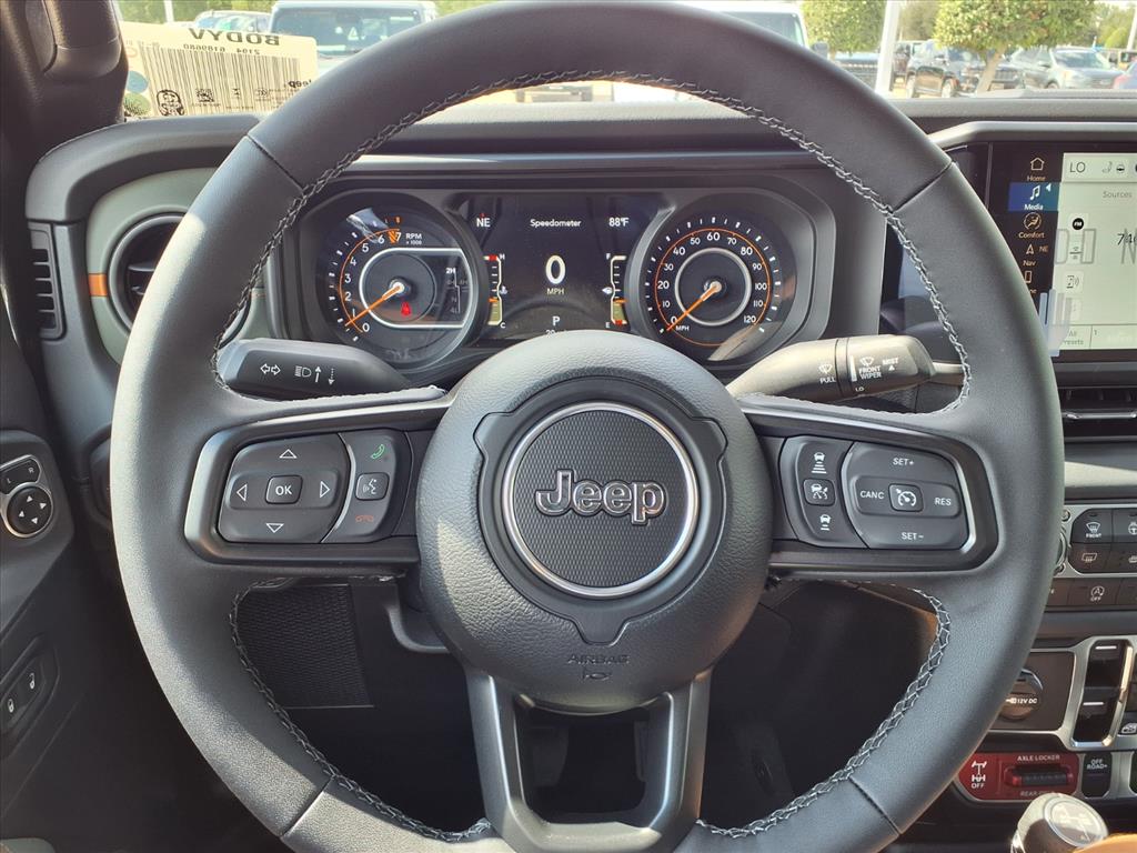 stem with voice recognition, navigation with touch screen display, leather parking brake trim, Bluetooth phone connectivity, and leather-trimmed seats. The 2025 Jeep Crew Cab 4x4 Gladiator Mojave is the perfect combination of style, power, and technology that will make any driver feel like a rock star on the road. The final price includes available non-conditional consumer cash incentives, incompatible with promotional APR or Lease Offers. Online price does not include tax, title, license fees, or dealer-installed options. Contact our Internet Sales Team @ 409.237.0765 to confirm availability and arrange your Test Drive!