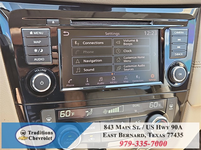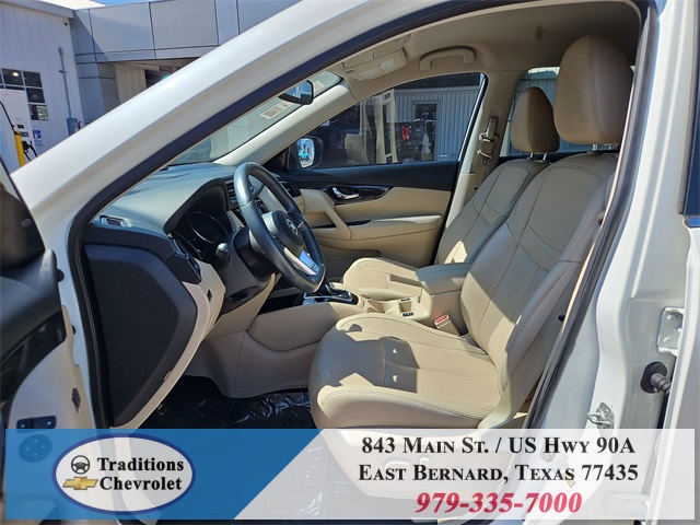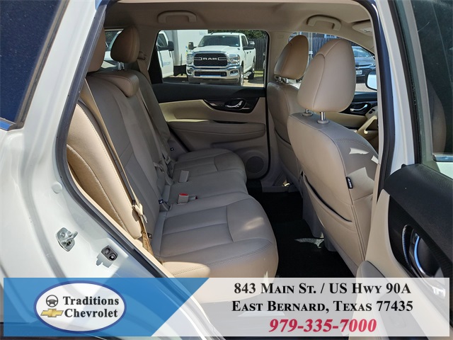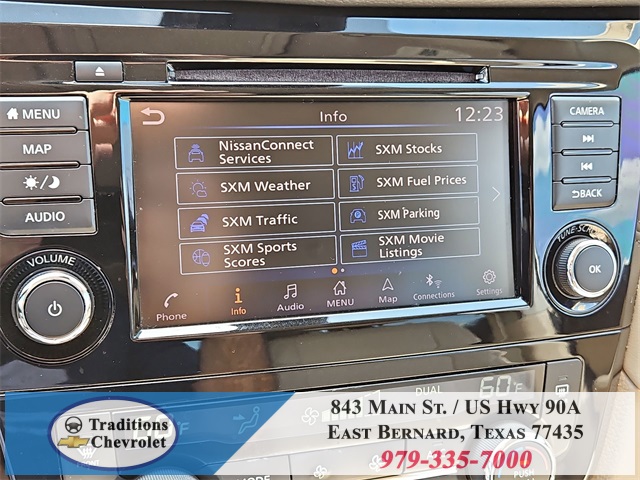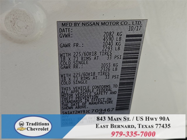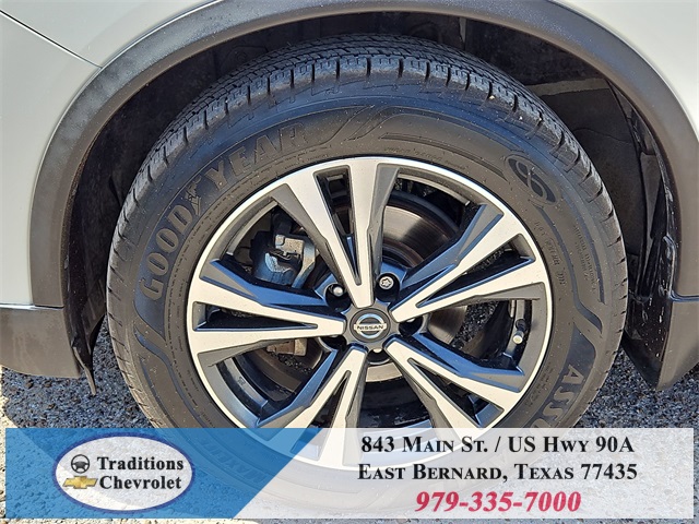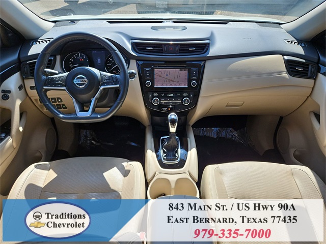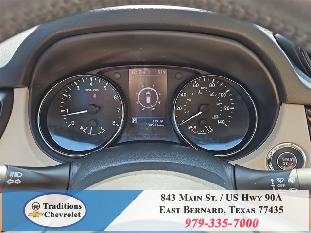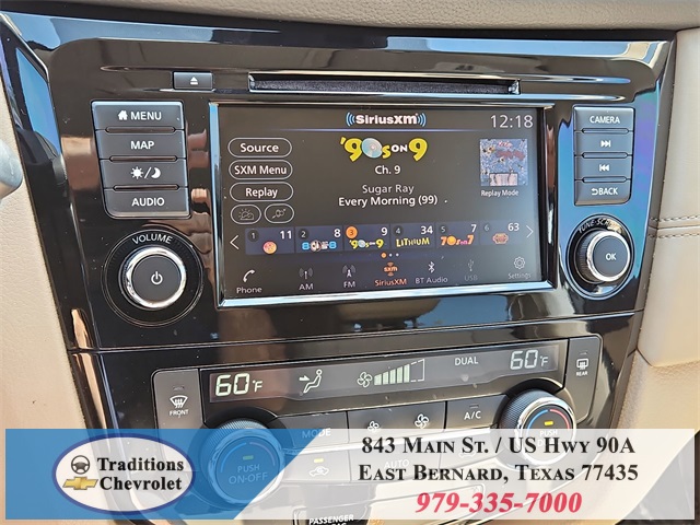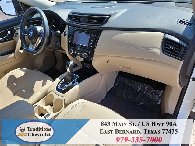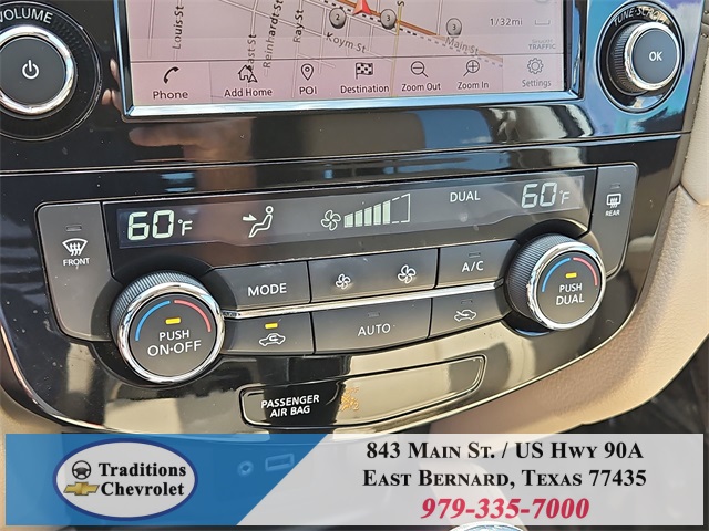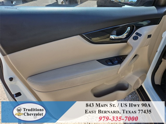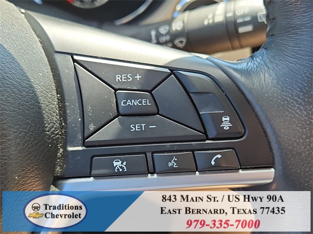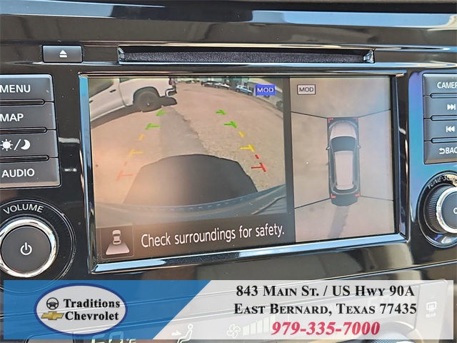 Anti-whiplash front head restraints, Apple CarPlay/Android Auto, Auto High-beam Headlights, Auto-dimming Rear-View mirror, Automatic temperature control, Black Splash Guards (Set of 4), Blind Spot Warning, Brake assist, Bumpers: body-color, CD player, Delay-off headlights, Driver door bin, Driver vanity mirror, Dual front impact airbags, Dual front side impact airbags, Electronic Stability Control, Emergency communication system: NissanConnect Services, First Aid Kit, Floor Mats & 2-PC Cargo Area Protector, Front anti-roll bar, Front Bucket Seats, Front Center Armrest w/Storage, Front dual zone A/C, Front fog lights, Front reading lights, Fully automatic headlights, Garage door transmitter: HomeLink, Heated door mirrors, Heated front seats, Heated steering wheel, Illuminated entry, Leather Appointed Seat Trim, Leather Shift Knob, Low tire pressure warning, Occupant sensing airbag, Outside temperature display, Overhead airbag, Overhead console, Panic alarm, Passenger door bin, Passenger vanity mirror, Power door mirrors, Power driver seat, Power steering, Power windows, Quick Comfort Heated Front Bucket Seats, Radio data system, Radio: AM/FM/CD/AUX NissanConnect w/Navigation, Rear anti-roll bar, Rear seat center armrest, Rear window defroster, Rear window wiper, Remote keyless entry, Roof rack: rails only, Security system, Speed control, Speed-sensing steering, Split folding rear seat, Spoiler, Steering wheel mounted audio controls, Tachometer, Telescoping steering wheel, Tilt steering wheel, Traction control, Trip computer, Turn signal indicator mirrors, and Variably intermittent wipers.