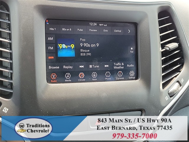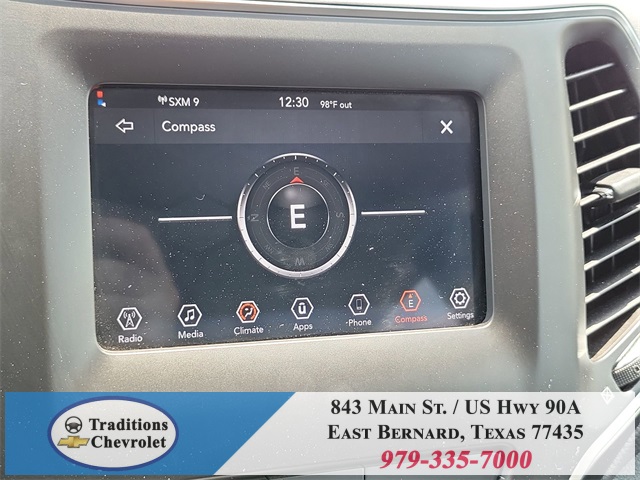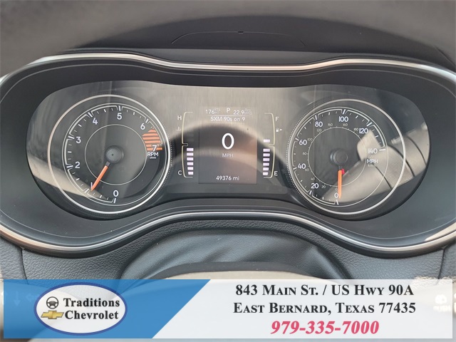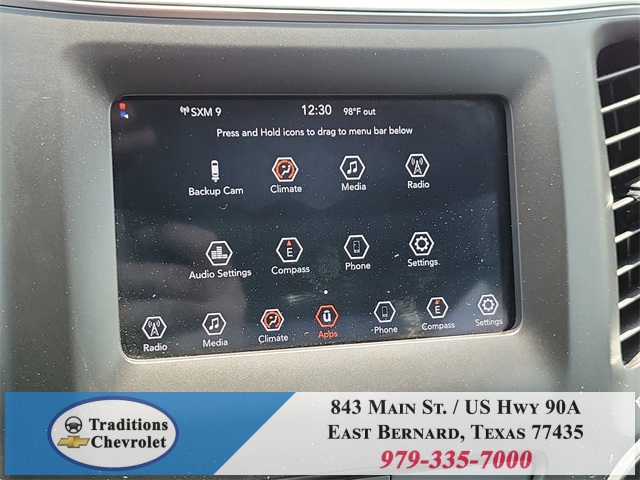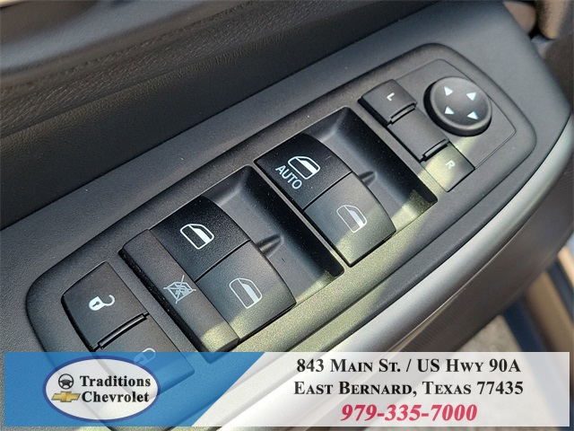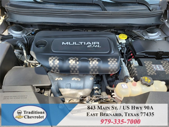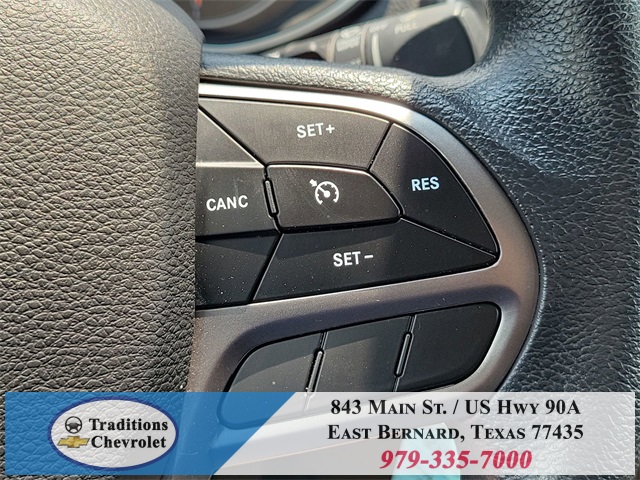 ple CarPlay/Android Auto, Brake assist, Bumpers: body-color, Cloth Bucket Seats, Compass, Delay-off headlights, Driver door bin, Driver vanity mirror, Dual front impact airbags, Dual front side impact airbags, Electronic Stability Control, For More Info, Call 800-643-2112, Four wheel independent suspension, Front anti-roll bar, Front Bucket Seats, Front Center Armrest, Front fog lights, Front reading lights, Fully automatic headlights, Heated door mirrors, Illuminated entry, Illuminated Front Cupholders (DISC), Knee airbag, Low tire pressure warning, No Satellite Coverage HI/AK/PR/VI, Normal Duty Suspension, Occupant sensing airbag, Outside temperature display, Overhead airbag, Overhead console, Panic alarm, ParkView Rear Back-Up Camera, Passenger door bin, Passenger vanity mirror, Power door mirrors, Power steering, Power windows, Radio data system, Radio: Uconnect 4 w/7" Display, Rear anti-roll bar, Rear reading lights, Rear seat center armrest, Rear side impact airbag, Rear window defroster, Rear window wiper, Remote keyless entry, Roof rack: rails only, SiriusXM Satellite Radio, Speed control, Speed-sensing steering, Split folding rear seat, Spoiler, Stop-Start Multiple VSM System, Tachometer, Telescoping steering wheel, Tilt steering wheel, Traction control, Trip computer, Variably intermittent wipers, and Voltmeter. Certification Program Details: CARBRAVO CERTIFIED