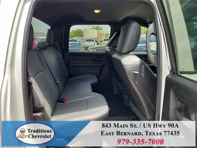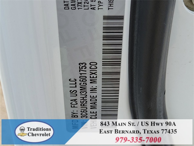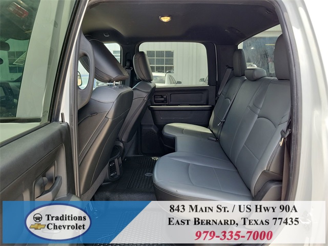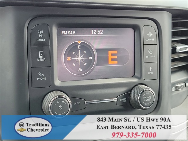 ags, Dual front side impact airbags, Electronic Stability Control, Electronically Controlled Throttle, Exterior Mirrors Courtesy Lamps, Exterior Mirrors w/Heating Element, Exterior Mirrors w/Supplemental Signals, Front anti-roll bar, Front Center Armrest w/Storage, Front License Plate Bracket, Front reading lights, Fully automatic headlights, GPS Antenna Input, Heated door mirrors, Heavy Duty Vinyl 40/20/40 Split Bench Seat, Illuminated entry, Integrated Voice Command w/Bluetooth, Low tire pressure warning, Manual Adjust 4-Way Driver Seat, Mirror Running Lights, MOPAR Front & Rear Rubber Floor Mats, MOPAR Spray In Bedliner, Occupant sensing airbag, Outside temperature display, Overhead airbag, Overhead console, ParkView Rear Back-Up Camera, Passenger door bin, Passenger vanity mirror, Power Adjust & Heated Black Tow Mirrors, Power door mirrors, Power steering, Power windows, Radio data system, Radio: Uconnect 3 w/5" Display, Rear anti-roll bar, Rear Folding Seat, Rear step bumper, Speed control, Tachometer, Tilt steering wheel, Tip Start, Traction control, Trailer Brake Control, Trailer Light Check, Trailer Tow Mirrors, Variably intermittent wipers, and Voltmeter.
