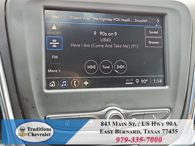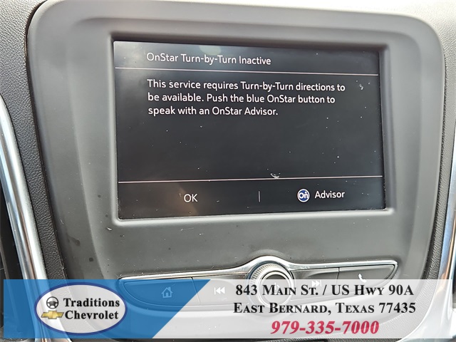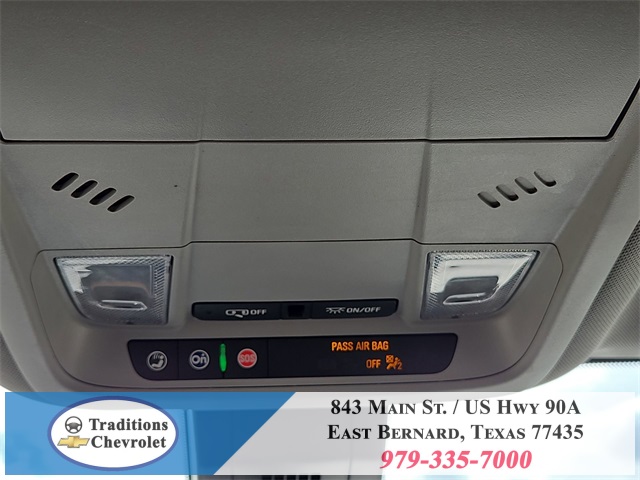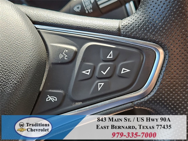 Bumpers: body-color, Compass, Delay-off headlights, Deleted 3 Years of Remote Access, Driver 8-Way Power Seat Adjuster, Driver door bin, Driver vanity mirror, Dual front impact airbags, Dual front side impact airbags, Electronic Stability Control, Emergency communication system: OnStar and Chevrolet connected services capable, Four wheel independent suspension, Front anti-roll bar, Front Bucket Seats, Front Center Armrest, Front Passenger 4-Way Manual Seat Adjuster, Front reading lights, Fully automatic headlights, Heated door mirrors, Illuminated entry, Low tire pressure warning, Occupant sensing airbag, Outside temperature display, Overhead airbag, Overhead console, Panic alarm, Passenger door bin, Passenger vanity mirror, Power door mirrors, Power driver seat, Power steering, Power windows, Premium audio system: Chevrolet Infotainment 3, Premium Cloth Seat Trim, Radio data system, Radio: Chevrolet Infotainment 3 System w/AM/FM, Rear anti-roll bar, Rear reading lights, Rear seat center armrest, Rear window defroster, Rear window wiper, Remote keyless entry, Security system, SiriusXM Radio, Speed control, Speed-sensing steering, Split folding rear seat, Spoiler, Steering wheel mounted audio controls, Tachometer, Telescoping steering wheel, Tilt steering wheel, Traction control, Trip computer, Variably intermittent wipers, and Wireless Apple CarPlay/Wireless Android Auto.