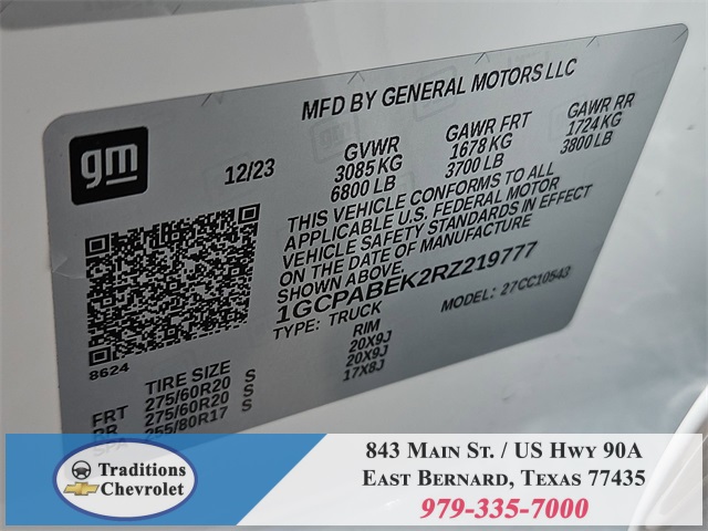 d Power Outlet, 120-Volt Interior Power Outlet, 3.5" Monochromatic Display Driver Info Center, Bluetooth® For Phone, Chevrolet Connected Access Capable, Color-Keyed Carpeting Floor Covering, Deep-Tinted Glass, Dual Rear USB Ports (Charge Only), Electrical Steering Column Lock, Electronic Cruise Control, Front Frame-Mounted Black Recovery Hooks, Front Rubberized Vinyl Floor Mats, HD Rear Vision Camera, Manual Tilt Wheel Steering Column, OnStar & Chevrolet Connected Services Capable, Power Front Windows w/Driver Express Up/Down, Power Front Windows w/Passenger Express Down, Power Rear Windows w/Express Down, Rear 60/40 Folding Bench Seat (Folds Up), Rear Rubberized-Vinyl Floor Mats, Remote Keyless Entry, SiriusXM Radio, Standard Tailgate, and Wi-Fi Hot Spot Capable), Trailering Package (Hitch Guidance), CARBRAVO CERTIFIED Certified, 8-Speed Automatic, Black Cloth, 3.42 Rear Axle Ratio, 4-Wheel Disc Brakes, 40/20/40 Front Split-Bench Seat, 6 Speakers, 6-Speaker Audio System, ABS brakes, Air Conditioning, Alloy wheels, AM/FM radio: SiriusXM, Auto High-beam Headlights, Automatic Emergency Braking, Brake assist, Bumpers: body-color, Cloth Seat Trim, Compass, Delay-off headlights, Driver door bin, Driver vanity mirror, Dual front impact airbags, Dual front side impact airbags, Electronic Stability Control, Following Distance Indicator, Forward Collision Alert, Front anti-roll bar, Front Center Armrest w/Storage, Front License Plate Kit, Front Pedestrian Braking, Front reading lights, Front wheel independent suspension, Fully automatic headlights, Heated door mirrors, Illuminated entry, IntelliBeam Automatic High Beam On/Off, Lane Keep Assist w/Lane Departure Warning, Low tire pressure warning, Occupant sensing airbag, Outside temperature display, Overhead airbag, Overhead console, Panic alarm, Passenger door bin, Passenger vanity mirror, Power door mirrors, Power driver seat, Power steering, Power windows, Premium audio system: Chevrolet Infotainment 3, Radio data system, Radio: Chevrolet Infotainment 3 System, Rear reading lights, Rear step bumper, Rear window defroster, Remote keyless entry, Security system, Single Outlet Exhaust, Speed control, Speed-sensing steering, Split folding rear seat, Tachometer, Tilt steering wheel, Traction control, Trip computer, Variably intermittent wipers, Voltmeter, Wheels: 20" x 9" Bright Silver Painted Aluminum, and Wheels: 20" x 9" High Gloss Black Painted Alum. Certification Program Details: CARBRAVO CERTIFIED