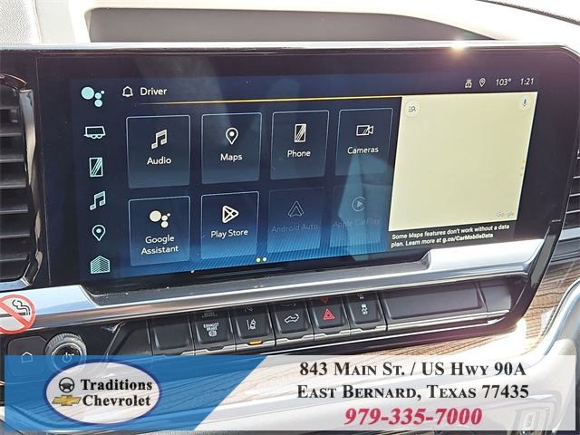 Front Rubberized Vinyl Floor Mats, Halogen Reflector Headlamps, HD Rear Vision Camera, Heated Vertical Trailering Mirrors, Keyless Open & Start, Manual Tilt-Wheel Steering Column, OnStar & Chevrolet Connected Services Capable, Power Door Locks, Power Front Windows w/Driver Express Up/Down, Power Front Windows w/Passenger Express Down, Power Rear Windows w/Express Down, Push Button Start, Rear 60/40 Folding Bench Seat (Folds Up), Rear Rubberized Vinyl Floor Mats, SiriusXM w/360L, Standard Tailgate, Steering Wheel Audio Controls, Wi-Fi Hotspot Capable, Wireless Phone Projection, and Wrapped Steering Wheel), Suspension Package, CARBRAVO CERTIFIED Certified, 10-Speed Automatic, 4WD, Black Cloth, 17" Machined Aluminum Wheels, 220 Amp Alternator, 4-Wheel Disc Brakes, 6 Speakers, 6-Speaker Audio System, 6" Rectangular Chromed Tubular Assist Steps, 720 Cold-Cranking Amps Heavy-Duty Battery, ABS brakes, Air Conditioning, Alloy wheels, AM/FM radio: SiriusXM with 360L, Apple CarPlay/Android Auto, Auto High-beam Headlights, Brake assist, Bumpers: chrome, Cloth Seat Trim, Delay-off headlights, Deleted 3 Years of Remote Access, Driver door bin, Driver vanity mirror, Dual front impact airbags, Dual front side impact airbags, Durabed Pickup Bed, Electronic Stability Control, Engine Block Heater, Exhaust Brake, Front 40/20/40 Split-Bench Seats w/Lockable Storage, Front anti-roll bar, Front Center Armrest w/Storage, Front reading lights, Front wheel independent suspension, Fully automatic headlights, Heated door mirrors, Illuminated entry, Low tire pressure warning, Occupant sensing airbag, Outside temperature display, Overhead airbag, Overhead console, Panic alarm, Passenger door bin, Passenger vanity mirror, Power door mirrors, Power steering, Power windows, Premium audio system: Chevrolet Infotainment 3 Premium, Radio: Chevrolet Infotainment 3 Premium System, Rear reading lights, Rear step bumper, Remote keyless entry, Speed control, Split folding rear seat, Steering wheel mounted audio controls, Tachometer, Tilt steering wheel, Traction control, Trip computer, Turn signal indicator mirrors, Variably intermittent wipers, Voltmeter, and Winter Grille Cover. Certification Program Details: CARBRAVO CERTIFIED