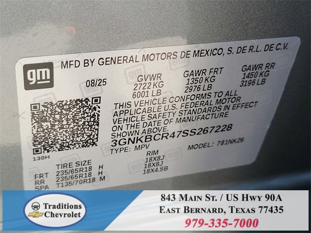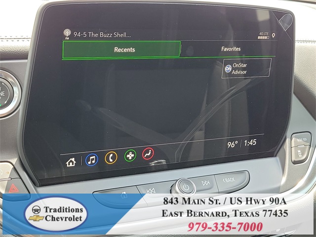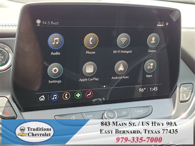r vanity mirror, Dual front impact airbags, Dual front side impact airbags, Electronic Stability Control, Emergency communication system: OnStar and Chevrolet connected services capable, Four wheel independent suspension, Front anti-roll bar, Front Bucket Seats, Front Center Armrest, Front dual zone A/C, Front reading lights, Fully automatic headlights, Heated door mirrors, Heated Driver & Front Passenger Seats, Heated front seats, Illuminated entry, Knee airbag, Leather Shift Knob, Low tire pressure warning, Occupant sensing airbag, Outside temperature display, Overhead airbag, Overhead console, Panic alarm, Passenger door bin, Passenger vanity mirror, Power door mirrors, Power Driver Lumbar Control, Power driver seat, Power steering, Power windows, Premium audio system: Chevrolet Infotainment 3 Plus, Premium Cloth Seat Trim, Radio data system, Radio: Chevrolet Infotainment 3 Plus System, Rear anti-roll bar, Rear reading lights, Rear seat center armrest, Rear window defroster, Rear window wiper, Remote keyless entry, Ride & Handling Suspension, Security system, SiriusXM w/360L, Speed control, Speed-sensing steering, Split folding rear seat, Spoiler, Steering wheel mounted audio controls, Stop-Start Engine Control System, Tachometer, Telescoping steering wheel, Tilt steering wheel, Traction control, Trip computer, Variably intermittent wipers, Voltmeter, and Wheels: 18" Grazen Metallic Aluminum. Tax, title, license and dealer fees (unless itemized above) are extra. Not available with special finance or lease offers. See Dealer for Details. Price includes: $1000 - Customer Cash. Exp. 11/03/2025