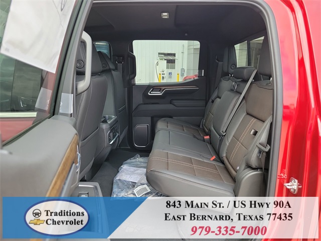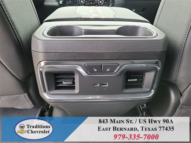 n Black Bedliner, Chrome Assist Steps, Chrome Recovery Hooks, Color-Keyed Carpeting Floor Covering, Deep-Tinted Glass, Driver Memory, Dual Exhaust w/Polished Outlets, Dual Rear USB Ports (Charge Only), Electric Rear-Window Defogger, Floor Mounted Center Console, Front Carpeted Floor Mats, Front LED Fog Lamps, Front Rain-Sensing Wipers, HD Surround Vision, Heated Driver & Front Outboard Passenger Seats, Heated Steering Wheel, High Capacity Suspension Package, Hitch Guidance, Hitch Guidance w/Hitch View, In-Vehicle Trailering System App, Integrated Trailer Brake Controller, Keyless Open & Start, LED Cargo Area Lighting, OnStar Services Capable, Outside Heated Power-Adjustable Mirrors, Perimeter Lighting, Power Front Passenger Windows w/Express Up/Down, Power Front Windows w/Driver Express Up/Down, Power Rear Windows w/Express Down, Power Sliding Rear Window w/Rear Defogger, Power Tailgate, Power Tilt & Telescoping Steering Column, Preferred Equipment Group 3LZ, Rear Carpeted Floor Mats, Rear Cross Traffic Braking, Rear Pedestrian Alert, Rear Wheelhouse Liners, Remote Vehicle Starter System, Safety Alert Seat, SiriusXM w/360L Trial Subscription, Standard Tailgate, Steering Wheel Audio Controls, Teen Driver, Theft Deterrent System (Unauthorized Entry), Tire Pressure Monitoring System, Trailer Camera Provisions, Trailer Side Blind Zone Alert, Trailering Package, Ultrasonic Front & Rear Park Assist, Universal Home Remote, Up-Level Rear Seat w/Storage Package, Ventilated Driver & Front Passenger Seats, Wi-Fi Hot Spot Capable, Wrapped Steering Wheel.