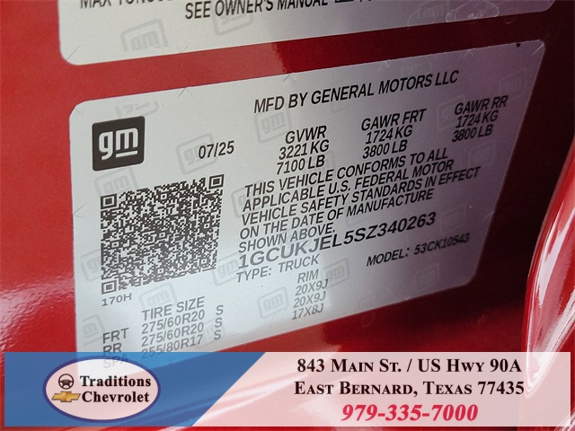 High Capacity Suspension Package, Preferred Equipment Group 3LZ (10-Way Power Driver Seat w/Lumbar, 10-Way Power Passenger Seat Adjuster w/Lumbar, 12.3" Multicolor Reconfigurable Digital Display, 120-Volt Bed Mounted Power Outlet, 120-Volt Interior Power Outlet, 2 USB Data Ports, 2nd Row Heated Outboard Seats, Adaptive Cruise Control, Auto-Dimming Inside Rear-View Mirror, Auto-Locking Rear Differential, Bed View Camera, Bluetooth® For Phone, Body-Color Painted Mirror Caps, Chevytec Spray-On Black Bedliner, Chrome Assist Steps, Chrome Recovery Hooks, Color-Keyed Carpeting Floor Covering, Deep-Tinted Glass, Driver Memory, Dual Exhaust w/Polished Outlets, Dual Rear USB Ports (Charge Only), Electric Rear-Window Defogger, Floor Mounted Center Console, Front Carpeted Floor Mats, Front LED Fog Lamps, Front Rain-Sensing Wipers, HD Surround Vision, Heated Driver & Front Outboard Passenger Seats, Heated Steering Wheel, Hitch Guidance w/Hitch View, In-Vehicle Trailering System App, Integrated Trailer Brake Controller, Keyless Open & Start, LED Cargo Area Lighting, OnStar Services Capable, Outside Heated Power-Adjustable Mirrors, Perimeter Lighting, Power Front Passenger Windows w/Express Up/Down, Power Front Windows w/Driver Express Up/Down, Power Rear Windows w/Express Down, Power Sliding Rear Window w/Rear Defogger, Power Tailgate, Power Tilt & Telescoping Steering Column, Rear Carpeted Floor Mats, Rear Cross Traffic Braking, Rear Pedestrian Alert, Rear Wheelhouse Liners, Remote Vehicle Starter System, Safety Alert Seat, SiriusXM w/360L Trial Subscription, Standard Tailgate, Steering Wheel Audio Controls, Teen Driver, Theft Deterrent System (Unauthorized Entry), Tire Tax, title, license and dealer fees (unless itemized above) are extra. Not available with special finance or lease offers. See Dealer for Details. Price includes: $1000 - Bonus Cash. Exp. 11/03/2025 $2500 - Customer Cash. Exp. 11/03/2