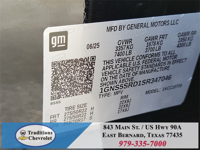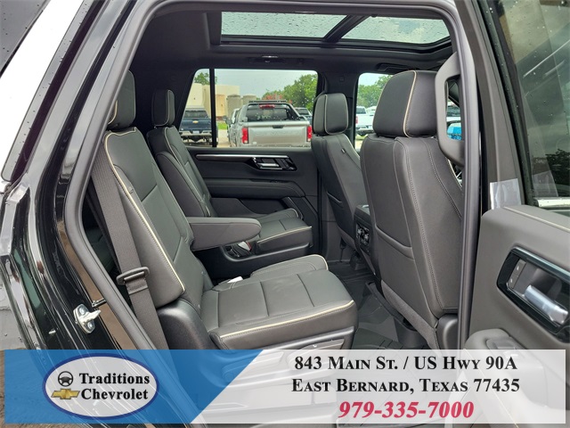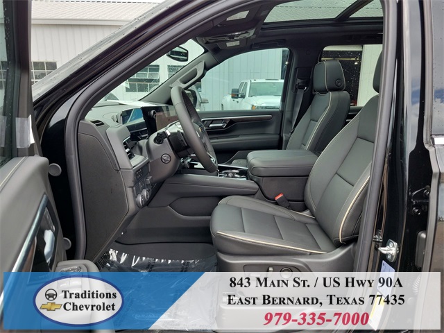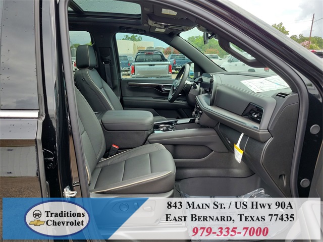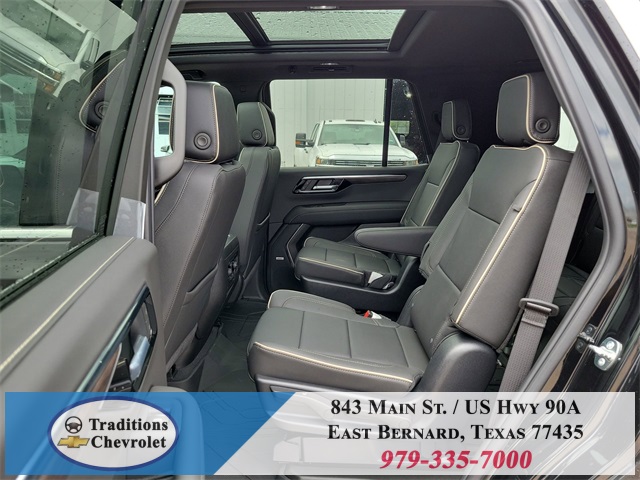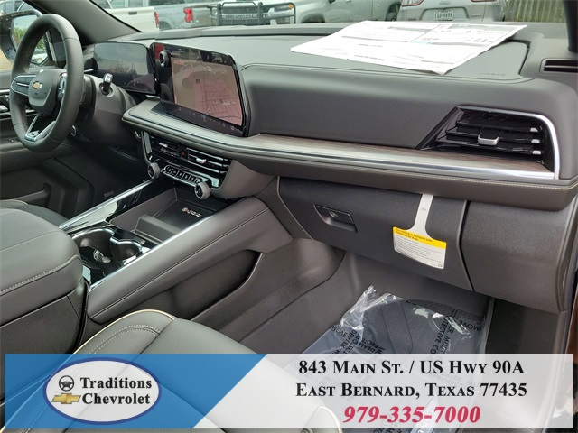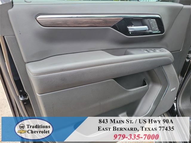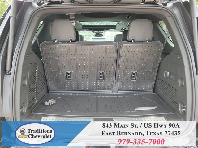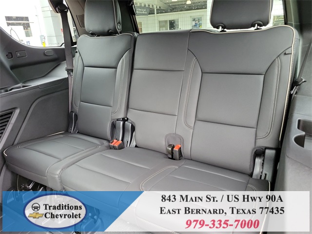 Preferred Equipment Group 1LZ (1st & 2nd Row Color-Keyed Carpeted Floor Mats, 3-Spoke Wrapped Steering Wheel, 3rd Row 60/40 Power-Folding Split-Bench Seat, Auto-Dimming Inside Rear-View Mirror, Bose 10-Speaker Centerpoint Surround Audio Sys Ft, Bright Front & Rear Door Sill Plates, Chrome Door Handles w/Body-Color Strip, Chrome Mirror Caps, Color-Keyed Carpeting Floor Covering, Dual Exhaust System, Floor Console, Front LED Fog Lamps, Front Pedestrian & Bicyclist Braking, Frontal Driver & Outboard Passenger Airbags, Heated 2nd Row Outboard Seats, Heated Steering Wheel, LED Headlamps w/LED Daytime Running Lamps, LED Tail Lamps, Memory Settings, Outside Heated Power-Adjustable Mirrors, Power Release 2nd Row Bucket Seats, Power Tilt & Telescopic Steering Column, Rear Power Liftgate, Remote Start, SiriusXM w/360L Trial Subscription, Universal Home Remote, and Wireless Phone Charging), Premium Liner Protection Package (LPO) (1st & 2nd Rows Premium Floor Liners (LPO), 3rd Row All-Weather Floor Liners (LPO), and All-Weather Cargo Mat (LPO)), Sun & Tow Package (Dual-Pane Power Panoramic Sunroof), Advanced Trailering Package (Blind Zone Steering Assist w/Trailering, Hitch View w/Pan/Zoom Image Adjustment, and Smart Trailer Integration Indicator), License Plate Front Mounting Package, Max Trailering Package (Integrated Trailer Brake Controller), Jet Black w/Perforated Leather Seat Trim, 10 Speakers, 20" x 9" Polished Aluminum Wheels, 3.23 Rear Axle Ratio, 3rd row seats: split-bench, 4-Way Power Driver Lumbar Seat Adjuster, 4-Way Power Front Passenger Lumbar Seat Adjuster, 4-Wheel Disc Brakes, 8-Way Power Driver Seat Adjuster, 8-Way Power Front Passenger Seat Adjuster, ABS brakes, Adaptive suspension, Air Conditioning, Alloy wheels, AM/FM radio: SiriusXM with 360L, Apple CarPlay/Android Auto, Auto High-beam Headlights, Auto-dimming door mirrors, Auto-dimming Rear-View mirror, Auto-leveling suspension, Automatic temperature control, Brake assist, Bumpers: body-color, Compass, Delay-off headlights, Driver & Front Passenger Heated & Ventilated Seats, Driver door bin, Driver vanity mirror, Dual front impact airbags, Dual front side impact airbags, Electronic Stability Control, Emergency communication system: OnStar and Chevrolet connected services capable, Exterior Parking Camera Rear, Extra Capacity Cooling System, Four wheel independent suspension, Front anti-roll bar, Front Bucket Seats, Front Center Armrest, Front dual zone A/C, Front fog lights, Front reading lights, Fully automatic headlights, Garage door transmitter, Heated door mirrors, Heated Driver & Front Passenger Seats, Heated front seats, Heated rear seats, Heated steering wheel, Illuminated entry, Low tire pressure warning, Magnetic Ride Control Suspension, Memory seat, Navigation system: Google built-in compatibility (select service plan required, terms an