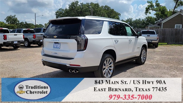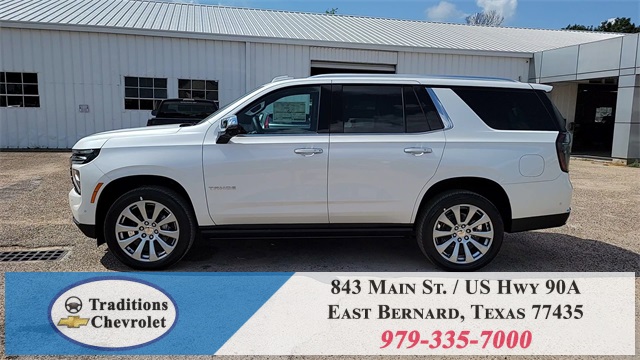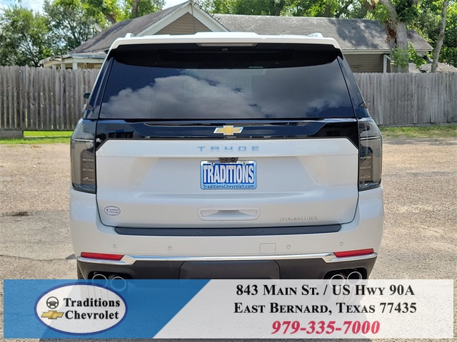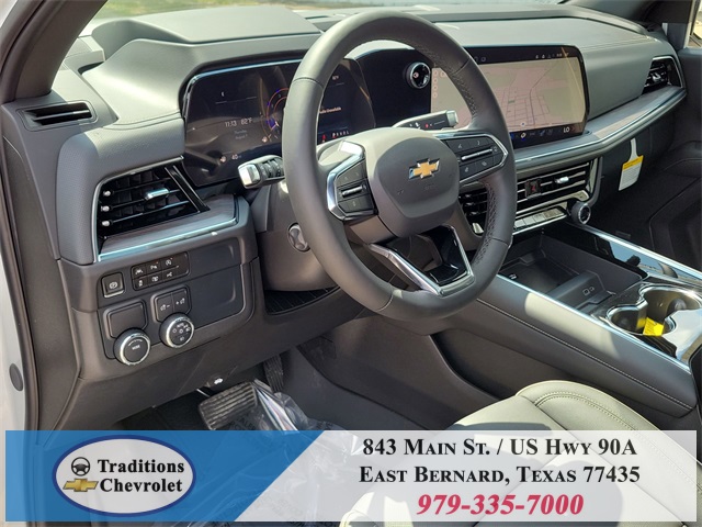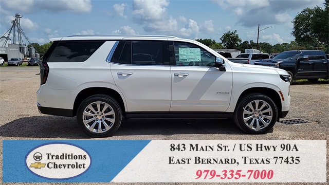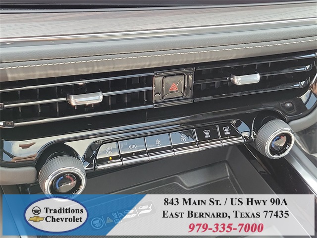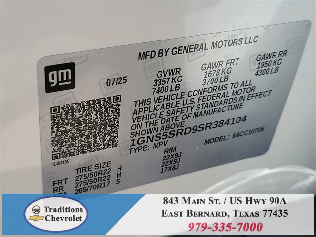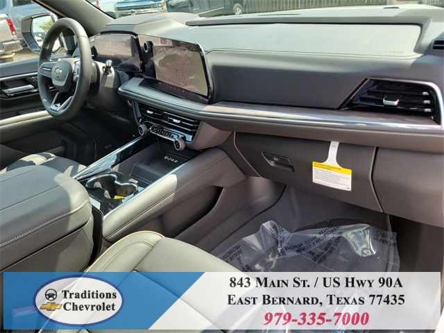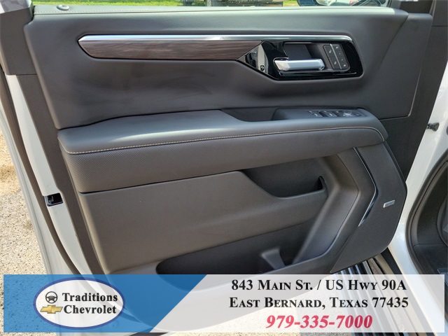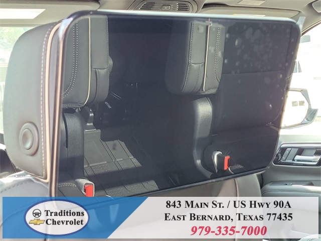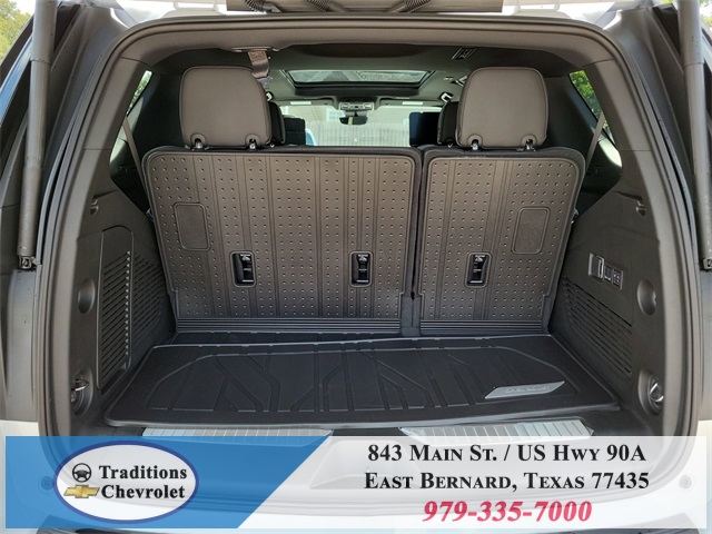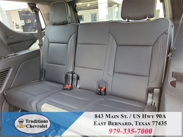 Advanced Security Package (Glass Breakage Sensor, Theft-Deterrent Alarm System, Vehicle Inclination Sensor, and Vehicle Interior Movement Sensor), Preferred Equipment Group 1LZ (1st & 2nd Row Color-Keyed Carpeted Floor Mats, 3-Spoke Wrapped Steering Wheel, 3rd Row 60/40 Power-Folding Split-Bench Seat, Auto-Dimming Inside Rear-View Mirror, Bose 10-Speaker Centerpoint Surround Audio Sys Ft, Bright Front & Rear Door Sill Plates, Chrome Door Handles w/Body-Color Strip, Chrome Mirror Caps, Color-Keyed Carpeting Floor Covering, Dual Exhaust System, Floor Console, Front LED Fog Lamps, Front Pedestrian & Bicyclist Braking, Frontal Driver & Outboard Passenger Airbags, Heated 2nd Row Outboard Seats, Heated Steering Wheel, LED Headlamps w/LED Daytime Running Lamps, LED Tail Lamps, Memory Settings, Outside Heated Power-Adjustable Mirrors, Power Release 2nd Row Bucket Seats, Power Tilt & Telescopic Steering Column, Rear Power Liftgate, Remote Start, SiriusXM w/360L Trial Subscription, Universal Home Remote, and Wireless Phone Charging), Technology & Entertainment Package (Dual-Pane Power Panoramic Sunroof and Rear Seat Media System), Technology Package (15" Diagonal Multi-Color Head-Up Display, AutoSense Hands-Free Power Liftgate, and Inside Rearview Auto-Dimming Rear Camera Mirror), License Plate Front Mounting Package, Premium Liner Protection Package (LPO) (1st & 2nd Rows Premium Floor Liners (LPO), 3rd Row All-Weather Floor Liners (LPO), and All-Weather Cargo Mat (LPO)), Jet Black w/Perforated Leather Seat Trim, 10 Speakers, 20" x 9" Polished Aluminum Wheels, 3 Years SiriusXM, 3.23 Rear Axle Ratio, 3rd row seats: split-bench, 4-Way Power Driver Lumbar Seat Adjuster, 4-Way Power Front Passenger Lumbar Seat Adjuster, 4-Wheel Disc Brakes, 8-Way Power Driver Seat Adjuster, 8-Way Power Front Passenger Seat Adjuster, ABS brakes, Adaptive suspension, Air Conditioning, Alloy wheels, AM/FM radio: SiriusXM with 360L, Apple CarPlay/Android Auto, Auto High-beam Headlights, Auto-dimming door mirrors, Auto-dimming Rear-View mirror, Auto-leveling suspension, Automatic temperature control, Brake assist, Bumpers: body-color, Compass, Delay-off headlights, Driver & Front Passenger Heated & Ventilated Seats, Driver door bin, Driver vanity mirror, Dual front impact airbags, Dual front side impact airbags, Electronic Stability Control, Emergency communication system: OnStar and Chevrolet connected services capable, Exterior Parking Camera Rear, Four wheel independent suspension, Front anti-roll bar, Front Bucket Seats, Front Center Armrest, Front dual zone A/C, Front fog lights, Front reading lights, Fully automatic headlights, Garage door transmitter, Heated
