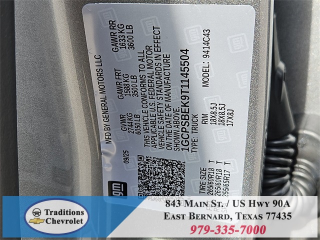 Preferred Equipment Group 2WT (Automatic Emergency Braking, Chevy Safety Assist, Following Distance Indicator, Forward Collision Alert, Front Pedestrian & Bicyclist Braking, IntelliBeam Automatic High Beam On/Off, and Lane Keep Assist w/Lane Departure Warning), WT Convenience Package II (4-Spoke Wrapped Steering Wheel, 8-Way Power Driver Seat Adjuster, EZ-Lift & Lower Tailgate, Power Driver Lumbar Control Seat Adjuster, StowFlex Tailgate Storage Compartment, and Tailgate Keyed Cylinder Lock), WT