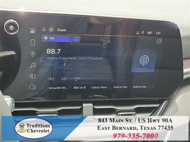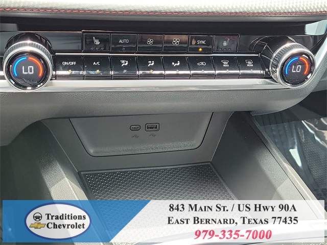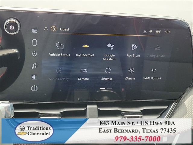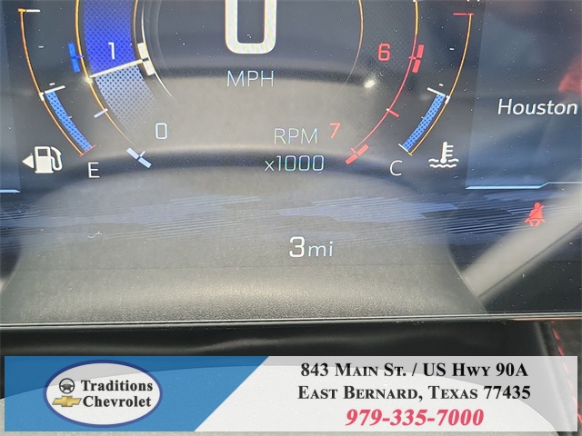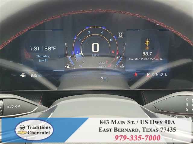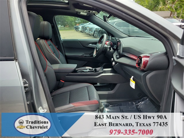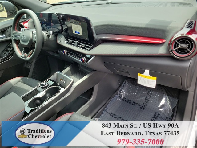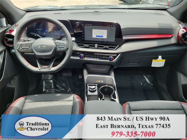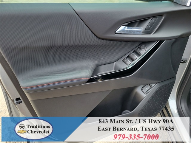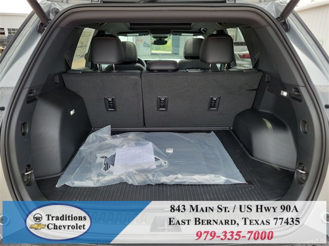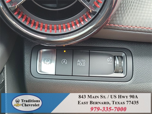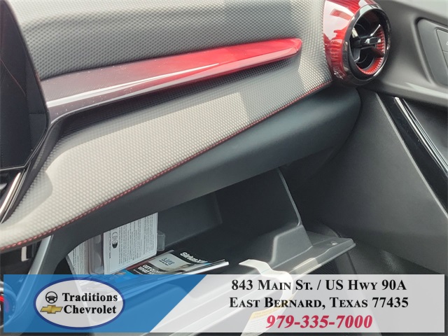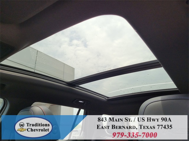 assist, Bumpers: body-color, Compass, Delay-off headlights, Driver 8-Way Power Seat Adjuster, Driver door bin, Driver vanity mirror, Dual front impact airbags, Dual front side impact airbags, Electronic Stability Control, Emergency communication system: OnStar and Chevrolet connected services capable, Evotex Seat Trim, Four wheel independent suspension, Front anti-roll bar, Front Bucket Seats, Front Center Armrest, Front dual zone A/C, Front Passenger 4-Way Manual Seat Adjuster, Front reading lights, Fully automatic headlights, Garage door transmitter, Heated door mirrors, Heated Driver & Front Passenger Seats, Heated front seats, Illuminated entry, Low tire pressure warning, Navigation System, Occupant sensing airbag, Outside temperature display, Overhead airbag, Overhead console, Panic alarm, Passenger door bin, Passenger vanity mirror, Power door mirrors, Power driver seat, Power Dual Glass Panoramic Sliding Sunroof, Power Liftgate, Power steering, Power windows, Premium audio system: Chevrolet Infotainment 3, Radio data system, Radio: 11.3" Diagonal Advanced Color LCD Display, Rain sensing wipers, Rear anti-roll bar, Rear Camera Mirror Washer, Rear reading lights, Rear seat center armrest, Rear window defroster, Rear window wiper, Remote keyless entry, Security system, SiriusXM w/360L Trial Subscription, Speed control, Speed-sensing steering, Split folding rear seat, Spoiler, Sport steering wheel, Steering wheel mounted audio controls, Tachometer, Telescoping steering wheel, Tilt steering wheel, Traction control, Trip computer, Variably intermittent wipers, and Wheels: 19" Carbon Flash Metallic Aluminum.