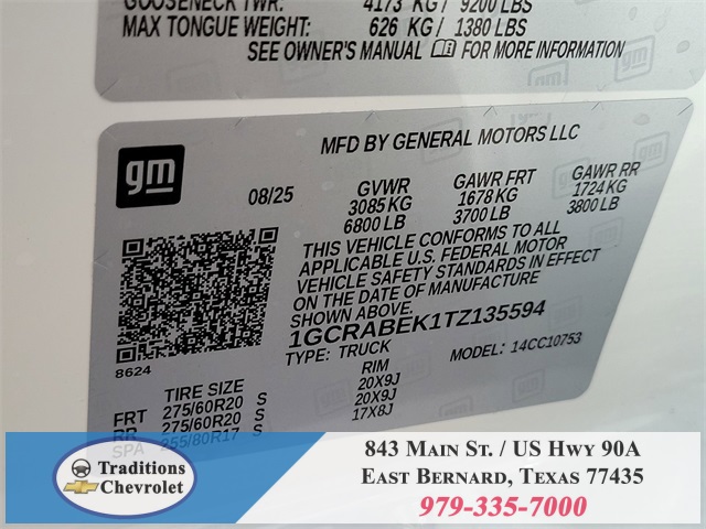 Custom Convenience Package (Electric Rear-Window Defogger, EZ Lift Power Lock & Release Tailgate, LED Cargo Area Lighting, Remote Vehicle Starter System, and Theft Deterrent System (Unauthorized Entry)), Custom Value Package, Preferred Equipment Group 1CX (10-Way Power Driver Seat w/Lumbar, 120-Volt Bed Mounted Power Outlet, 120-Volt Interior Power Outlet, 3.5" Monochromatic Display Driver Info Center, Bluetooth® For Phone, Color-Keyed Carpeting Floor Covering, Deep-Tinted Glass, Dual Rear USB Ports (Charge Only), Electronic Cruise Control, Front Frame-Mounted Black Recovery Hooks, Front Rubberized Vinyl Floor Mats, HD Rear Vision Camera, Manual Tilt Wheel Steering Column, OnStar Services Capable, Power Front Windows w/Driver Express Up/Down, Power Front Windows w/Passenger Express Down, Power Rear Windows w/Express Down, Rear 60/40 Folding Bench Seat (Folds Up), Rear Rubberized-Vinyl Floor Mats, Remote Keyless Entry, SiriusXM Trial Subscription, Standard Tailgate, Teen Driver, Tire Pressure Monitoring System, and Wi-Fi Hot Spot Capable), Trailering Package (Hitch Guidance), Dark Essentials Package (LPO) (Black Name Plates (LPO), Black Tailgate CHEVROLET Lettering (LPO), and Front Black Bowtie Emblem (LPO)), High Capacity Suspension Package, 8-Speed Automatic, Black Cloth, 3.42 Rear Axle Ratio, 4-Wheel Disc Brakes, 40/20/40 Front Split-Bench Seat, 6 Speakers, 6-Speaker Audio System, ABS brakes, Air Conditioning, Alloy wheels, AM/FM radio: SiriusXM, Apple CarPlay/Android Auto, Auto High-beam Headlights, Automatic Emergency Braking, Brake assist, Bumpers: body-color, Chevytec Spray-On Black Bedliner, Cloth Seat Trim, Compass, Delay-off headlights, Driver door bin, Driver vanity mirror, Dual front impact airbags, Dual front side impact airbags, Electronic Stability Control, Emergency communication system: OnStar, Following Distance Indicator, Forward Collision Alert, Front anti-roll bar, Front Center Armrest w/Storage, Front License Plate Kit, Front Pedestrian Braking, Front reading lights, Front wheel independent suspension, Fully automatic headlights, Heated door mirrors, Illuminated entry, IntelliBeam Automatic High Beam On/Off, Lane Keep Assist w/Lane Departure Warning, Low tire pressure warning, Occupant sensing airbag, Outside temperature display, Overhead airbag, Overhead console, Panic alarm, Passenger door bin, Passenger vanity mirror, Power door mirrors, Power driver seat, Power steering, Power windows, Premium audio system: Chevrolet Infotainment 3, Radio data system, Radio: Chevrolet Infotainment 3 System, Rear reading lights, Rear step bumper, Rear Wheelhouse Liners, Rear window defrost Tax, title, license and dealer fees (unless itemized above) are extra. Not available with special finance or lease offers. See Dealer for Details. Price includes: $1000 - Bonus Cash. Exp. 11/03/2025 $1750 - Customer Cash. Exp. 11/03/2