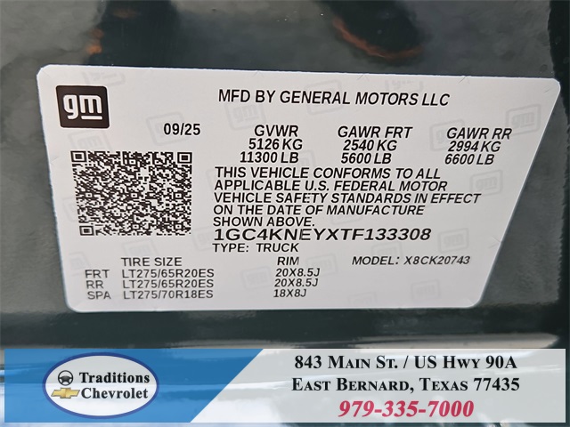 eat Package (Heated Driver & Front Outboard Passenger Seating and Heated Steering Wheel), Hitch Package (LPO), Leather Package, Preferred Equipment Group 1LT (120-Volt Bed Mounted Power Outlet, 120-Volt Interior Power Outlet, 170 Amp Alternator, 2-Speed Electronic Shift Transfer Case, 4-Way Manual Driver Seat Adjuster, Black Mirror Caps, Bluetooth® For Phone, Chevrolet Connected Access Capable, Color-Keyed Carpeting Floor Covering, Compass, Deep-Tinted Glass, Electronic Cruise Control w/Set & Resume Speed, EZ Lift Power Lock & Release Tailgate, Front Rubberized Vinyl Floor Mats, Halogen Reflector Headlamps, HD Rear Vision Camera, Heated Vertical Trailering Mirrors, Keyless Open & Start, OnStar Services Capable, Power Door Locks, Power Front Windows w/Driver Express Up/Down, Power Front Windows w/Passenger Express Down, Power Rear Windows w/Express Down, Push Button Start, Rear 60/40 Folding Bench Seat (Folds Up), Rear Rubberized Vinyl Floor Mats, SiriusXM w/360L Trial Subscription, Standard Tailgate, Steering Wheel Audio Controls, Wi-Fi Hotspot Capable, Wireless Phone Projection, and Wrapped Steering Wheel), Remote Start Package (Electric Rear-Window Defogger, Remote Vehicle Starter System, and Unauthorized Entry Theft-Deterrent System), Safety Package (Bed View Camera w/2 Trailer Camera Provisions, HD Surround Vision, Rear Cross Traffic Alert, Trailer Camera Provisions, Trailer Side Blind Zone Alert, and Ultrasonic Front & Rear Park Assist), Suspension Package, Trail Boss Package (Animated LED Projector Headlamps, Auto-Dimming Inside Rear-View Mirror, Black Grille Bar w/Chevy Black Bow Tie, Front Frame-Mounted Red Recovery Hooks, Heated & Auto-Dimming Vertical Trailering Mirrors, High Gloss Black Door Handles, High Gloss Black Mirror Caps, and Wheels: 20" High Gloss Black Painted), Up-Level Rear Seat w/Storage Package, Z71 Off-Road Package (Hill Descent Control and Off-Road Suspension), 10-Speed Automatic, 4WD, Black Leather, 17" Machined Aluminum Wheels, 220 Amp Alternator, 4-Wheel Disc Brakes, 6 Speakers, 6-Speaker Audio System, 6" Rectangular Chromed Tubular Assist Steps (LPO), 720 Cold-Cranking Amps Heavy-Duty Battery, ABS brakes, Air Conditioning, Alloy wheels, AM/FM radio: SiriusXM with 360L, Apple CarPlay/Android Auto, Auto High-beam Headlights, Body-Color Front Bumper, Body-Color Rear Bumper, Brake assist, Bumpers: chrome, Cloth Seat Trim, Delay-off headlights, Driver door bin, Driver vanity mirror, Dual front impact airbags, Dual front side impact airbags, Durabed Pickup Bed, Electronic Stability Control, Emergency communication system: OnStar, Engine Block Heater, Exhaust Brake, Front 40/20/40 Split-Bench Seats w/Lockable Storage, Front anti-roll bar, Front Center Armrest w/Storage, Front License Plate Kit, Front reading lights, Front wheel independent suspension, Fully automatic headlights, Heated door mirrors, Illuminated entry, LED Smoked Amber Roof Marker Lamps, Low tire pressure warning, Occupant sensing airbag, Outside temperature display, Overhead airbag, Overhead console, Panic alarm, Passenger door bin, Passenger vanity mirror, Power door mirrors, Power steering, Power windows, Premium audio system: Chevrolet Infotainment 3 Premium, Pwr Up/Down Tailgate Function w/Pwr Lock & Release, Radio: Chevrolet Infotainment 3 Prem Tax, title, license and dealer fees (unless itemized above) are extra. Not available with special finance or lease offers. See Dealer for Details. Price includes: $1000 - Customer Cash. Exp. 11/03/2