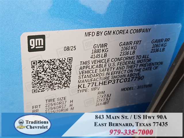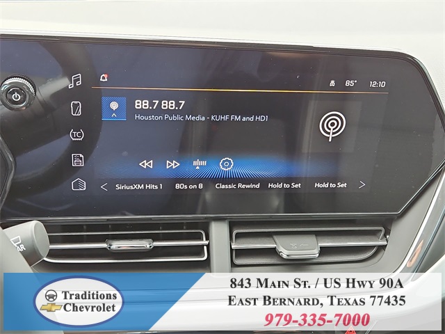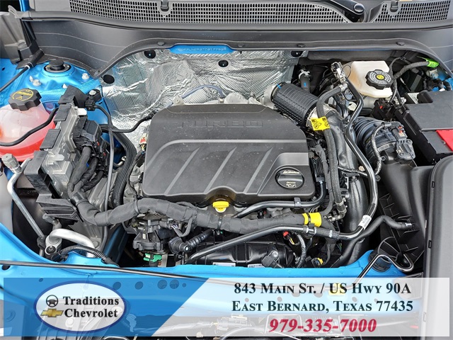uster, 4-Wheel Disc Brakes, 6 Speakers, 6-Speaker Audio System Feature, 6-Way Manual Driver Seat Adjuster, ABS brakes, Air Conditioning, Alloy wheels, AM/FM radio: SiriusXM, Auto High-beam Headlights, Automatic temperature control, Brake assist, Bumpers: body-color, Cloth/Evotex Seat Trim, Compass, Delay-off headlights, Driver door bin, Driver vanity mirror, Dual front impact airbags, Dual front side impact airbags, Electronic Stability Control, Emergency communication system: OnStar One Essentials, Exterior Parking Camera Rear, Front anti-roll bar, Front Bucket Seats, Front Center Armrest, Front reading lights, Front wheel independent suspension, Fully automatic headlights, Illuminated entry, Low tire pressure warning, Occupant sensing airbag, Outside temperature display, Overhead airbag, Overhead console, Panic alarm, Passenger door bin, Passenger vanity mirror, Power door mirrors, Power steering, Power windows, Premium audio system: Chevrolet Infotainment 3, Radio data system, Radio: AM/FM Stereo Audio System, Rear window defroster, Rear window wiper, Remote keyless entry, Security system, SiriusXM Trial Subscription, Speed control, Split folding rear seat, Spoiler, Steering wheel mounted audio controls, Tachometer, Telescoping steering wheel, Tilt steering wheel, Traction control, Trip computer, Variably intermittent wipers, Wheels: 17" Gray-Painted Machined Aluminum, and Wireless Apple CarPlay/Wireless Android Auto.