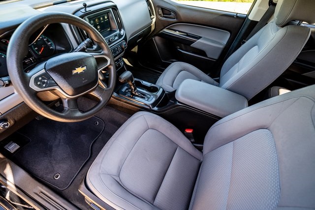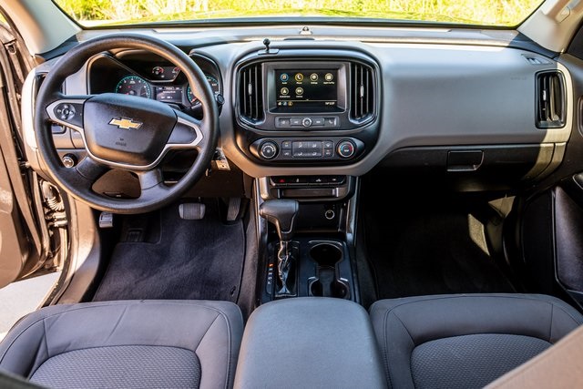 Colorado WT covers the truck basics and has a decent amount of equipment. It's offered only as an extended cab, and standard features include a 2.5-liter inline four-cylinder engine with 200 horsepower and 191 pound-feet of torque, 16-inch steel wheels, air conditioning, floor carpeting and cloth upholstery, fold up rear jump sets, a four-way power driver's seat with manual recline, front bucket seats, a tilt-only adjustable steering wheel, and power windows. You also get a rearview camera, a 7-inch infotainment system Apple CarPlay and Android Auto, two USB ports, and a six-speaker sound system.
