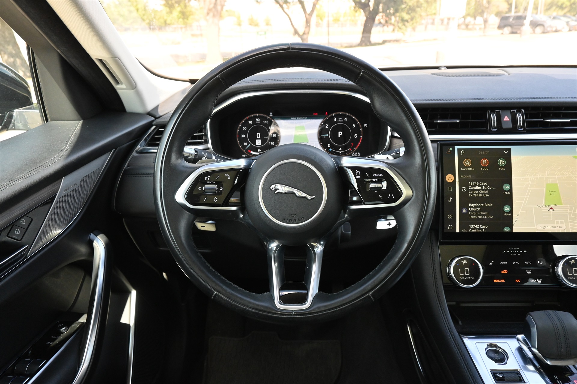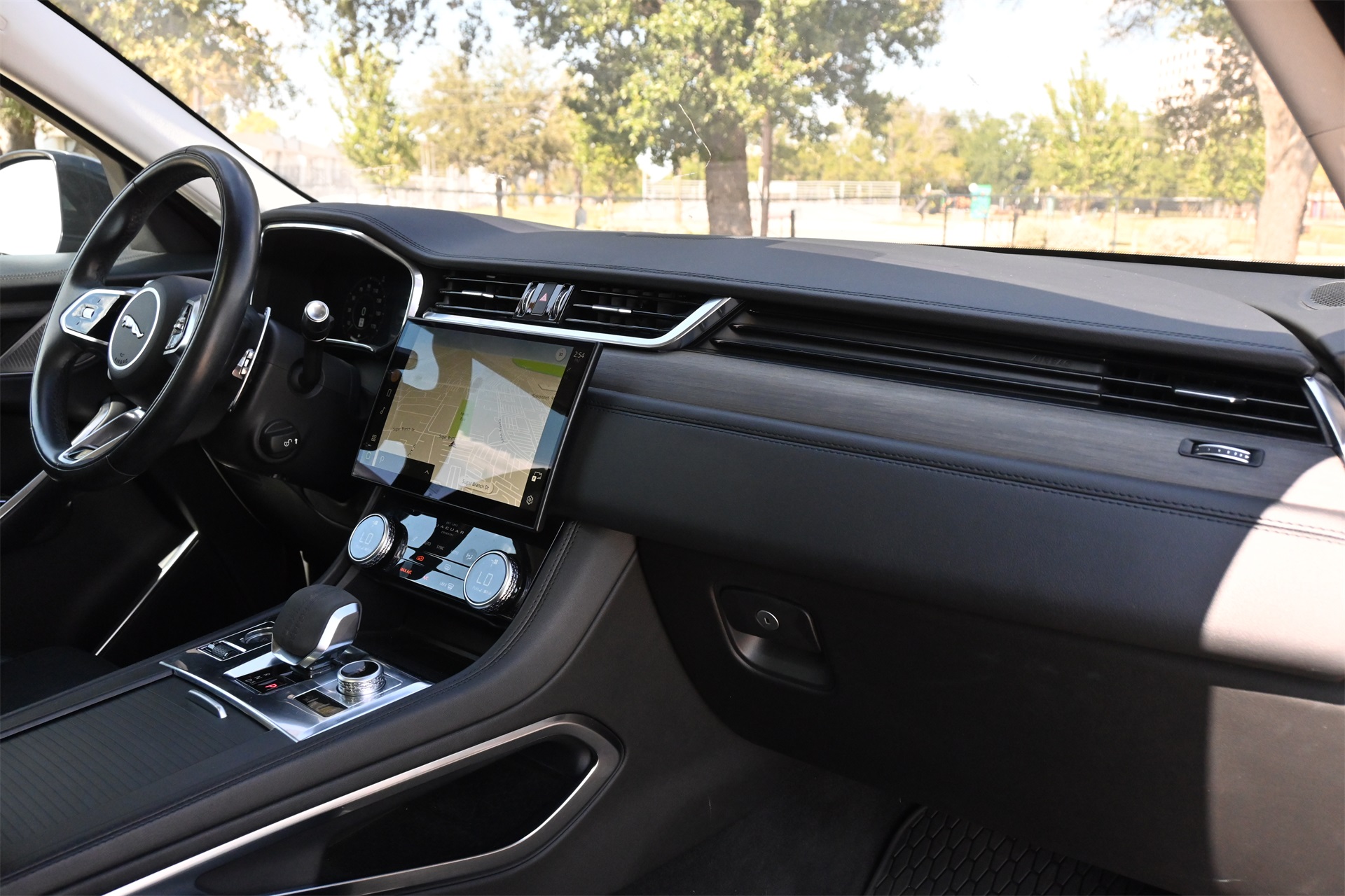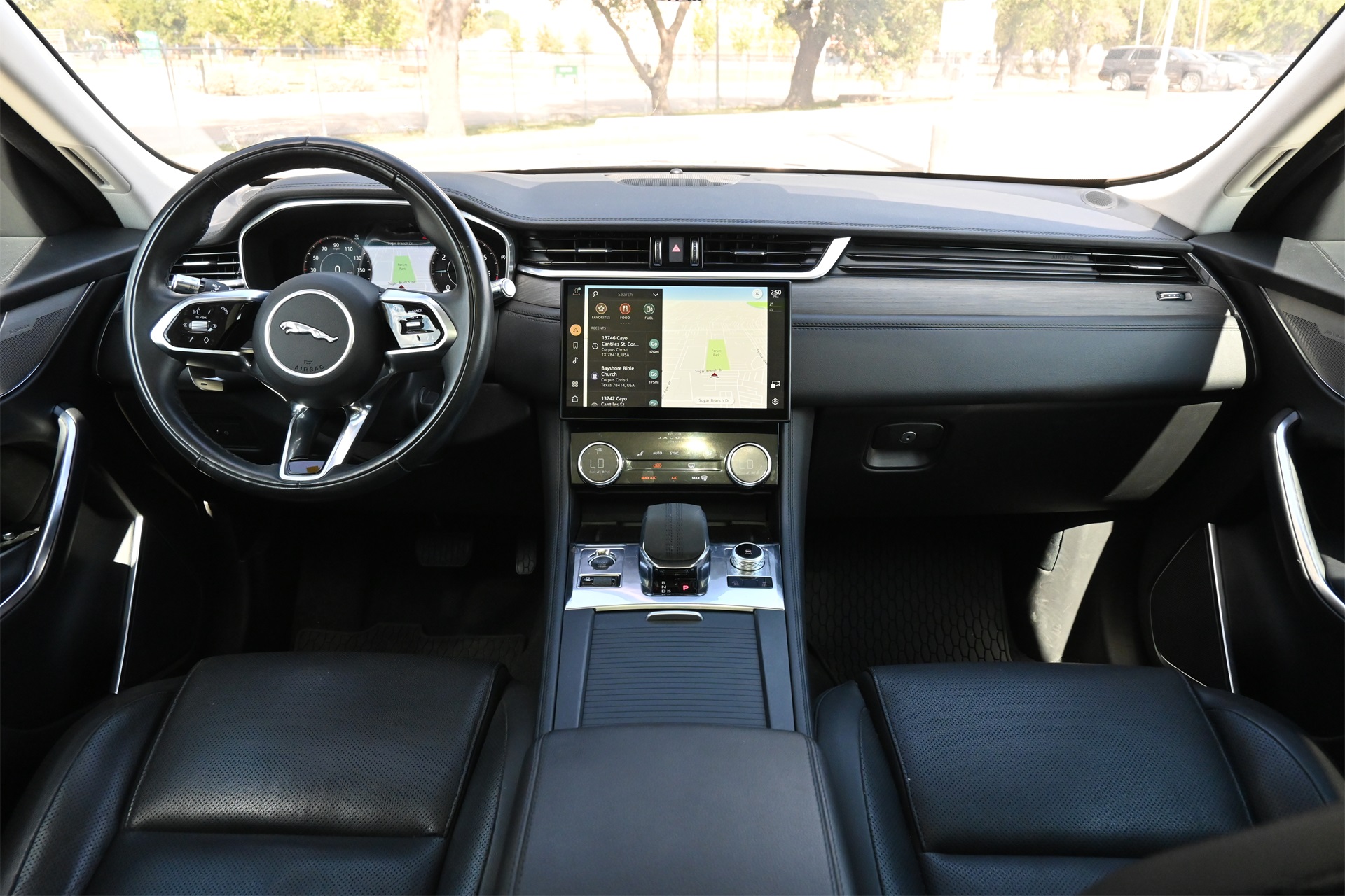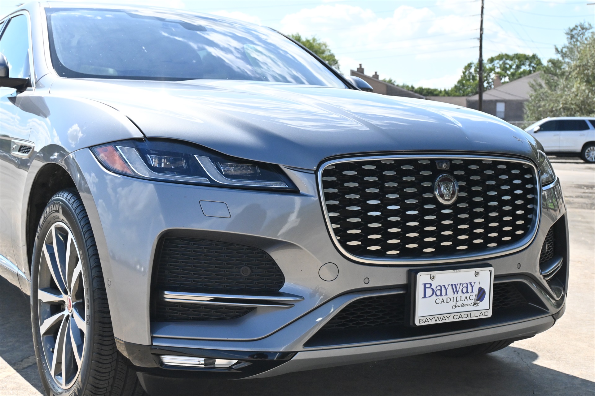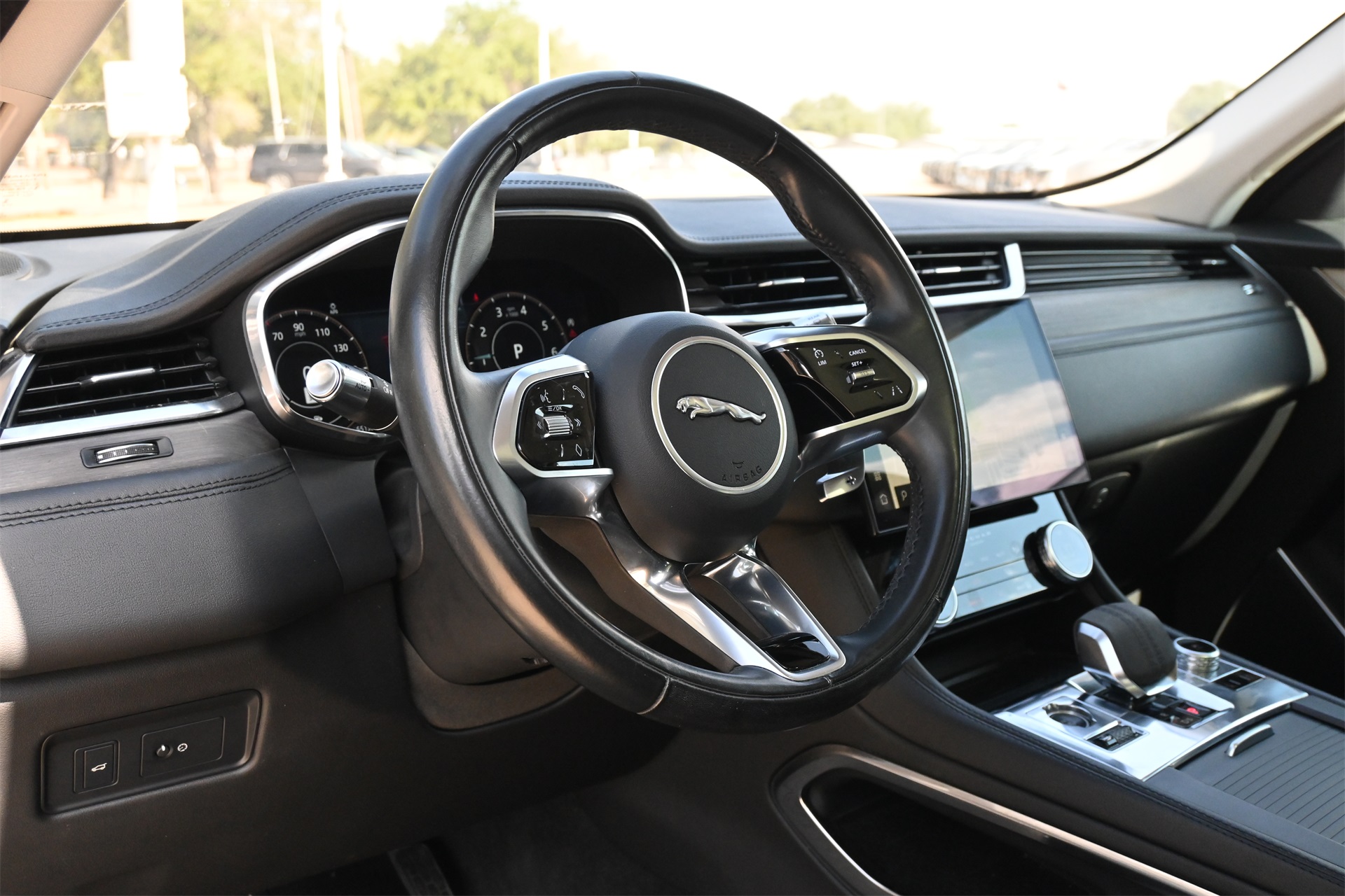 This 2021 Jaguar F-PACE P250 S is loaded with the following Factory Options:11 Speakers, 4-Wheel Disc Brakes, ABS brakes, Adaptive suspension, Air Conditioning, Alloy wheels, AM/FM radio: SiriusXM, Apple CarPlay/Android Auto, Auto High-beam Headlights, Auto-dimming door mirrors, Auto-dimming Rear-View mirror, Automatic temperature control, Axle Ratio: 3.73, Brake assist, Bumpers: body-color, Compass, Delay-off headlights, Driver door bin, Driver vanity mirror, Dual front impact airbags, Dual fro
