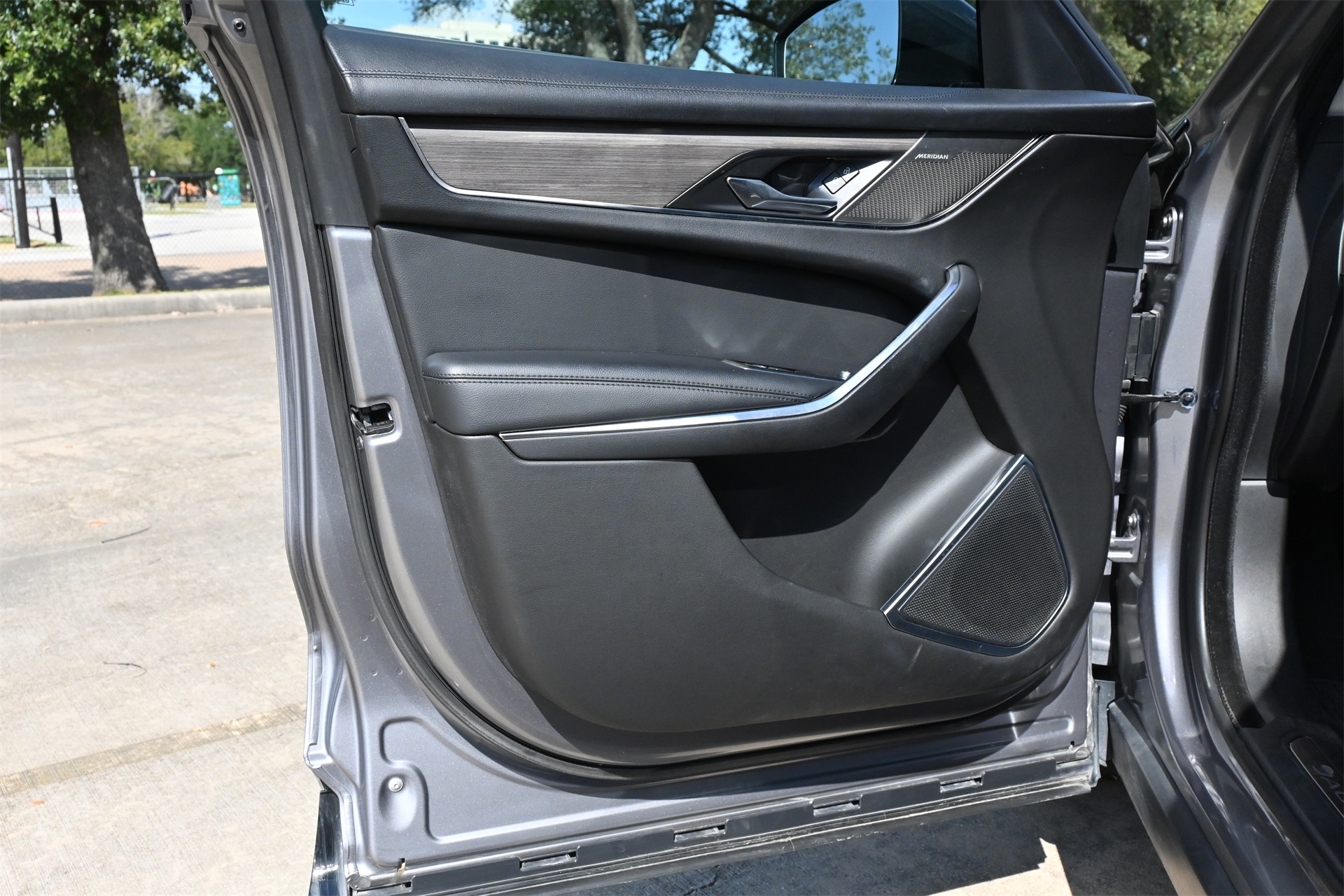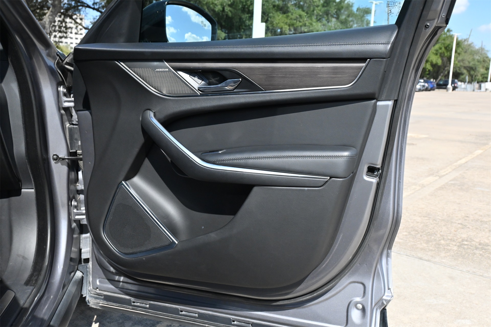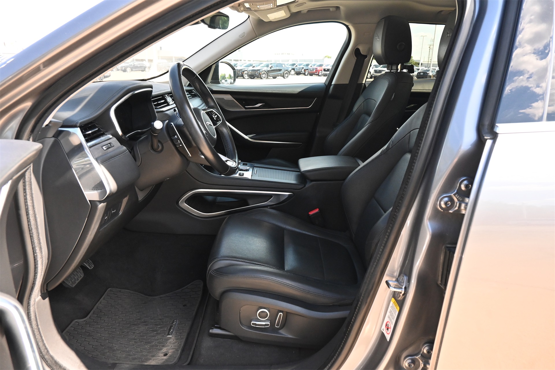 t side impact airbags, Electronic Stability Control, Emergency communication system: Remote SOS Emergency Call, Four wheel independent suspension, Front anti-roll bar, Front Bucket Seats, Front Center Armrest, Front dual zone A/C, Front reading lights, Fully automatic headlights, Garage door transmitter: HomeLink, Genuine wood dashboard insert, Genuine wood door panel insert, Grained Leather Seat Trim, Heated door mirrors, Heated Front Bucket Seats, Heated front seats, Illuminated entry, Leather Shift Knob, Leather steering wheel, Low tire pressure warning, Navigation system: InControl Navigation Pro, Occupant sensing airbag, Outside temperature display, Overhead airbag, Overhead console, Panic alarm, Passenger door bin, Passenger vanity mirror, Power door mirrors, Power driver seat, Power Liftgate, Power moonroof, Power passenger seat, Power steering, Power windows, Radio data system, Radio: Meridian 380W Sound System, Rain sensing wipers, Rear anti-roll bar, Rear fog lights, Rear reading lights, Rear seat center armrest, Rear window defroster, Rear window wiper, Remote keyless entry, Security system, Speed control, Speed-sensing steering, Split folding rear seat, Spoiler, Steering wheel mounted audio controls, Tachometer, Telescoping steering wheel, Tilt steering wheel, Traction control, Trip computer, Turn signal indicator mirrors, Variably intermittent wipers, Wheels: 19" 5 Split-Spoke Gloss Grey (Style 5038), and Wheels: 19" 5 Spoke Gloss Black (Style 5103) Eiger Gray AWD 8-Speed Automatic 2.0L I4 Turbocharged CARFAX 1-Owner, Clean CARFAX!, Non-Smoker, Local Trade, Bluetooth, Apple Carplay / Android Auto, Heated Seats, Cooled Seats.
