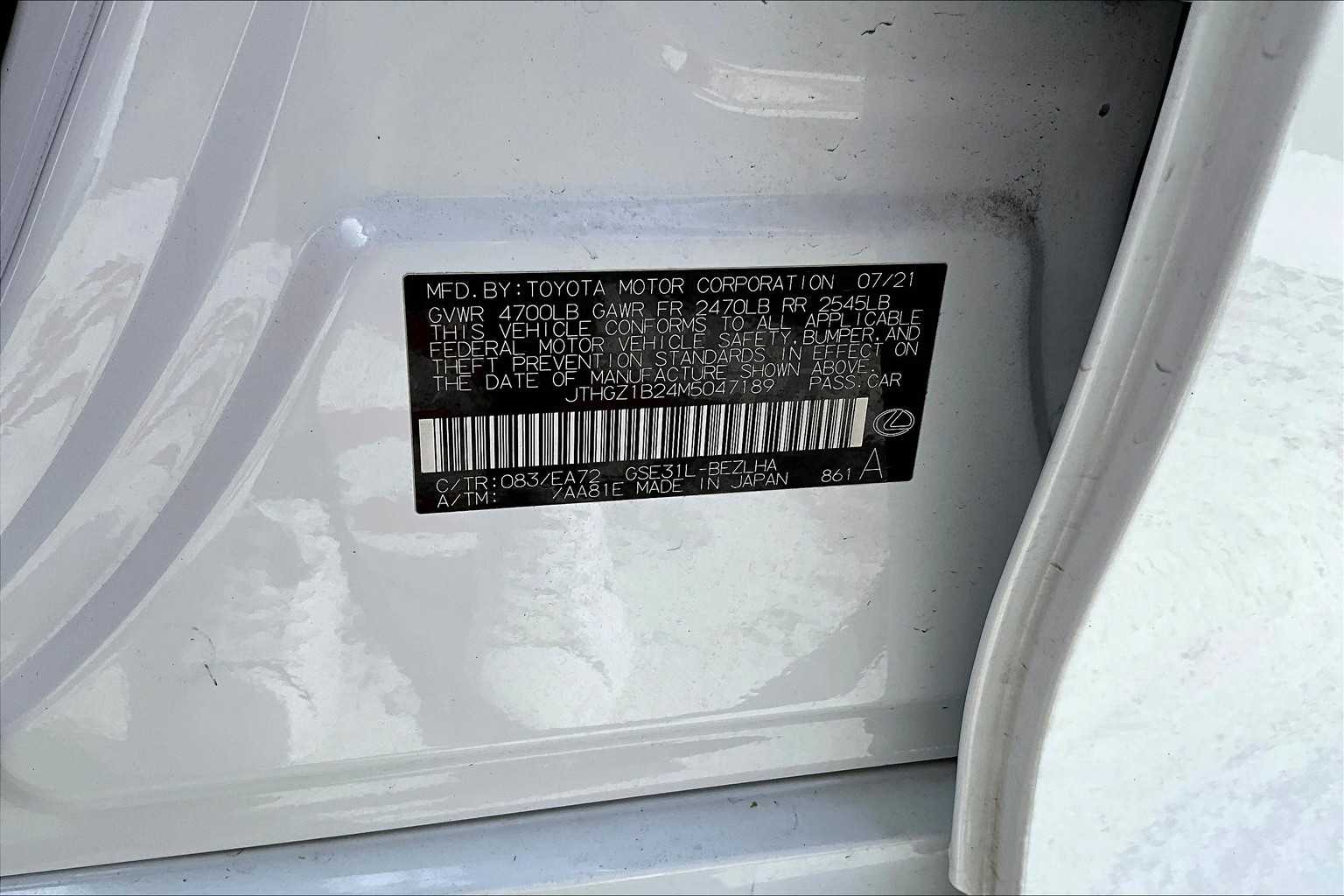 JTHGZ1B24M5047189Stock #