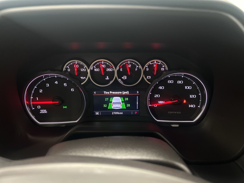 M/FM radio, Apple CarPlay/Android Auto, Automatic temperature control, Brake assist, Bumpers: body-color, Compass, Delay-off headlights, Driver & Front Outboard Passenger Airbags, Driver door bin, Driver vanity mirror, Dual front impact airbags, Dual front side impact airbags, Electronic Stability Control, Emergency communication system: OnStar and Chevrolet connected services capable, Extra Capacity Cooling System, Floor Console w/Storage Area, Four wheel independent suspension, Front 40/20/40 Split-Bench Seat, Front anti-roll bar, Front Center Armrest, Front dual zone A/C, Front High-Back Reclining Bucket Seats, Front reading lights, Fully automatic headlights, Heated door mirrors, Illuminated entry, Infotainment Display, Low tire pressure warning, Not Equipped w/Front & Rear Park Assist, Not Equipped w/Steering Column Lock, Occupant sensing airbag, Outside temperature display, Overhead airbag, Overhead console, Panic alarm, Passenger door bin, Passenger vanity mirror, Power door mirrors, Power driver seat, Power passenger seat, Power steering, Power windows, Premium audio system: Chevrolet Infotainment System 3, Premium Cloth Seat Trim, Premium Smooth Ride Suspension, Radio: Chevrolet Infotainment 3 System, Rain sensing wipers, Rear air conditioning, Rear anti-roll bar, Rear reading lights, Rear seat center armrest, Rear window defroster, Rear window wiper, Remote keyless entry, Remote Start, Roof rack: rails only, Security system, Speed control, Speed-sensing steering, Split folding rear seat, Spoiler, Steering wheel mounted audio controls, Tachometer, Telescoping steering wheel, Tilt steering wheel, Traction control, Trip computer, Variably intermittent wipers, Voltmeter, and Wheels: 18" x 8.5" Bright Silver Painted Aluminum.