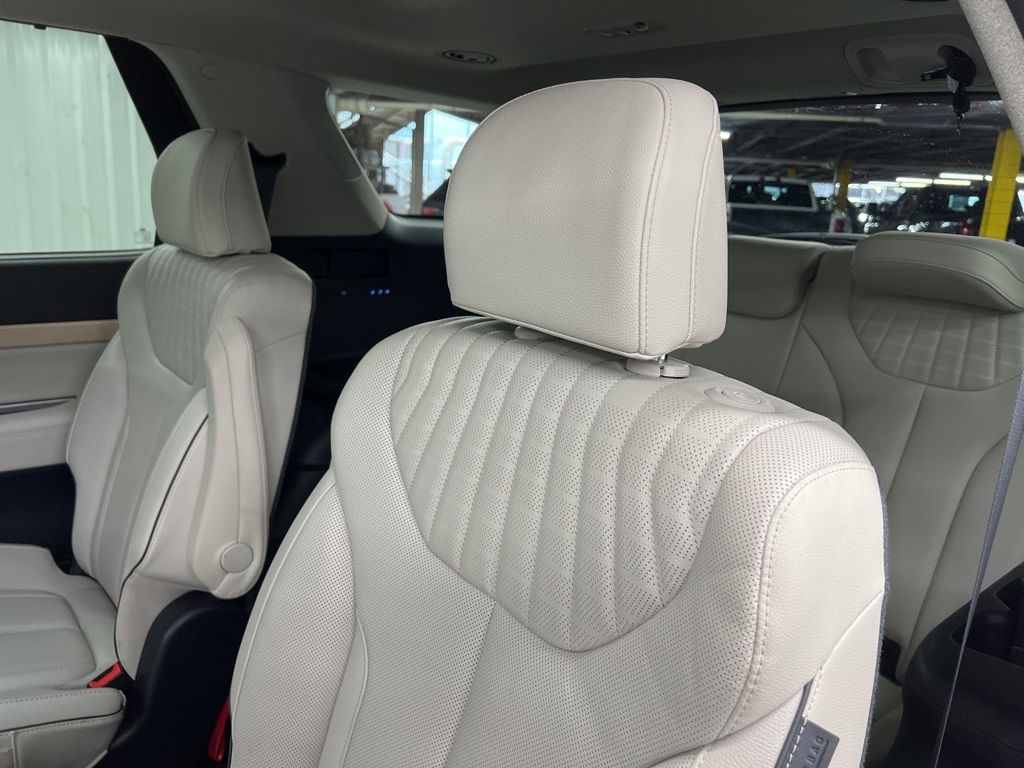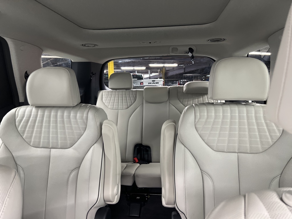 s, Delay-off headlights, Driver door bin, Driver vanity mirror, Dual front impact airbags, Dual front side impact airbags, Electronic Stability Control, Emergency communication system, Exterior Parking Camera Rear, Four wheel independent suspension, Front anti-roll bar, Front Bucket Seats, Front Center Armrest, Front dual zone A/C, Front reading lights, Fully automatic headlights, Garage door transmitter: HomeLink, harman/kardon® Speakers, Heads-Up Display, Heated & Ventilated Front Bucket Seats, Heated door mirrors, Heated front seats, Heated rear seats, Heated steering wheel, Illuminated entry, Knee airbag, Leather Seat Trim, Low tire pressure warning, Memory seat, Navigation System, Occupant sensing airbag, Outside temperature display, Overhead airbag, Overhead console, Panic alarm, Passenger door bin, Passenger vanity mirror, Power door mirrors, Power driver seat, Power Liftgate, Power moonroof, Power passenger seat, Power steering, Power windows, Radio data system, Radio: AM/FM/MP3 Premium Audio System, Rain sensing wipers, Rear air conditioning, Rear anti-roll bar, Rear audio controls, Rear reading lights, Rear side impact airbag, Rear window defroster, Rear window wiper, Reclining 3rd row seat, Remote keyless entry, Security system, Speed control, Speed-sensing steering, Split folding rear seat, Spoiler, Steering wheel mounted audio controls, Tachometer, Telescoping steering wheel, Tilt steering wheel, Traction control, Trip computer, Turn signal indicator mirrors, Variably intermittent wipers, Ventilated front seats, Ventilated rear seats, and Wheels: 20" x 7.5J Alloy.