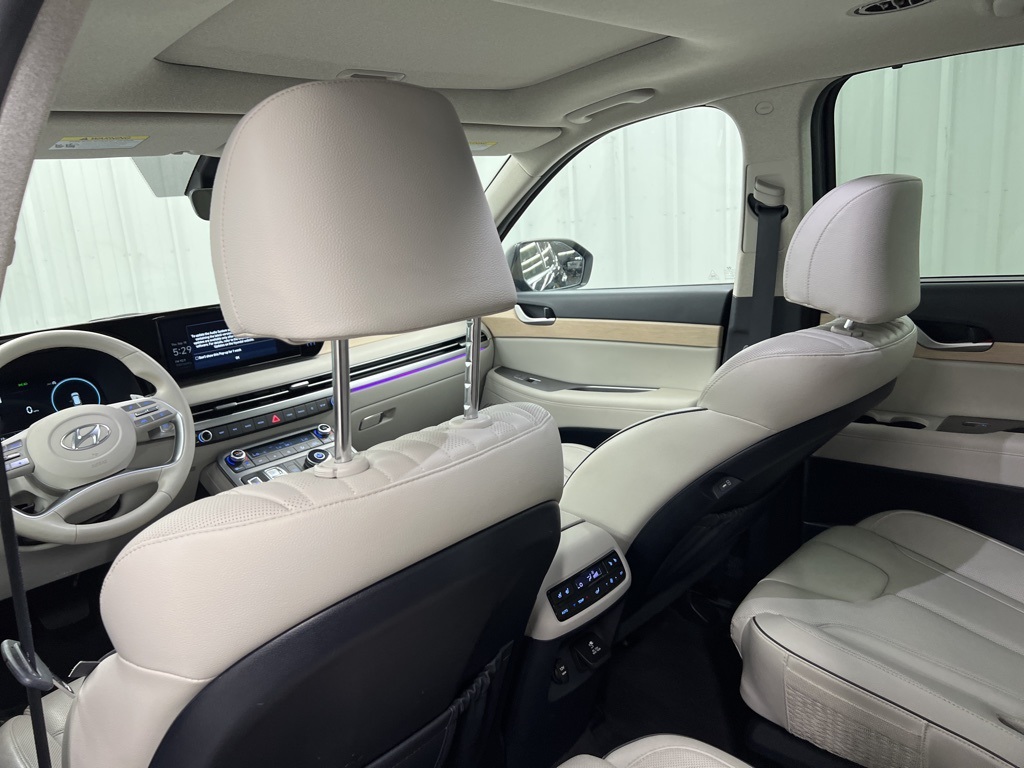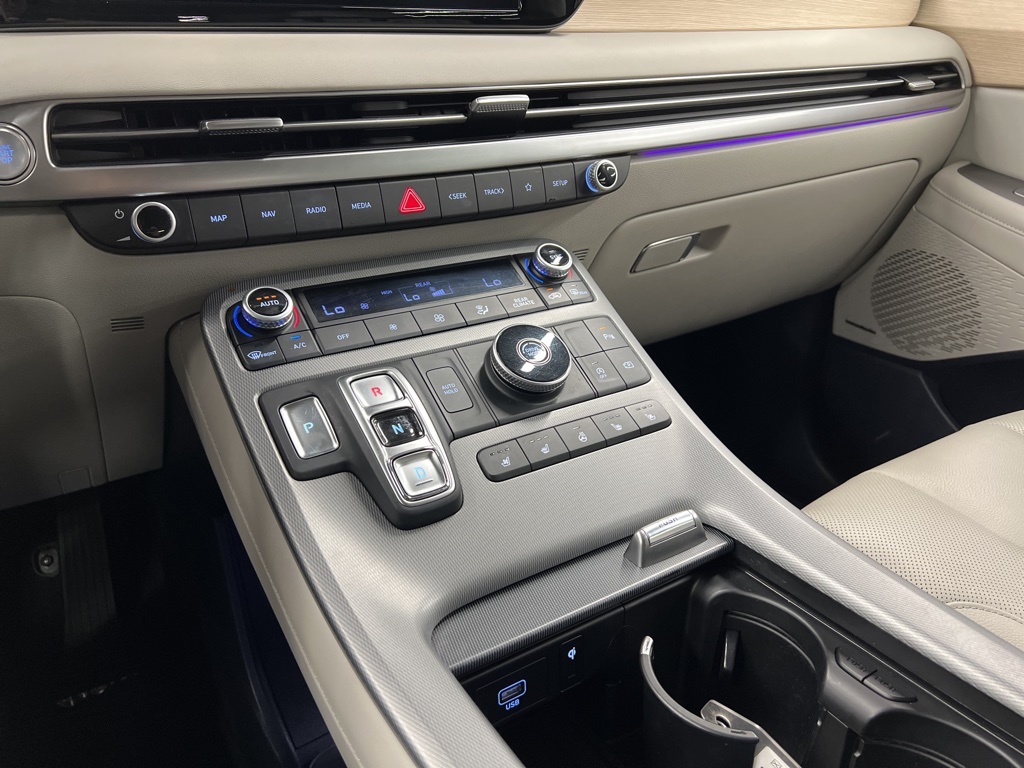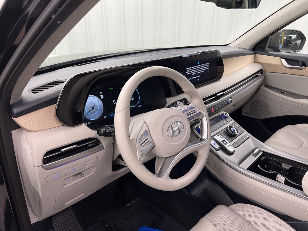 This 2024 Hyundai Palisade Limited in Moonlight comes with the following features: V6 8-Speed Automatic with SHIFTRONIC FWD Option Group 01, 12 Speakers, 3.510 Axle Ratio, 3rd row seats: split-bench, 4-Wheel Disc Brakes, ABS brakes, Air Conditioning, Alloy wheels, AM/FM radio: SiriusXM, Apple CarPlay & Android Auto, Auto High-beam Headlights, Auto-dimming door mirrors, Auto-dimming Rear-View mirror, Auto-leveling suspension, Automatic temperature control, Brake assist, Bumpers: body-color, Compa