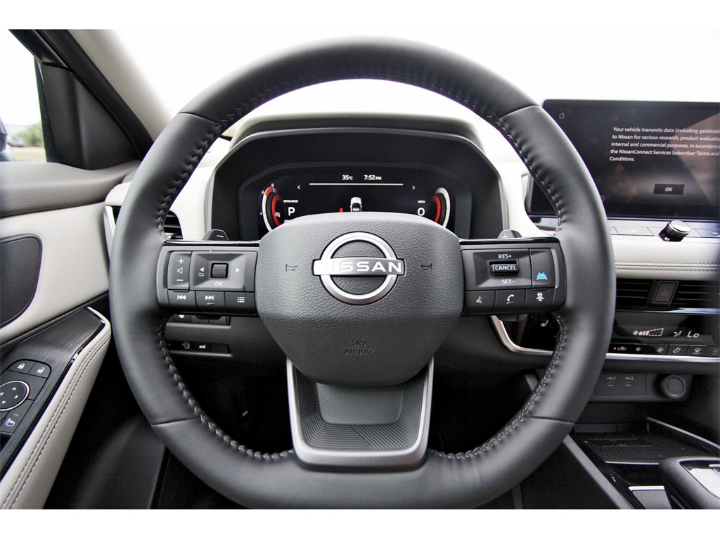 ront impact airbags, Dual front side impact airbags, Electronic Stability Control, Emergency communication system: NissanConnect Services, First Aid Kit, Floor Mats w/2-Piece Cargo Area Protector, Four wheel independent suspension, Front anti-roll bar, Front Bucket Seats, Front Center Armrest, Front dual zone A/C, Front reading lights, Fully automatic headlights, Garage door transmitter: myQ Connected Garage, Heated door mirrors, Heated Front Bucket Seats, Heated front seats, Heated steering wheel, Illuminated entry, Knee airbag, Leather-Appointed Seat Trim, Low tire pressure warning, Navigation system: Google Maps, Occupant sensing airbag, Outside temperature display, Overhead airbag, Overhead console, Panic alarm, Passenger door bin, Passenger vanity mirror, Power door mirrors, Power driver seat, Power Liftgate, Power passenger seat, Power steering, Power windows, Radio data system, Radio: AM/FM NissanConnect w/Navigation, Rear anti-roll bar, Rear seat center armrest, Rear side impact airbag, Rear window defroster, Rear window wiper, Remote keyless entry, Security system, Speed control, Speed-sensing steering, Speed-Sensitive Wipers, Split folding rear seat, Spoiler, Steering wheel mounted audio controls, Tachometer, Telescoping steering wheel, Tilt steering wheel, Traction control, Trip computer, Turn signal indicator mirrors, USB Charging Cable Set - Nissan, Variably intermittent wipers, Wheels: 19" Dark Painted Machine Finished Alloy, and Wireless Apple CarPlay/Wireless Android Auto!!