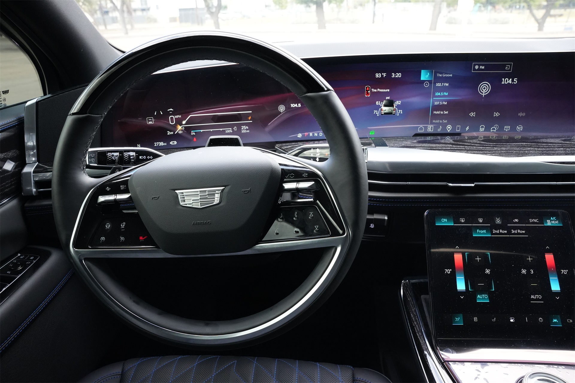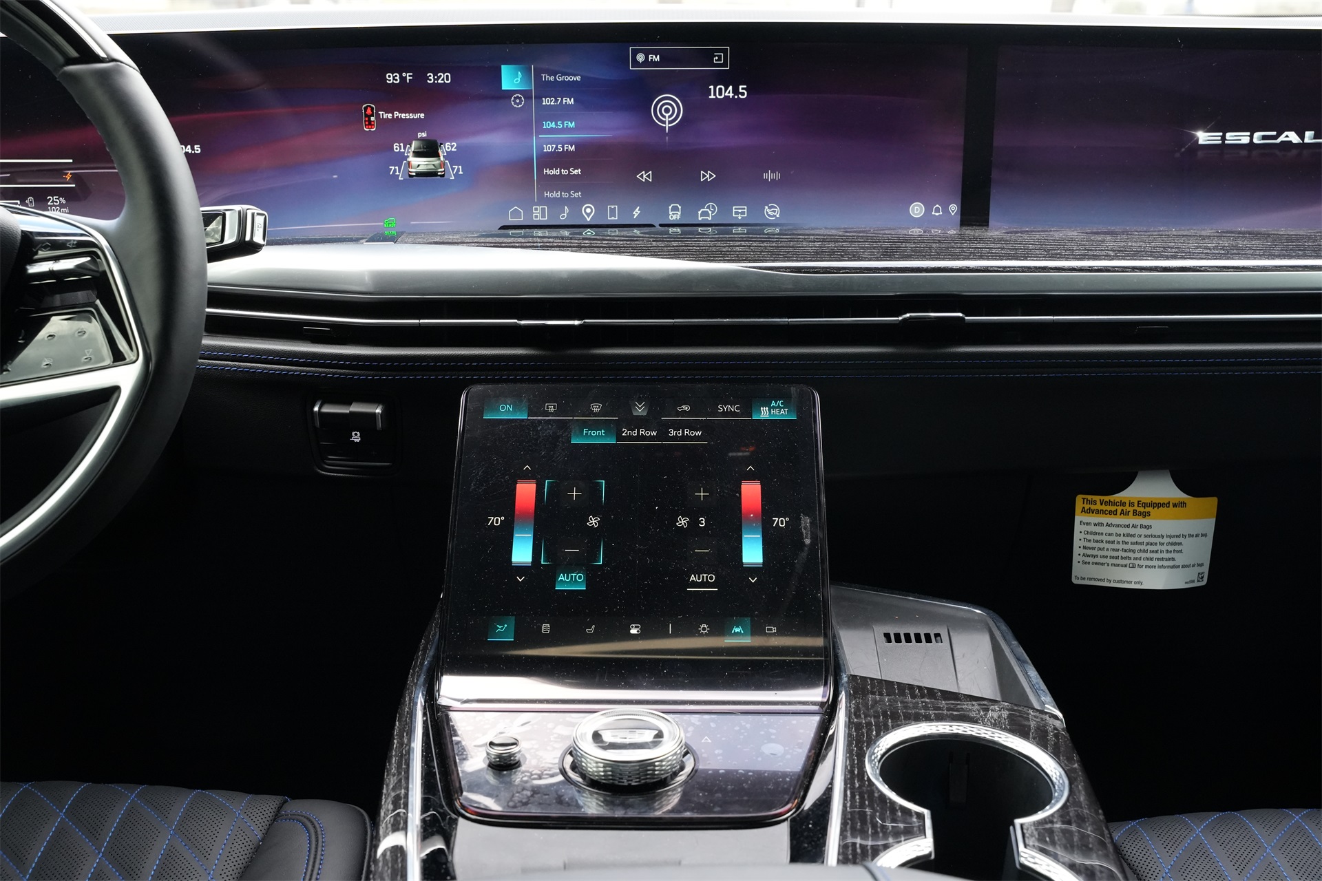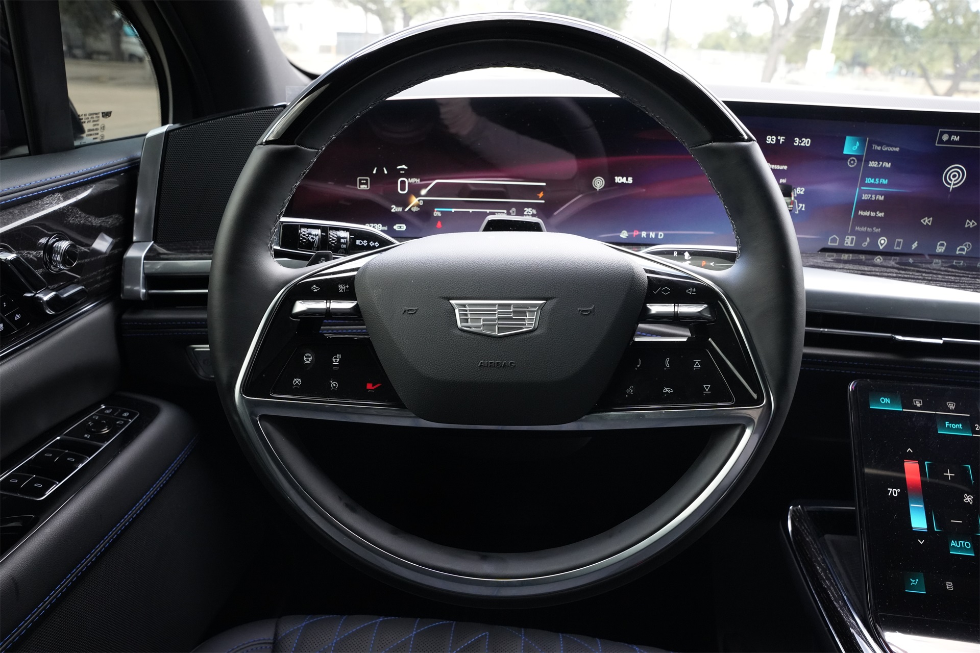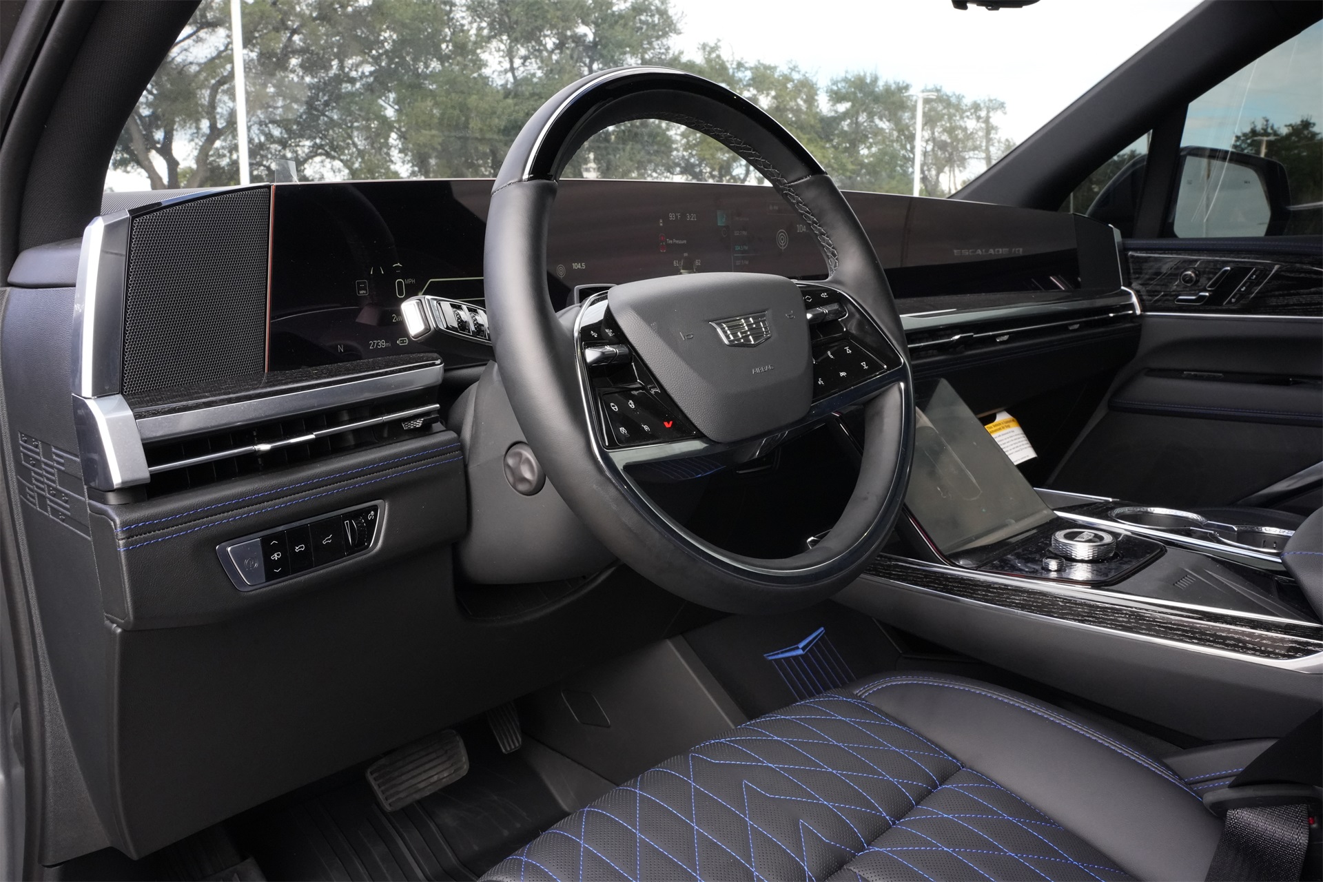 uspension, Air Conditioning, AKG Studio 21-Speaker Audio System, Alloy wheels, AM/FM radio: SiriusXM with 360L, Audio memory, Auto High-beam Headlights, Auto-dimming door mirrors, Auto-dimming Rear-View mirror, Auto-leveling suspension, Automatic temperature control, Black Roof, Bluetooth Headphones By AKG (LPO), Brake assist, Bumpers: body-color, Compass, Delay-off headlights, Driver door bin, Driver Memory, Driver vanity mirror, Dual front impact airbags, Dual front side impact airbags, Electronic Stability Control, Emergency communication system: OnStar and Cadillac connected services capable, Four wheel independent suspension, Front anti-roll bar, Front Bucket Seats, Front Center Armrest, Front dual zone A/C, Front License Plate Bracket, Front reading lights, Fully automatic headlights, Garage door transmitter, Google Built-In, Heads-Up Display, Heated door mirrors, Heated Driver & Front Passenger Seats, Heated front seats, Heated rear seats, Heated steering wheel, HVAC memory, Illuminated entry, Inteluxe Seat Trim, Knee airbag, Low tire pressure warning, Magnetic Ride Control Suspension, Memory seat, Navigation system: Google Automotive Services Capable, Occupant sensing airbag, Outside temperature display, Overhead airbag, Overhead console, Panic alarm, Passenger door bin, Passenger vanity mirror, Power door mirrors, Power driver seat, Power Liftgate, Power passenger seat, Power steering, Power windows, Radio data system, Radio: Infotainment Experience, Rain sensing wipers, Rear air conditioning, Rear anti-roll bar, Rear dual zone A/C, Rear reading lights, Rear Seat Entertainment System, Rear window defroster, Rear window wiper, Reconfigurable Full-Color Head-Up Display, Remote keyless entry, Security system, SiriusXM w/360L Trial Subscription, Speed control, Speed-sensing steering, Split folding rear seat, Spoiler, Steering wheel mounted audio controls, Telescoping steering wheel, Tilt steering wheel, Traction control, Trip computer, Turn signal indicator mirrors, Variably intermittent wipers, Ventilated front seats, Wheels: 22" 10-Spoke Alloy w/Mask & Polish, and Wheels: 24" 7-Spoke Diamond Cut Face Alloy. Magnus Metal Frost AWD 1-Speed Automatic Electric ZEV 680hp CARFAX 1-Owner, Clean CARFAX!, Non-Smoker, Local Trade, Low Miles, Intelligent Cruise Control, Bluetooth, Apple Carplay / Android Auto, Heated Seats, Cooled Seats, Blackout Package.