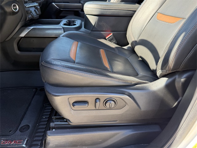 orts, 3.42 Axle Ratio, 4-Wheel Disc Brakes, 4.2" Diagonal Color Display Driver Info Center, 6-Speaker Audio System Feature, 8" Driver Information Center, ABS brakes, AM/FM radio: SiriusXM with 360L, Apple CarPlay/Android Auto, AT4 Preferred Package, AT4 Premium Plus Package, Auto-dimming door mirrors, Automatic Emergency Braking, Automatic temperature control, Bed View Camera w/2 Trailer Camera Provisions, Bose Premium 7 Speaker Sound System, Brake assist, Bumpers: body-color, Compass Located In Instrument Cluster, Deep-Tinted Glass, Delay-off headlights, Driver Alert Package I, Driver Alert Package II, Driver Memory, Dual front impact airbags, Dual front side impact airbags, Electric Rear-Window Defogger, Electrical Lock Control Steering Column, Electronic Stability Control, Emergency communication system: OnStar and GMC Connected Services capable, Engine Block Heater, Exhaust Brake, Floor-Mounted Center Console, Following Distance Indicator, Forward Collision Alert, Front anti-roll bar, Front Bucket Seats, Front Center Armrest, Front dual zone A/C, Front fog lights, Front License Plate Kit, Front Prem Floor Liners w/Removable Carpet Insert, Front wheel independent suspension, Fully automatic headlights, GMC Connected Access Capable, HD Rear Vision Camera, HD Surround Vision w/2 Trailer View Camera Provisions, Heated & Ventilated Front Bucket Seats, Heated door mirrors, Heated Driver & Front Outboard Passenger Seats, Heated front seats, Heated steering wheel, Heavy-Duty 80 Amp Battery, Hill Descent Control, Hitch Guidance w/Hitch View, Illuminated entry, In-Vehicle Trailering System App, Inside Rearview Auto-Dimming Rear Camera Mirror, Integrated Trailer Brake Controller, IntelliBeam Automatic High Beam On/Off, Keyless Open & Start, Lane Change Alert w/Side Blind Zone Alert, Lane Departure Warning System, LED Cargo Area Lighting, LED Smoked Amber Roof Marker Lamps, Low tire pressure warning, Manual Tilt-Wheel/Telescoping Steering Column, Memory seat, Multicolor 15" Diagonal Head-Up Display, Occupant sensing airbag, Off-Road High Clearance Step (LPO), Off-Road Suspension, OnStar & GMC Connected Services Capable, Overhead airbag, Overhead console, Painted Black Surround Grille, Panic alarm, Passenger door bin, Perforated Leather-Appointed Front Seat Trim, Perimeter Lighting, Pickup Box, Power Door Locks, Power door mirrors, Power driver seat, Power Front Passenger Windows w/Express Up/Down, Power passenger seat, Power Rear Windows w/Express Down, Power Sliding Rear Window w/Defogger, Power Sunroof, Power Windows w/Driver Express Up/Down, Preferred Equipment Group 4SB, Radio: AM/FM w/Prem GMC Infotainment System & Navi, Rear Cross Traffic Alert, Rear Prem Floor Liners w/Removable Carpet Insert, Rear reading lights, Rear seat center armrest, Rear step bumper, Rear Wheelhouse Liners, Red Recovery Hooks, Remote keyless entry, Remote Vehicle Starter System, Safety Alert Seat, Security system, SiriusXM w/360L, Speed control, Speed-sensing steering, Split folding rear seat, Spray-On Pickup Box Bed Liner w/AT4 Logo, Steering Wheel Audio Controls, Steering wheel mounted audio controls, Technology Package, Telescoping steering wheel, Tilt steering wheel, Traction control, Turn signal indicator mirrors, Ultrasonic Front & Rear Park Assist, Unauthorized Entry Theft-Deterrent System, Universal Home Remote, Variably intermittent wipers, Ventilated front seats, Wi-Fi Hotspot Capable, Winter Grille Cover, Wireless Charging, Wireless Phone Projection, X