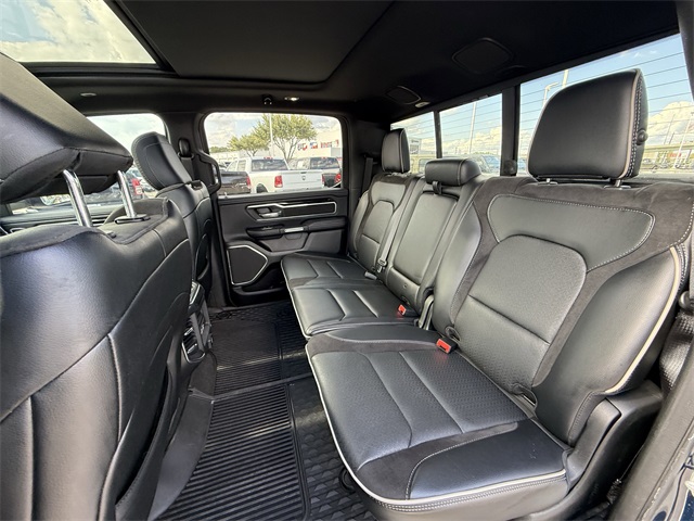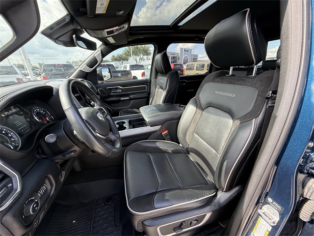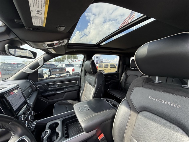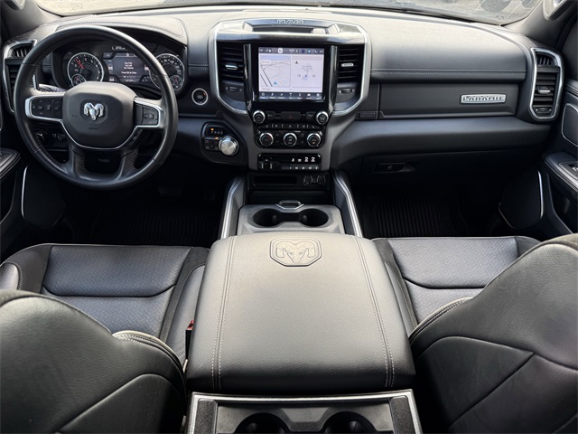 les, AM/FM radio: SiriusXM, Anti-Spin Differential Rear Axle, Apple CarPlay/Android Auto, Audio memory, Auto High Beam Headlamp Control, Auto-dimming door mirrors, Auto-Dimming Exterior Driver Mirror, Auto-dimming Rear-View mirror, Automatic temperature control, Bed Utility Group, Black Interior Accents, Blind Spot & Cross Path Detection, Body Color Door Handles, Body Color Exterior Mirrors, Body Color Front Bumper, Body Color Premium Power Mirrors, Body Color Rear Bumper w/Step Pads, Brake assist, Bucket Seats, Bumpers: chrome, Chrome Exterior Mirrors, Connected Travel & Traffic Services, Connectivity - US/Canada, Convex Wide-Angle Mirror Insert, Delay-off headlights, Delete LED Lamp - Floor Console Bin, Disassociated Touchscreen Display, Dome Dual LED Reading Lamp, Driver Seat Memory, Driver vanity mirror, Dual front impact airbags, Dual front side impact airbags, Dual-Pane Panoramic Sunroof, Electronic Stability Control, Exterior Mirrors Courtesy Lamps, Exterior Mirrors w/Heating Element, Exterior Mirrors w/Memory, Exterior Mirrors w/Supplemental Signals, Foam Bottle Insert (Door Trim Panel), For Details, Visit DriveUconnect.com, For More Info, Call 800-643-2112, Front anti-roll bar, Front Center Armrest w/Storage, Front dual zone A/C, Front fog lights, Front reading lights, Front Seat Back Map Pockets, Front wheel independent suspension, Full Length Upgraded Floor Console, Fully automatic headlights, Garage door transmitter, Global Telematics Box Module (TBM), Google Android Auto, GPS Antenna Input, GPS Navigation, Grille Surround 3 Body Color Tex 2 Black, harman/kardon 19 Speaker Premium Sound, HD Radio, Heated door mirrors, Heated Front Seats, Heated front seats, Heated Steering Wheel, Heated steering wheel, Heavy-Duty Engine Cooling, Illuminated entry, Integrated Center Stack Radio, Integrated Voice Command w/Bluetooth, Laramie Level II Equipment Group, Leather Trimmed Bucket Seats, LED Dome/Reading Lamp, Low tire pressure warning, Memory seat, MOPAR 4 Adjustable Cargo Tie-Down Hooks, MOPAR Spray In Bedliner, Occupant sensing airbag, Outside temperature display, Overhead airbag, Overhead console, Panic alarm, ParkSense Front/Rear Park Assist w/Stop, ParkView Rear Back-Up Camera, Passenger vanity mirror, Pedal memory, Pick-Up Box Lighting, Power 2-Way Driver Lumbar Adjust, Power 2-Way Passenger Lumbar Adjust, Power 8-Way Driver & Passenger Seats, Power door mirrors, Power driver seat, Power passenger seat, Power steering, Power windows, Power-Folding Mirrors, Quick Order Package 25H Laramie, Radio: Uconnect 5 Nav w/8.4" Display, Rain Sensitive Windshield Wipers, Rear 60/40 Folding Seat, Rear anti-roll bar, Rear step bumper, Rear Wheelhouse Liners, Remote keyless entry, Remote Tailgate Release, Security system, SiriusXM Radio Service, SiriusXM w/360L, Speed control, Split folding rear seat, Sport Appearance Package, Sport Decal, Sport Performance Hood, Steering wheel mounted audio controls, Telescoping steering wheel, Tilt steering wheel, Traction control, Trailer Brake Control, Turn signal indicator mirrors, Twill Film Appliques, USB Host Flip, Variably intermittent wipers, Ventilated Front Seats, Ventilated front seats, Wheels: 20" x 9" Premium Painted w/Inserts, Wireless Charging Pad. CARFAX One-Owner. Priced below KBB Fair Purchase Price!