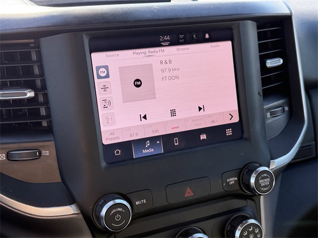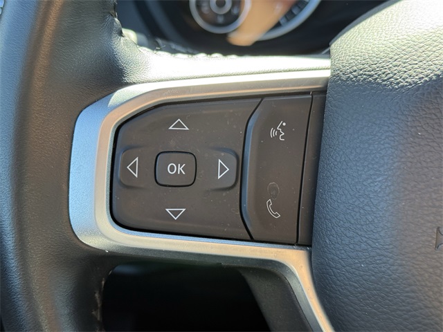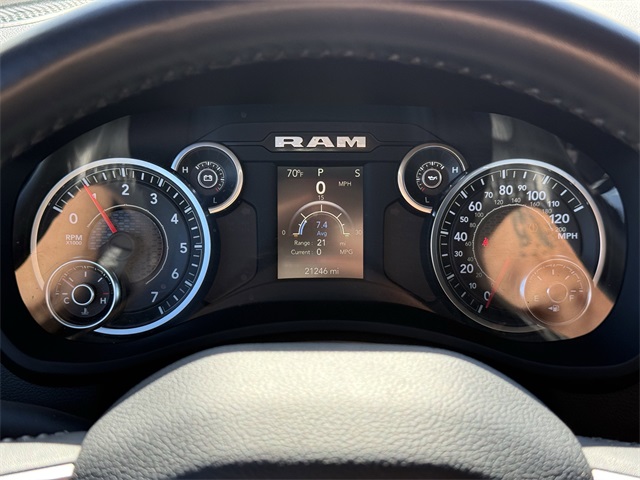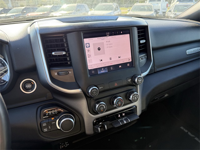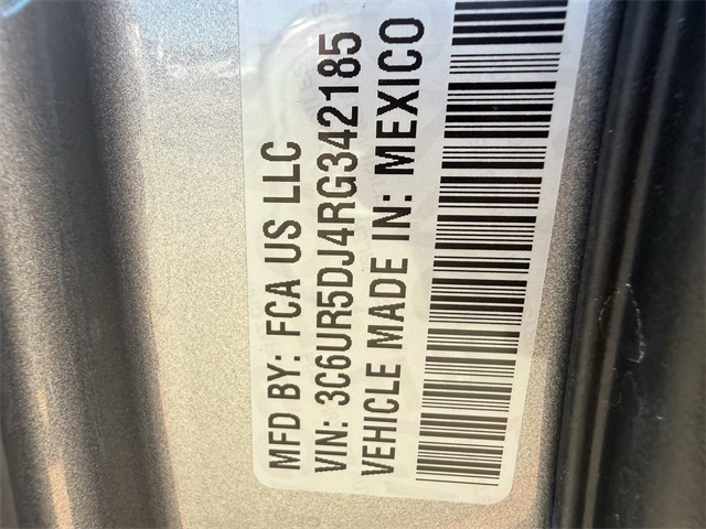 iver door bin, Dual front impact airbags, Dual front side impact airbags, Electronic Stability Control, Electronically Controlled Throttle, Emergency communication system: SiriusXM Guardian, Exterior Mirrors w/Heating Element, Front anti-roll bar, Front Armrest w/Cupholders, Front Fog Lamps, Front License Plate Bracket, Front reading lights, Fully automatic headlights, Global Telematics Box Module (TBM), GPS Antenna Input, Heated door mirrors, Illuminated entry, Integrated Center Stack Radio, Integrated Voice Command w/Bluetooth, LED Bed Lighting, Low tire pressure warning, Manual Adjust 4-Way Driver Seat, Manual Adjust 4-Way Front Passenger Seat, MOPAR Deployable Bed Step, MOPAR Spray In Bedliner, Occupant sensing airbag, Overhead airbag, Overhead console, Panic alarm, ParkView Rear Back-Up Camera, Passenger vanity mirror, Power 2-Way Driver Lumbar Adjust, Power Adjust Mirrors, Power door mirrors, Protection Group, Quick Order Package 2GZ Big Horn, Radio: Uconnect 5 W w/8.4" Display, Rear anti-roll bar, Rear Folding Seat, Rear step bumper, Remote keyless entry, Remote USB Port - Charge Only, SiriusXM Radio Service, Speed control, Storage Tray, Tilt steering wheel, Tip Start, Tow Hooks, Traction control, Trip computer, Turn signal indicator mirrors, Variably intermittent wipers, Voltmeter, Wheels: 18" x 8.0" Steel Chrome Clad. CARFAX One-Owner.