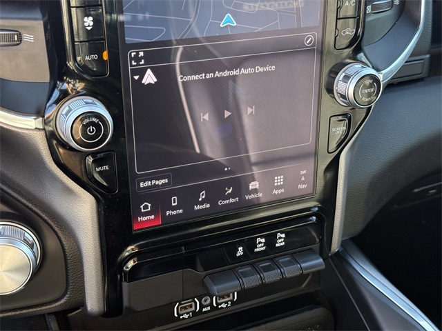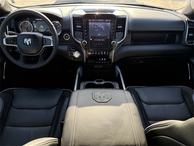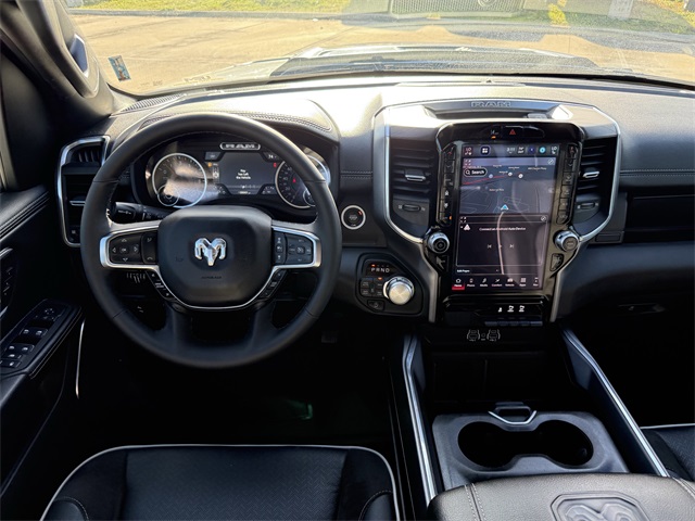 rrors, Auto-Dimming Exterior Driver Mirror, Auto-dimming Rear-View mirror, Automatic temperature control, Black Interior Accents, Black Painted Exterior Mirrors Caps, Body Color Front Bumper, Body Color Rear Bumper w/Step Pads, Brake assist, Bridgestone Brand Tires, Bucket Seats, Bumpers: chrome, Center Console Parts Module, Chrome Exterior Mirrors, Connected Travel & Traffic Services, Connectivity - US/Canada, Convex Wide-Angle Exterior Mirror Insert, Delay-off headlights, Driver Seat Memory, Driver vanity mirror, Dual front impact airbags, Dual front side impact airbags, Electronic Stability Control, Exterior Mirrors Courtesy Lamps, Exterior Mirrors w/Heating Element, Exterior Mirrors w/Memory, Exterior Mirrors w/Supplemental Signals, Front anti-roll bar, Front dual zone A/C, Front fog lights, Front License Plate Bracket, Front reading lights, Front Seat Back Map Pockets, Front wheel independent suspension, Full Length Upgraded Floor Console, Fully automatic headlights, Garage door transmitter, Google Android Auto, GPS Antenna Input, GPS Navigation, Grille Surround 3 Body Color Tex 2 Black, HD Radio, Heated door mirrors, Heated Front Seats, Heated front seats, Heated rear seats, Heated Second Row Seats, Heated Steering Wheel, Heated steering wheel, Illuminated entry, Integrated Voice Command w/Bluetooth, Laramie Level 1 Equipment Group, Leather steering wheel, Leather Trim 40/20/40 Bench Seat, Leather Trimmed Bucket Seats, Low tire pressure warning, Memory seat, Navigation System, Occupant sensing airbag, Outside temperature display, Overhead airbag, Overhead console, Panic alarm, ParkView Rear Back-Up Camera, Power 2-Way Driver Lumbar Adjust, Power 2-Way Passenger Lumbar Adjust, Power Adjust 8-Way Driver Seat, Power Adjust 8-Way Front Passenger Seat, Power door mirrors, Power driver seat, Power steering, Power windows, Quick Order Package 21H Laramie, Radio data system, Radio: Uconnect 5 Nav w/12.0" Display, Rain Sensitive Windshield Wipers, RAM Grille Badge - Chrome, Rear 60/40 Folding Split Recline Seat, Rear anti-roll bar, Rear reading lights, Rear seat center armrest, Rear step bumper, Remote keyless entry, Remote Tailgate Release, Security system, SiriusXM w/360L, Speed control, Split folding rear seat, Sport Appearance Package, Sport Performance Hood, Steering wheel mounted audio controls, Tachometer, Telescoping steering wheel, Tilt steering wheel, Traction control, Turn signal indicator mirrors, USB Host Flip, Ventilated Front Seats. CARFAX One-Owner. Priced below KBB Fair Purchase Price!