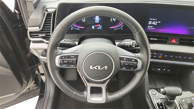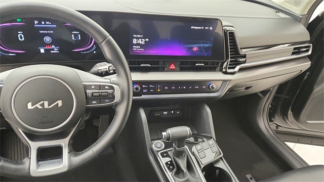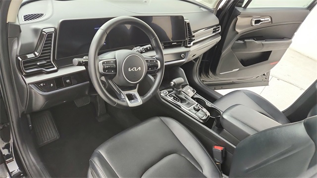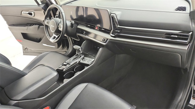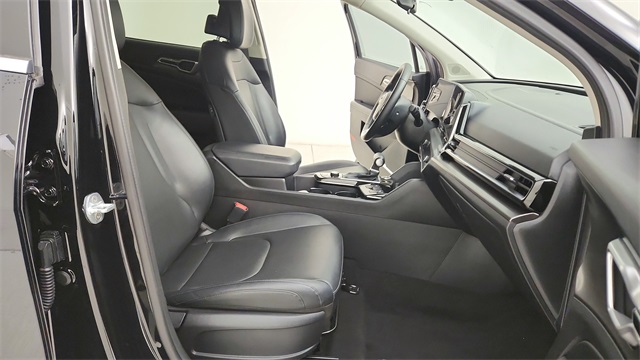 This 2023 Kia Sportage EX in Ebony Black comes with the following features: I4 8-Speed Automatic FWD 4-Wheel Disc Brakes, 6 Speakers, ABS brakes, Air Conditioning, Alloy wheels, AM/FM radio: SiriusXM, Apple CarPlay & Android Auto, Auto High-beam Headlights, Automatic temperature control, Axle Ratio: 3.648, Brake assist, Bumpers: body-color, Cargo Cover, Carpeted Floor Mats, Compass, Delay-off headlights, Driver door bin, Driver vanity mirror, Dual front impact airbags, Dual front side impact airbags, Electronic Stability Control, Emergency communication system, Four wheel independent suspension, Front anti-roll bar, Front Bucket Seats, Front Center Armrest, Front dual zone A/C, Fully automatic headlights, Heated door mirrors, Heated Front Bucket Seats, Heated front seats, Illuminated entry, Leather Shift Knob, Leather steering wheel, Leatherette Seat Trim, Low tire pressure warning, Navigation System, Occupant sensing airbag, Outside temperature display, Overhead airbag, Overhead console, Panic alarm, Passenger door bin, Passenger vanity mirror, Power door mirrors, Power driver seat, Power steering, Power windows, Radio: AM/FM/HD Audio System, Rain sensing wipers, Rear anti-roll bar, Rear seat center armrest, Rear window defroster, Rear window wiper, Remote keyless entry, Security system, Speed control, Speed-sensing steering, Split folding rear seat, Spoiler, Steering wheel mounted audio controls, Tachometer, Telescoping steering wheel, Tilt steering wheel, Traction control, Trip computer, Turn signal indicator mirrors, Variably intermittent wipers, and Wheels: 18" Machine Finish Alloy.