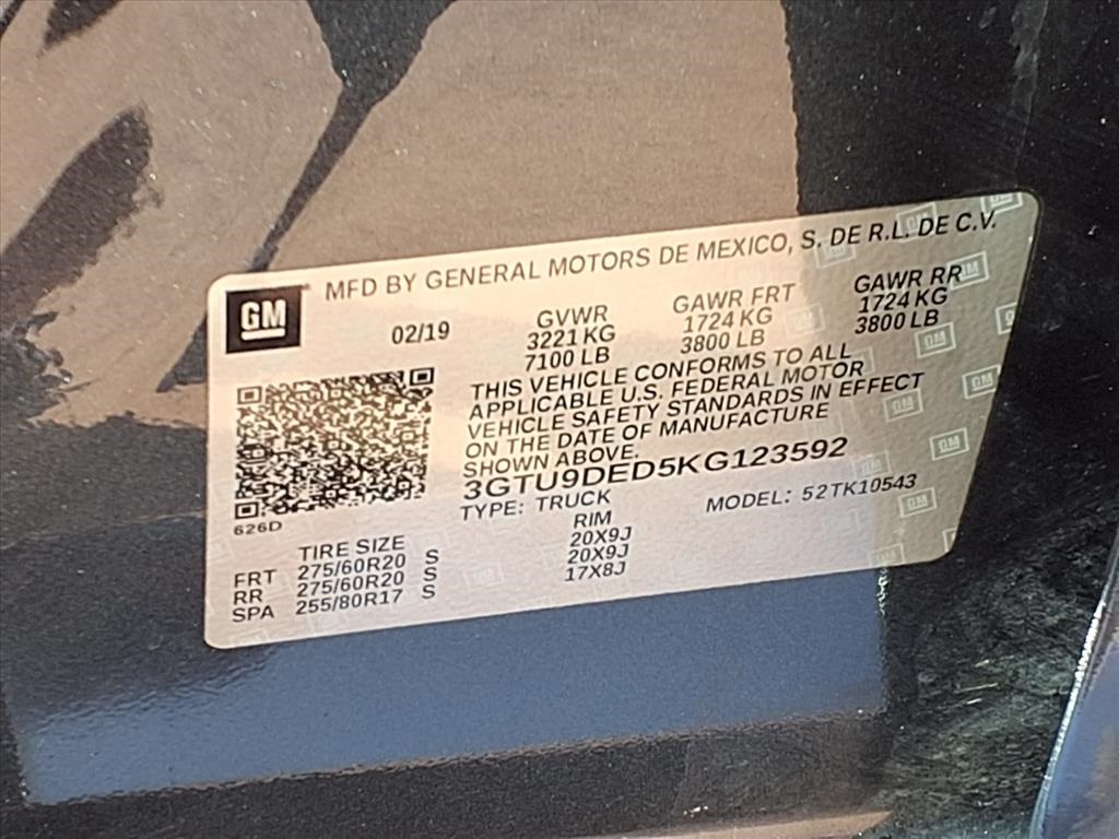 8-Speed Automatic, 4WD, Jet Black Leather. Dark Sky Metallic 2019 GMC Sierra 1500 SLT 4X4 PREMIUM PLUS PKG 4WD 8-Speed Automatic EcoTec3 5.3L V8