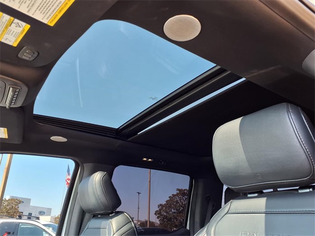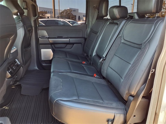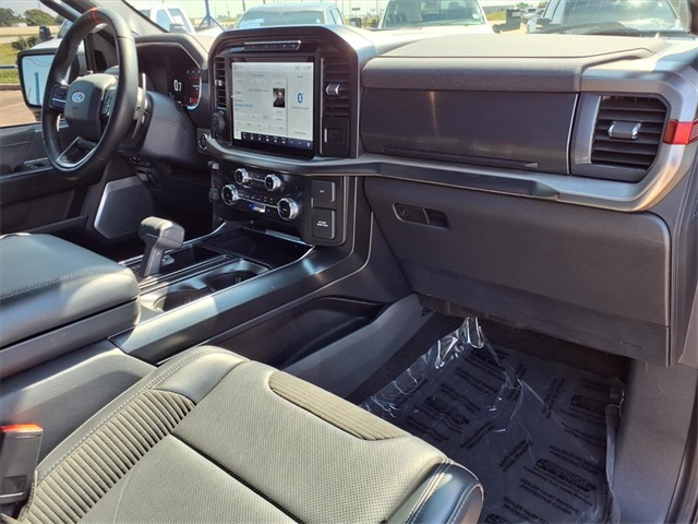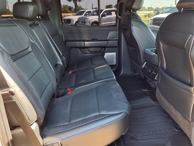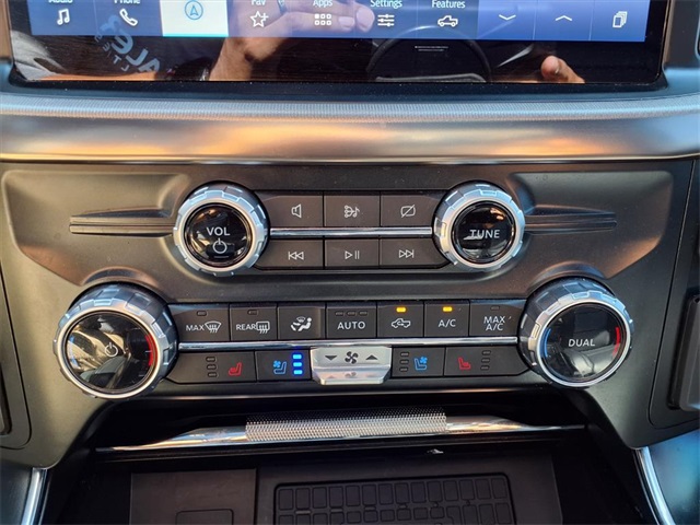 uto High-beam Headlights, Auto Start-Stop Removal (DISC), Auto tilt-away steering wheel, Auto-dimming door mirrors, Auto-dimming Rear-View mirror, Automatic temperature control, Brake assist, Bumpers: body-color, Compass, Delay-off headlights, Driver door bin, Driver vanity mirror, Dual front impact airbags, Dual front side impact airbags, Electronic Locking w/4.10 Axle Ratio, Electronic Stability Control, Emergency communication system, Exterior Parking Camera Rear, Front anti-roll bar, Front Bucket Seats, Front Center Armrest, Front dual zone A/C, Front fog lights, Front reading lights, Front wheel independent suspension, Fully automatic headlights, Garage door transmitter, Heated door mirrors, Heated front seats, Heated rear seats, Heated steering wheel, Illuminated entry, Inclination/Intrusion Sensor Removal, Lane Departure Warning System, Leather Trim Seats w/Heated 2nd Row, Low tire pressure warning, Memory seat, Navigation system: Connected Navigation, Occupant sensing airbag, Outside temperature display, Overhead airbag, Overhead console, Panic alarm, Passenger door bin, Passenger vanity mirror, Pedal memory, Power door mirrors, Power driver seat, Power passenger seat, Power steering, Power windows, Radio data system, Radio: B&O Unleashed Sound System by Bang & Olufsen, Rain sensing wipers, Rear reading lights, Rear step bumper, Rear window defroster, Remote keyless entry, Security system, Speed control, Speed-sensing steering, Split folding rear seat, Steering Wheel Heat Removal (DISC), Steering wheel memory, Steering wheel mounted audio controls, SYNC 4 w/Enhanced Voice Recognition, Tachometer, Telescoping steering wheel, Tilt steering wheel, Traction control, Trip computer, Turn signal indicator mirrors, Variably intermittent wipers, and Ventilated front seats.