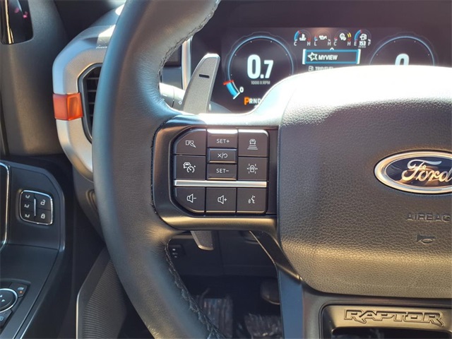Clean CARFAX. Certified. Avalanche Gray 2023 Ford F-150 Raptor 4WD 10-Speed Automatic 3.5L V6 EcoBoost 4WD. Equipment Group 801A Standard, GVWR: 7,300 lbs Payload Package, Moonroof & Tailgate (Power Tailgate and Twin Panel Moonroof), Raptor Exterior Graphics Package, Legacy Ford of Rosenberg Certification Certified, 4WD, 17" Cast Aluminum Wheels, 18 Speakers, 4-Wheel Disc Brakes, ABS brakes, Adaptive suspension, Adjustable pedals, Air Conditioning, Alloy wheels, AM/FM radio: SiriusXM with 360L,