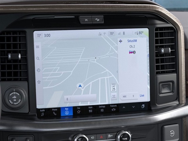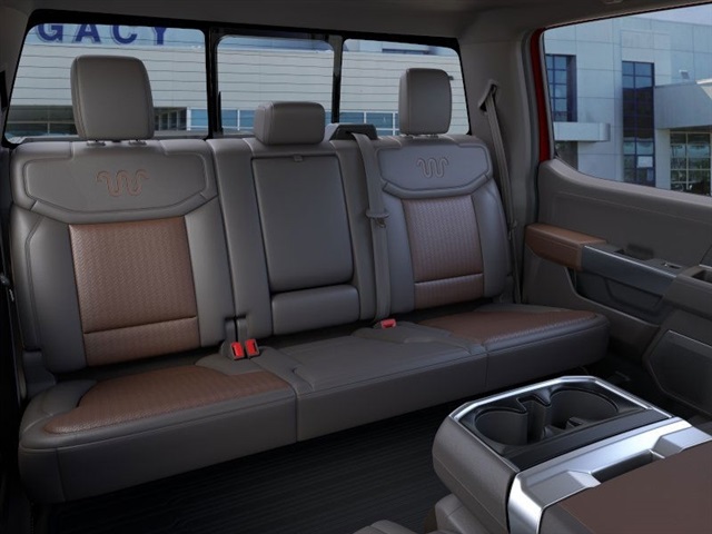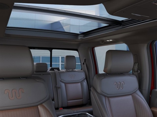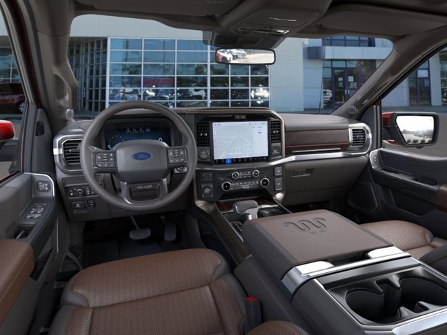 M with 360L, Auto High-beam Headlights, Auto tilt-away steering wheel, Auto-dimming door mirrors, Auto-dimming Rear-View mirror, Automatic temperature control, Brake assist, Chrome wheels, Compass, Delay-off headlights, Driver door bin, Driver vanity mirror, Dual front impact airbags, Dual front side impact airbags, Electronic Stability Control, Emergency communication system: SYNC 4 911 Assist, Front anti-roll bar, Front Bucket Seats, Front Center Armrest, Front dual zone A/C, Front fog lights, Front License Plate Bracket, Front reading lights, Front wheel independent suspension, Fully automatic headlights, Garage door transmitter, Genuine wood dashboard insert, Heads-Up Display, Heated door mirrors, Heated front seats, Heated rear seats, Heated steering wheel, Illuminated entry, Internet access capable: FordPass Connect 5G, King Ranch Multicontour Leather Bucket Seats, Leather steering wheel, Low tire pressure warning, Memory seat, Navigation system: Connected Navigation, Occupant sensing airbag, Outside temperature display, Overhead airbag, Overhead console, Panic alarm, Passenger door bin, Passenger vanity mirror, Pedal memory, Power door mirrors, Power driver seat, Power moonroof, Power passenger seat, Power steering, Power windows, Radio data system, Radio: B&O Unleashed Sound System by Bang & Olufsen, Rain sensing wipers, Rear reading lights, Rear seat center armrest, Rear step bumper, Rear window defroster, Remote keyless entry, Security system, Speed control, Split folding rear seat, Steering wheel memory, Steering wheel mounted audio controls, SYNC 4 w/Enhanced Voice Recognition, Tachometer, Telescoping steering wheel, Tilt steering wheel, Traction control, Trip computer, Turn signal indicator mirrors, Variably intermittent wipers, Ventilated front seats, Voltmeter, and Wheels: 20" Chrome-Like PVD. Recent Arrival!