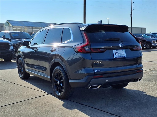 CARFAX One-Owner. Clean CARFAX. Certified. Meteorite Gray Metallic 2025 Honda CR-V Hybrid Sport-L AWD eCVT 2.0L I4 DOHC 16V 2.0L I4 DOHC 16V. Legacy Ford of Rosenberg Certification Certified, 2.0L I4 DOHC 16V, 4-Wheel Disc Brakes, 8 Speakers, ABS brakes, Adaptive Cruise Control: Adaptive Cruise Control (ACC) with Low-Speed Follow, Air Conditioning, Alloy wheels, AM/FM radio: SiriusXM, Auto High-beam Headlights, Auto-dimming Rear-View mirror, Automatic temperature control, Blind Spot Information
